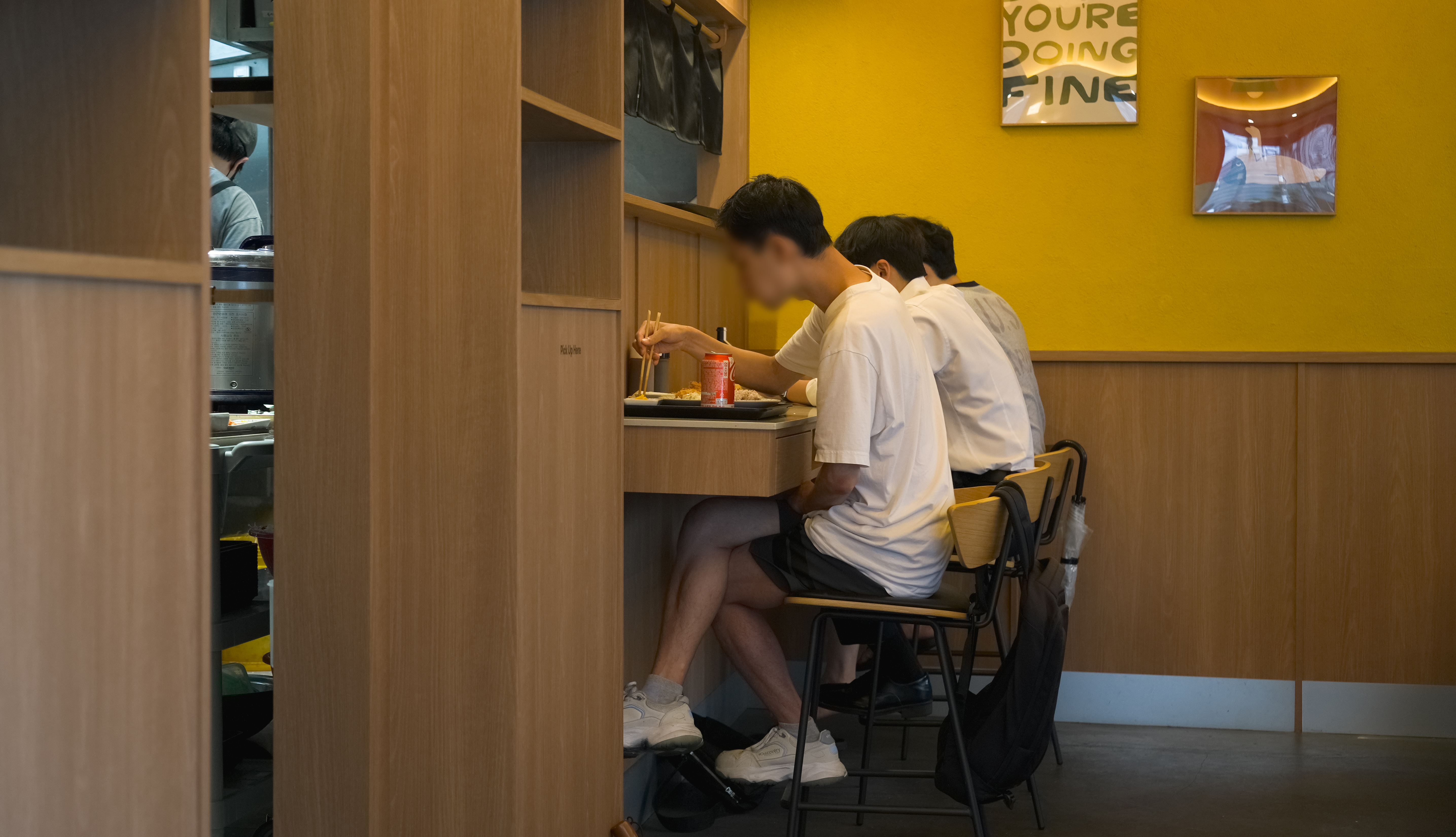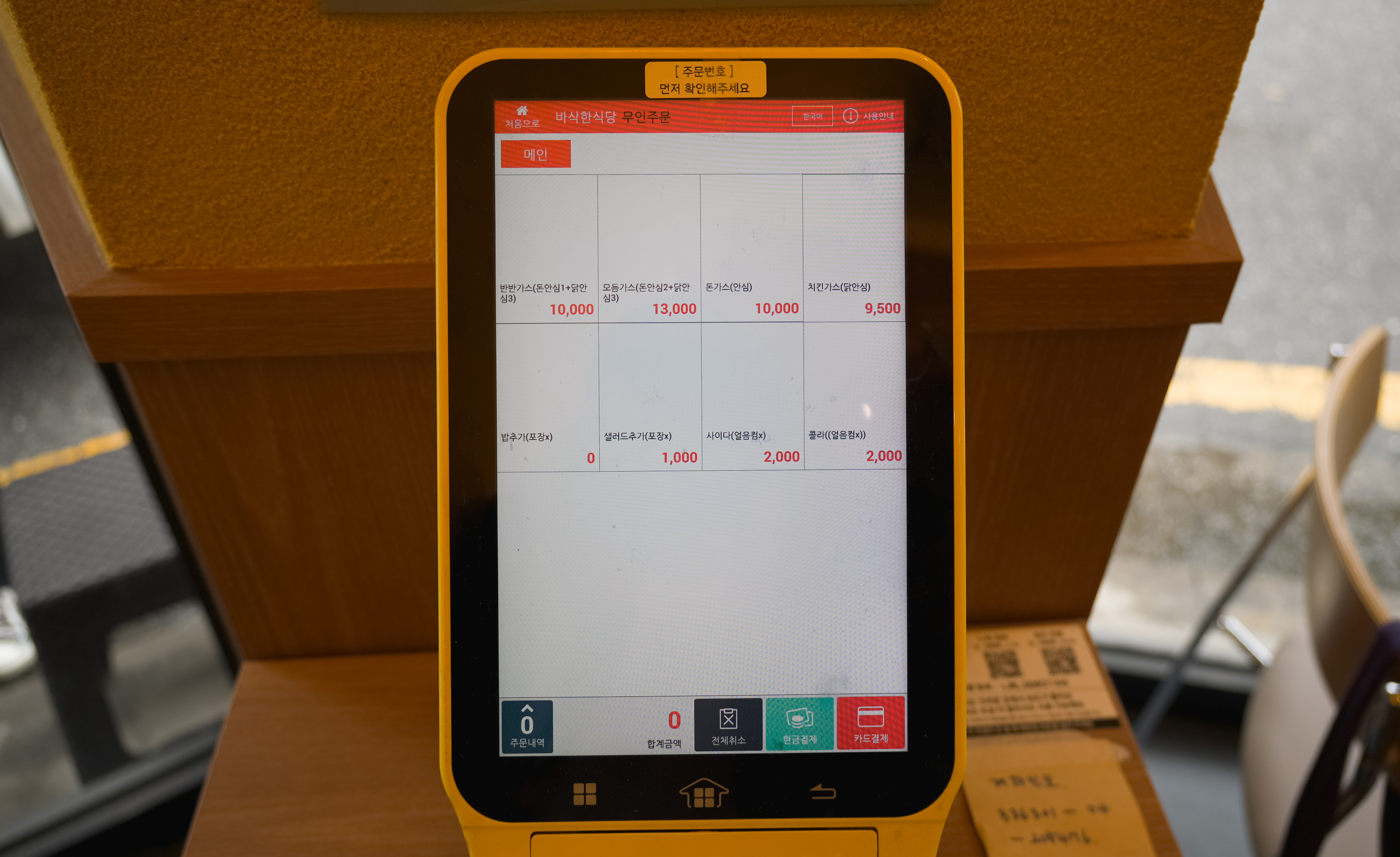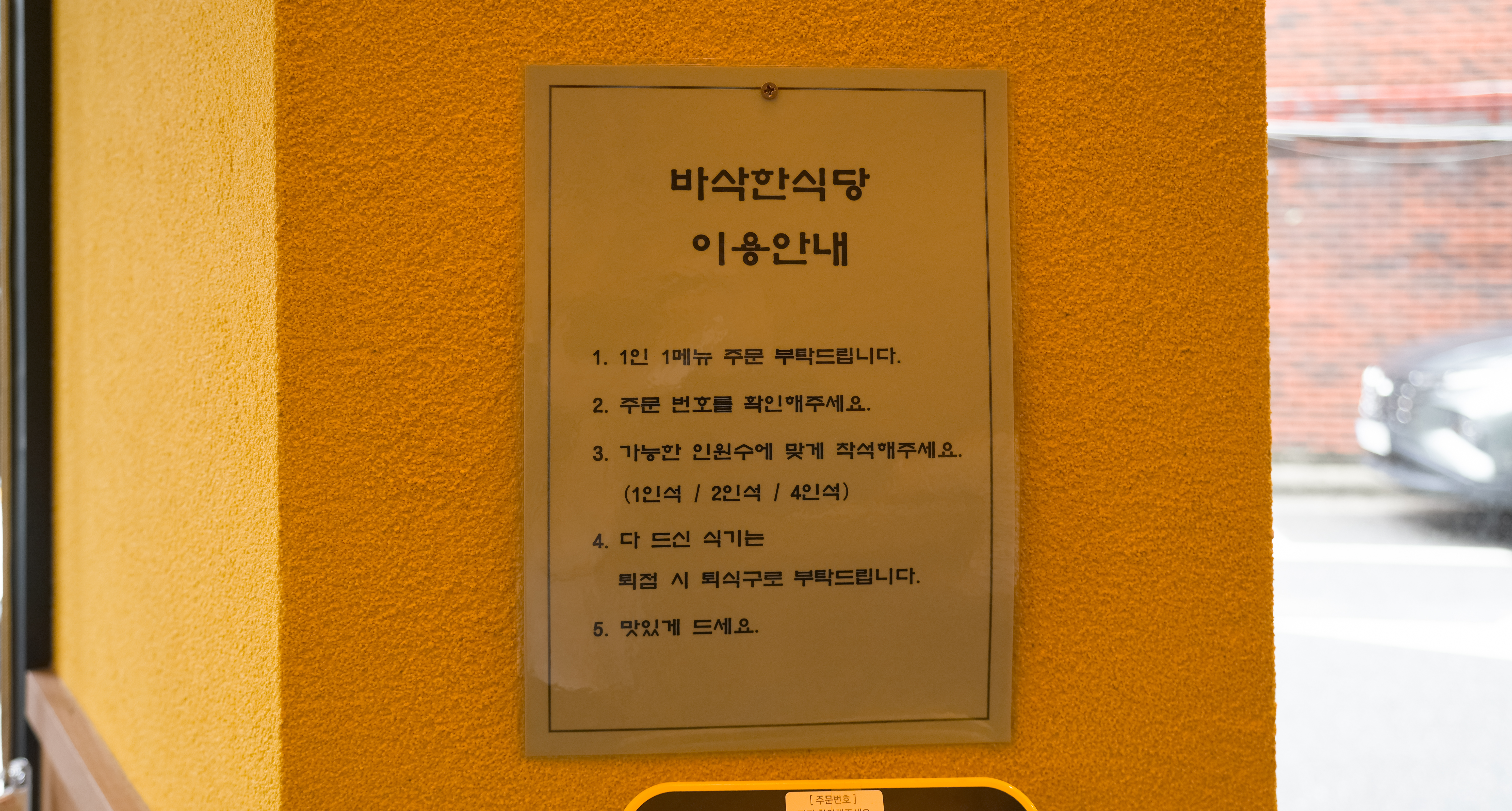 가게의 이용 방법은 1인 1 메뉴 주문을 요청하고 있었고, 대기번호가 따로 있지 않았고 가게의 키오스크로 메뉴를 주문하면 주문번호의 순서대로 메뉴가 나오면 식사할 수 있었습니다.