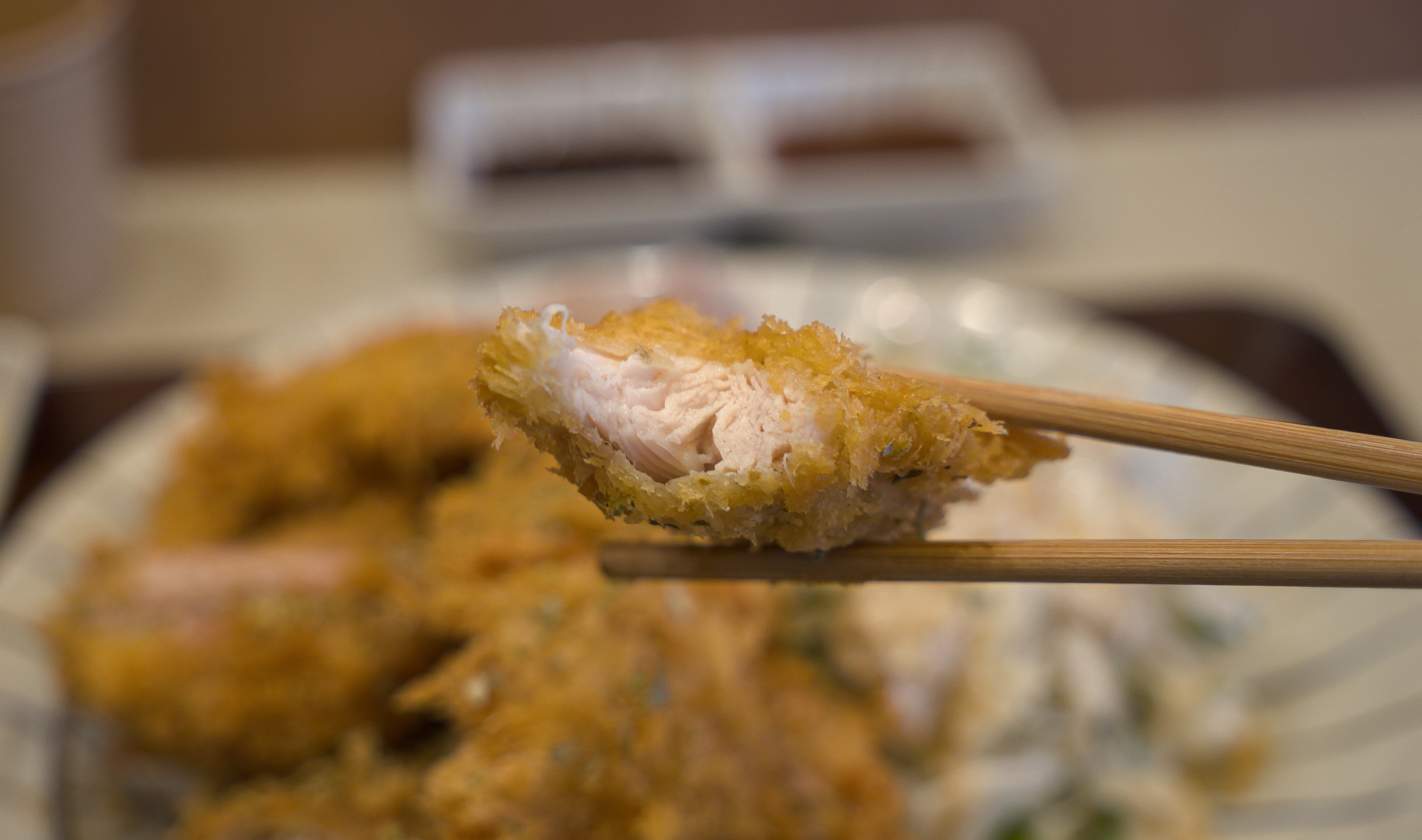 돈까스는 위와 같이 두툼하게 튀겨서 속이 약간 분홍빛을 띠는데요. 요즘은 속까지 바싹 익힌 경양식 돈까스 보다는, 오히려 이렇게 일본식 돈카츠가 더 유행하는 느낌입니다.
