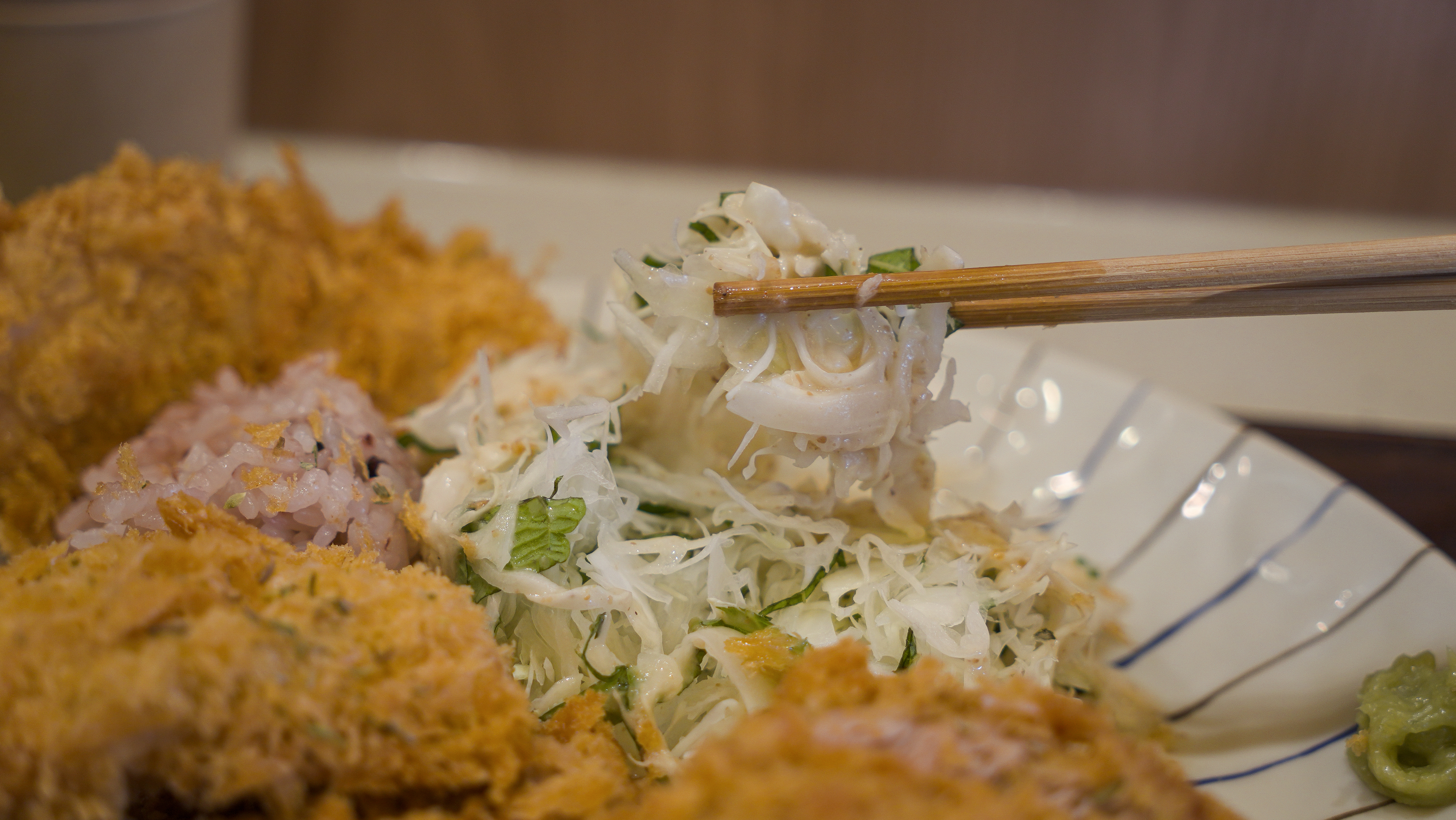 돈까스는 위와 같이 두툼하게 튀겨서 속이 약간 분홍빛을 띠는데요. 요즘은 속까지 바싹 익힌 경양식 돈까스 보다는, 오히려 이렇게 일본식 돈카츠가 더 유행하는 느낌입니다.
