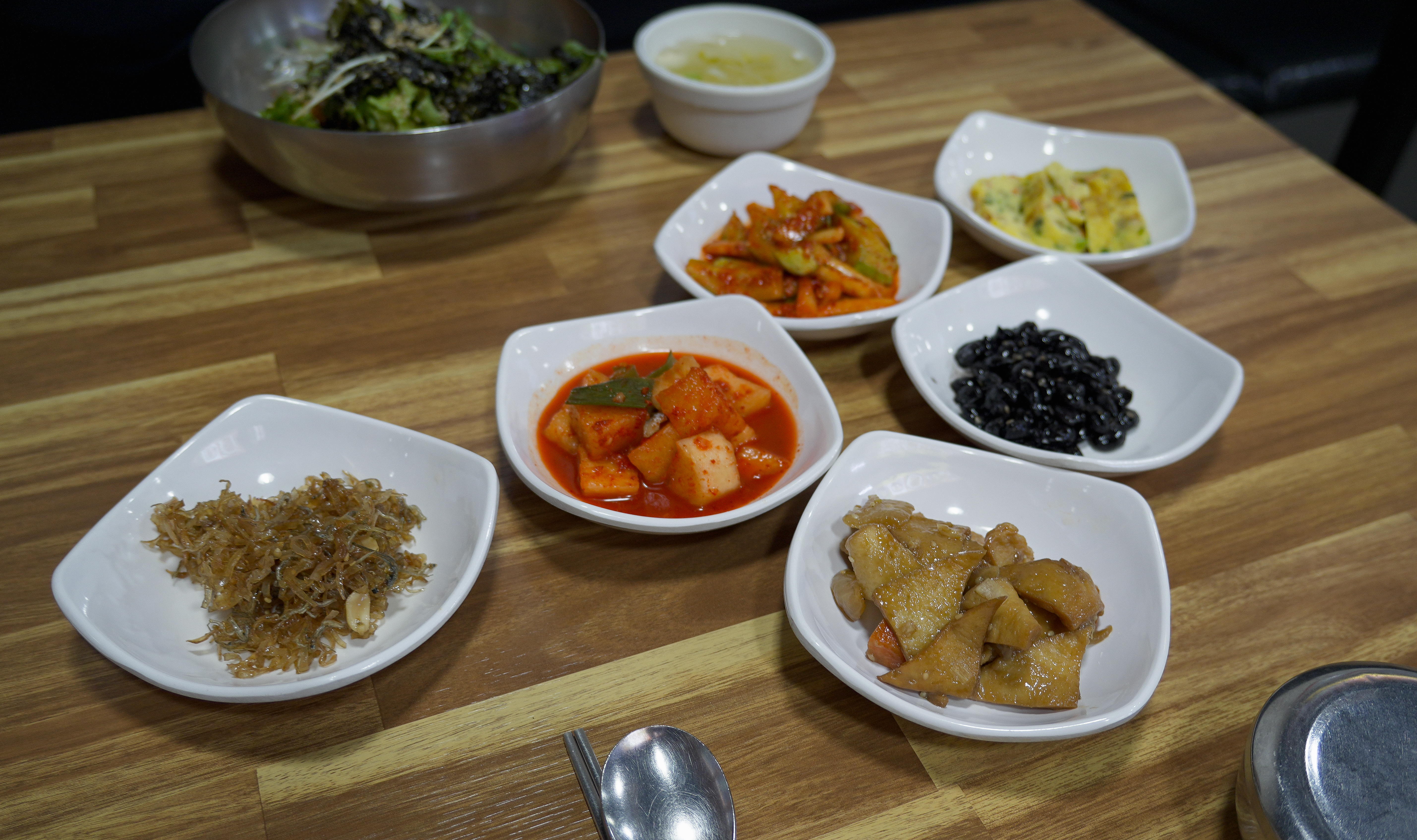 거여동 맛고을식당에서 메뉴를 주문하니까 백반집답게 다양한 반찬들이 나오더라고요. 반찬은 달걀말이, 콩자반, 진미채볶음, 어묵볶음, 오이소박이, 깍두기가 나왔습니다. 그리고 주문한 오징어덮밥과 부대찌개도 함께 나왔습니다.