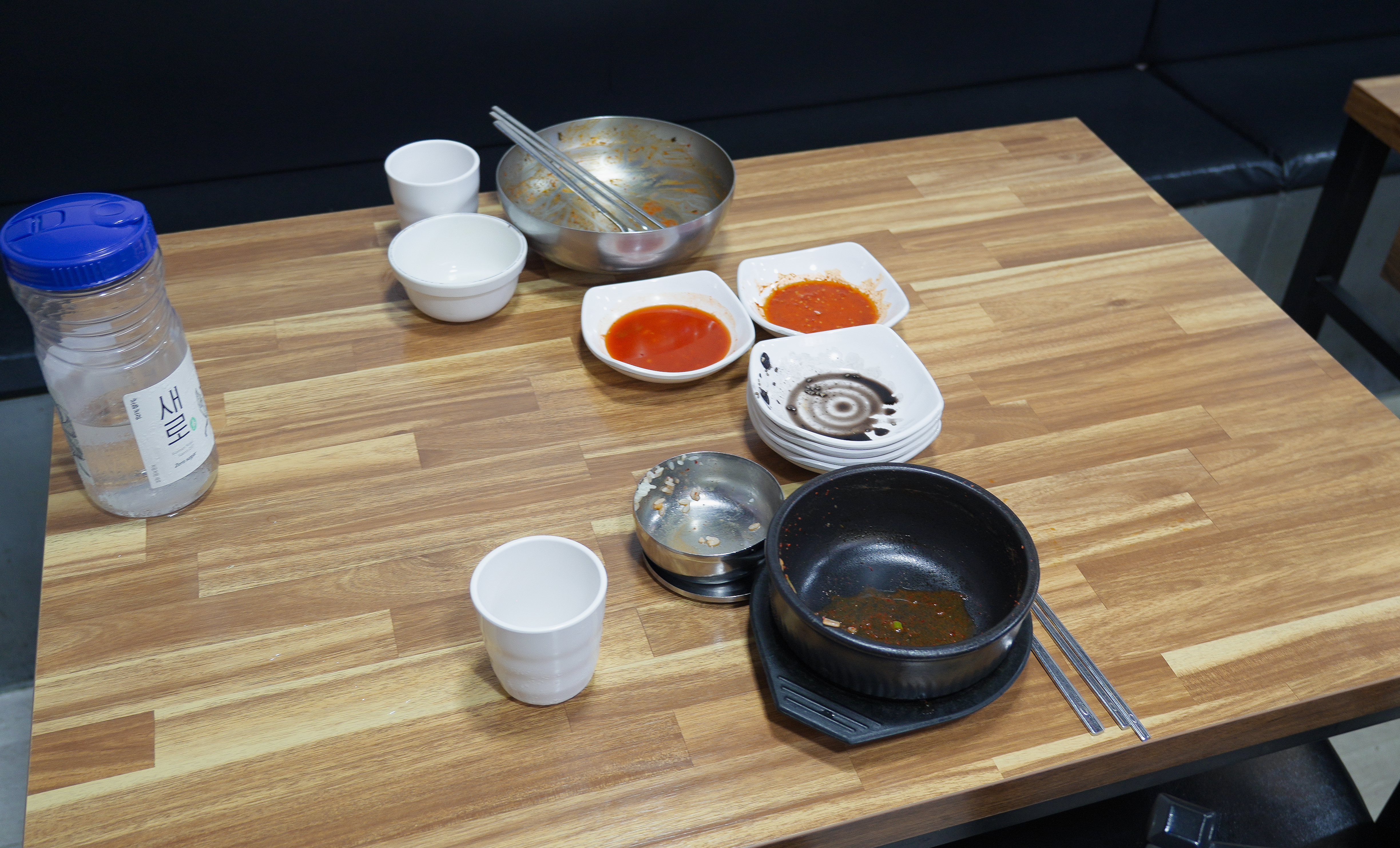 ✓ 저희는 오징어덮밥, 부대찌개를 주문했습니다.