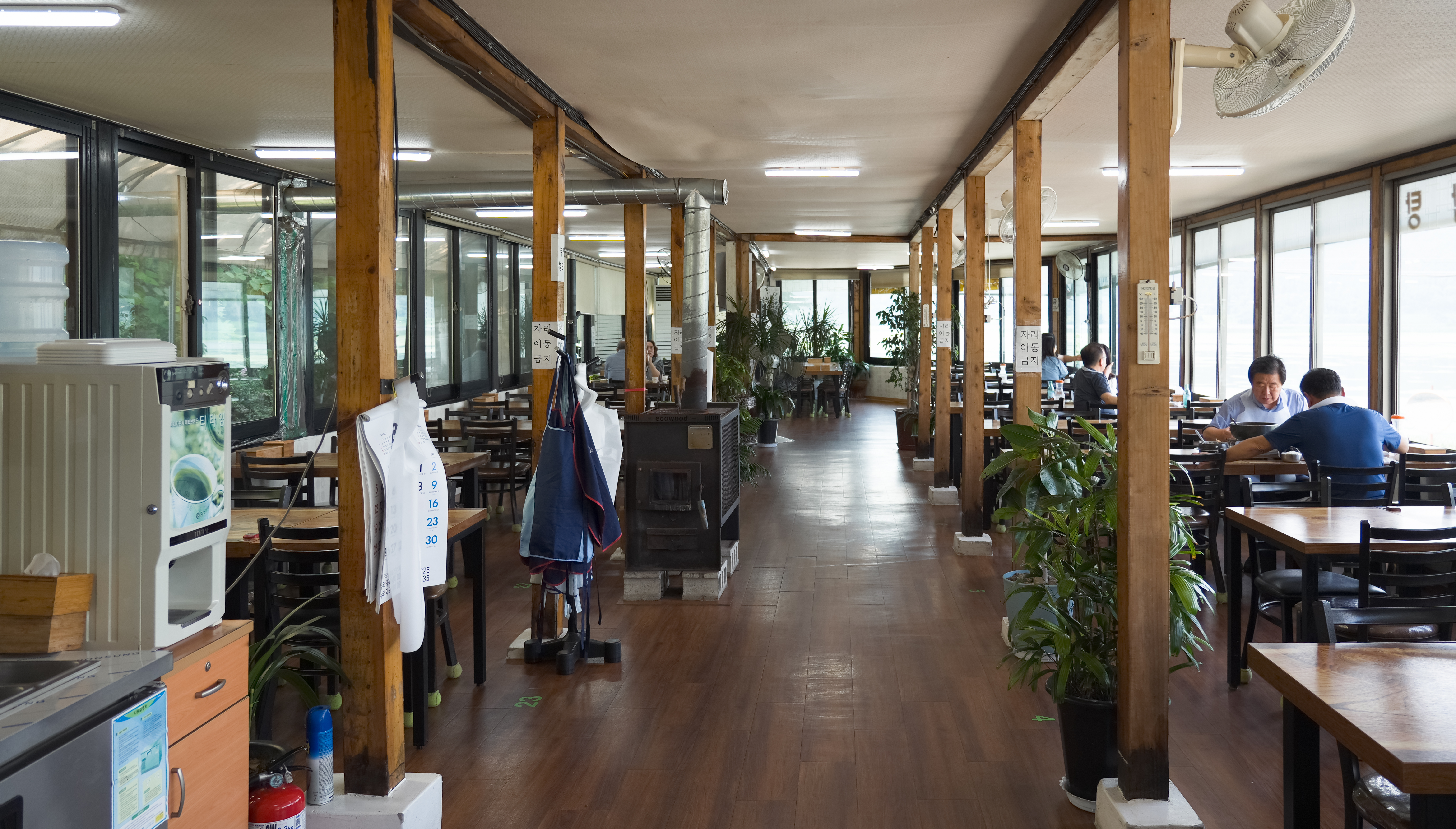 가게 내부로 들어가면 분위기는 이렇습니다. 가게가 양쪽으로 긴 형태여서 팔당뷰를 바라보는 곳은 주로 이렇게 생겼고, 반대편 식사공간은 조용히 방에서 식사하는 형태였습니다.