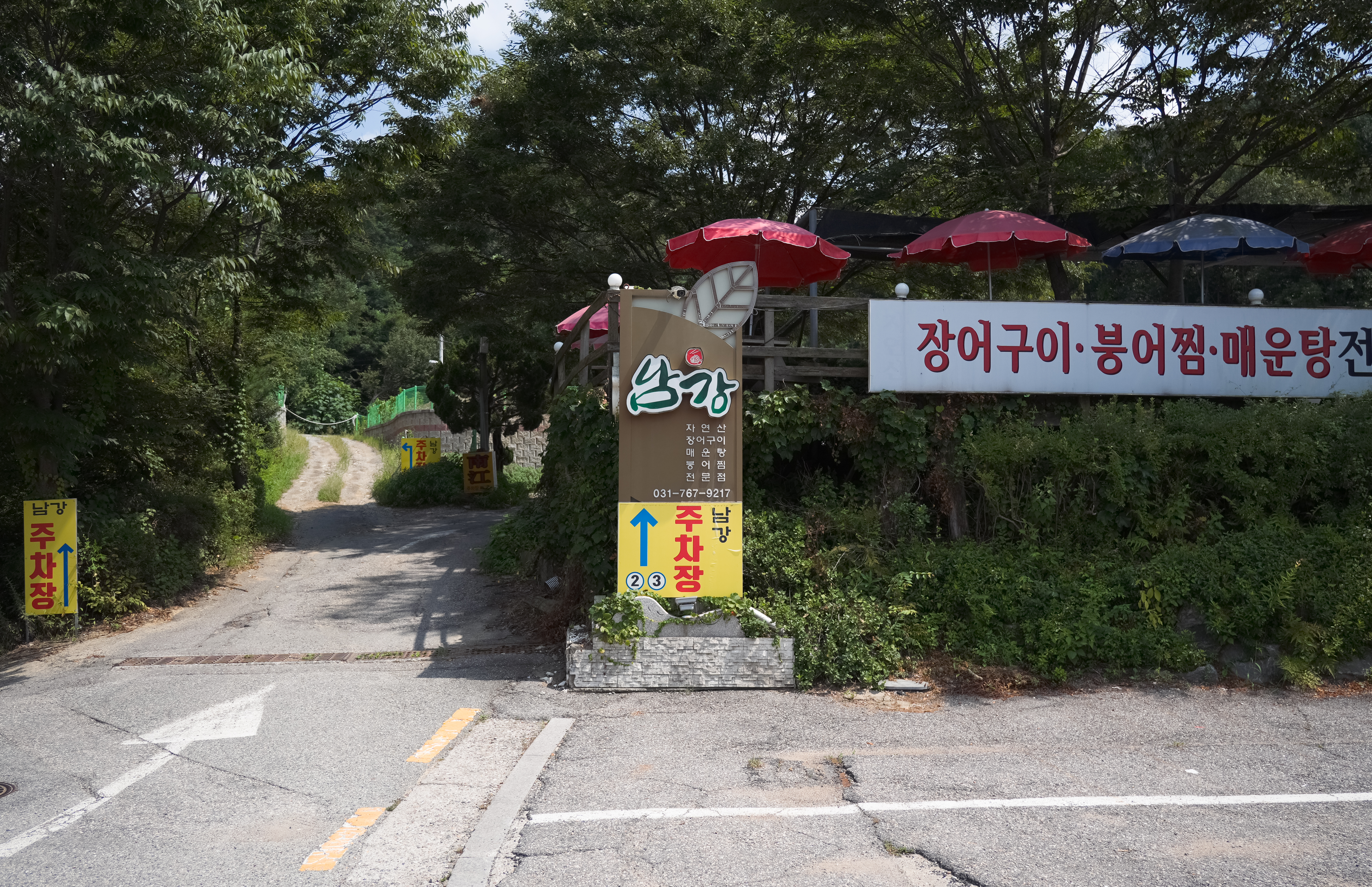 남강집은 경기 광주시 남종면 분원리 255-7 에 위치해 있었으며, 주차는 가게 앞이나 뒤편에 하면 되었습니다. 이곳의 특징은 팔당호를 바라보는 뷰를 가지고 있다는 점인데요.