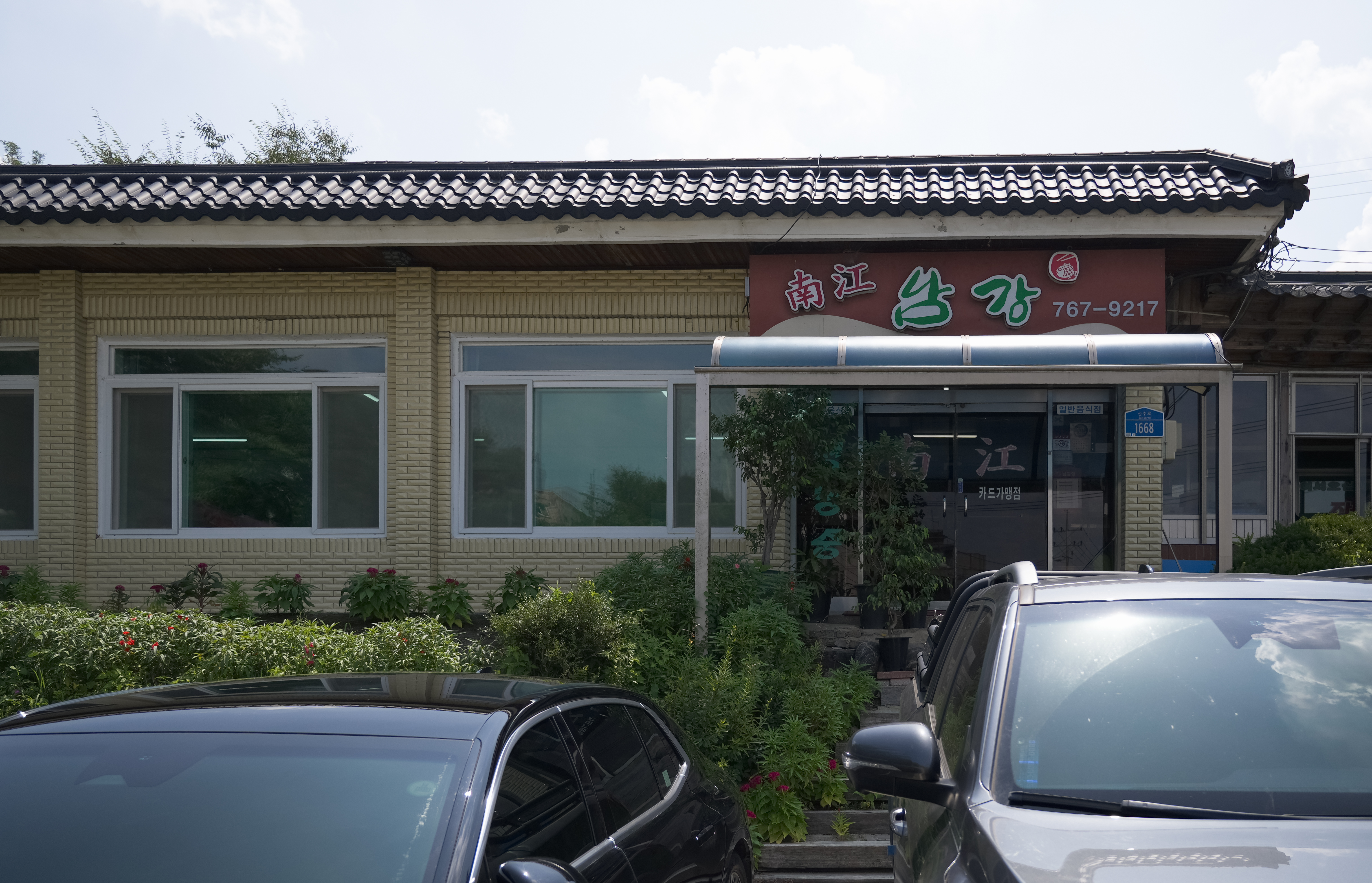 남강집은 경기 광주시 남종면 분원리 255-7 에 위치해 있었으며, 주차는 가게 앞이나 뒤편에 하면 되었습니다. 이곳의 특징은 팔당호를 바라보는 뷰를 가지고 있다는 점인데요.