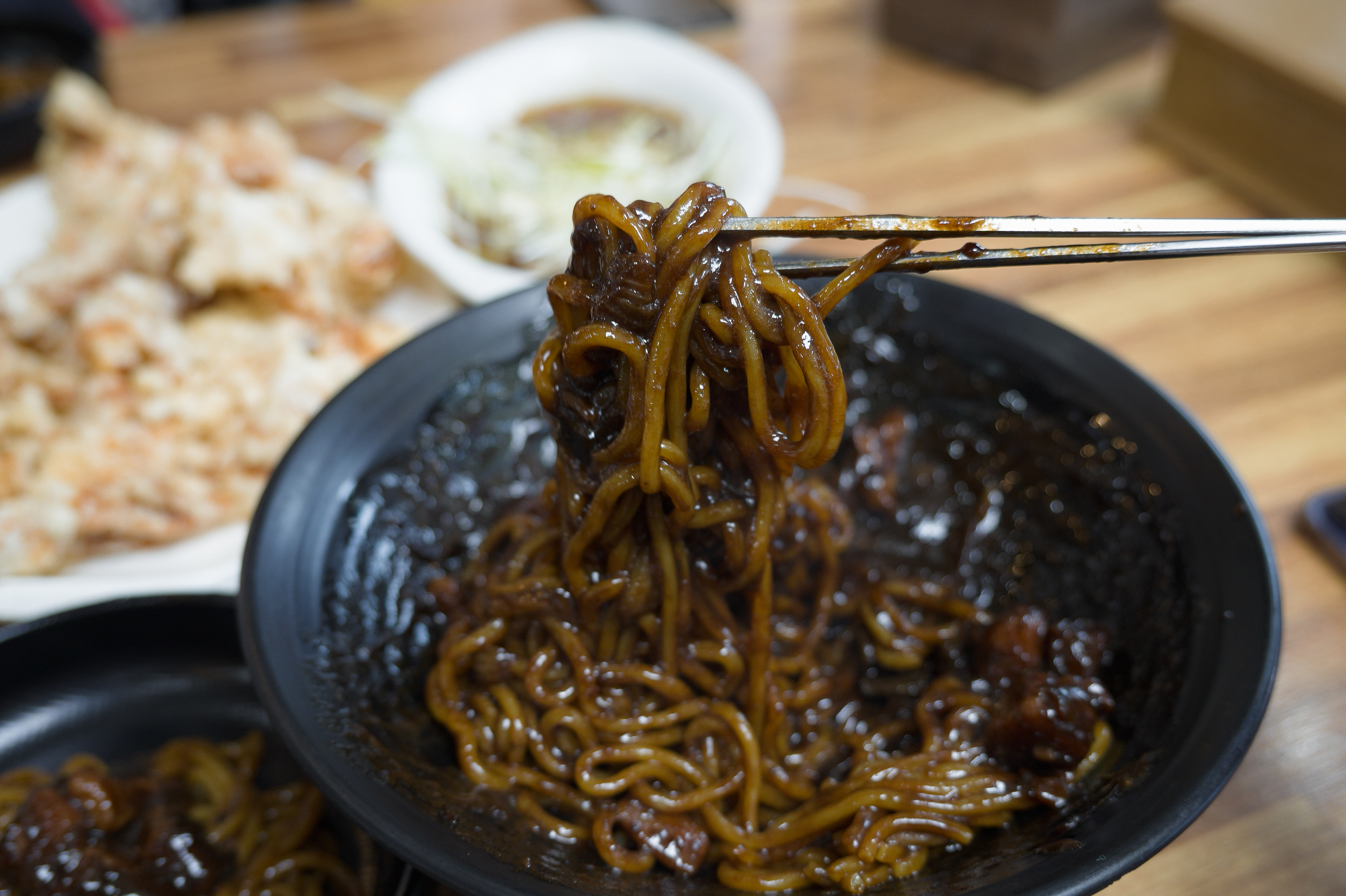고구마짜장은 사실 보여지는 것은 특별할 것이 없는데, 굉장히 걸쭉하고 진한 소스가 특징이었습니다. 특히 고기나 고구마 건더기도 많이 들어가 있었고, 고구마가 들어가서 그런지 더 달고 맛있었던 것 같습니다.