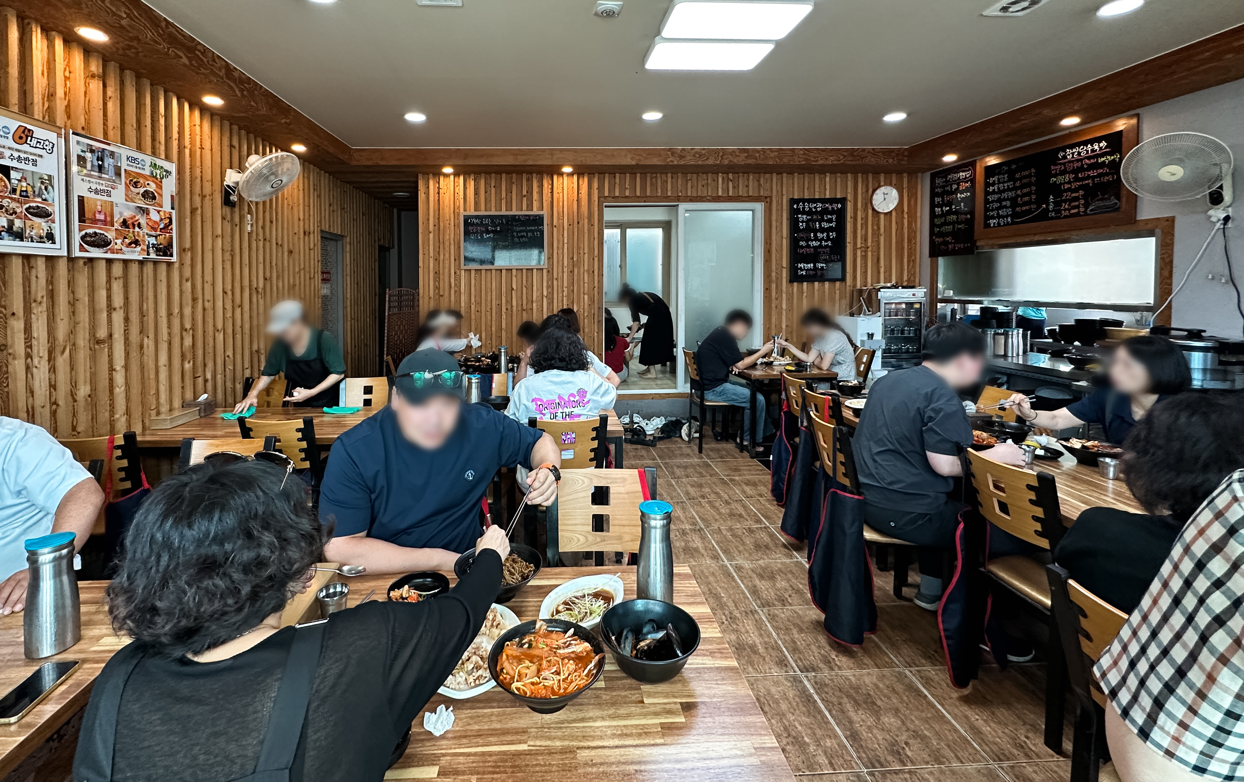군산 수송반점은 전북특별자치도 군산시 동메3길 23, 1층에 위치해 있었고, 가게에는 별도의 대기표(번호표)가 없이, 가게 앞에서 줄을 서면 순서에 따라서 가게 안에 입장할 수 있었습니다. 저희는 점심시간쯤 방문했는데, 가게 안에는 손님들이 이미 가득 차 있었고, 대기줄까지 있어서 약 5분간 대기 후 가게 안에 입장할 수 있었습니다.