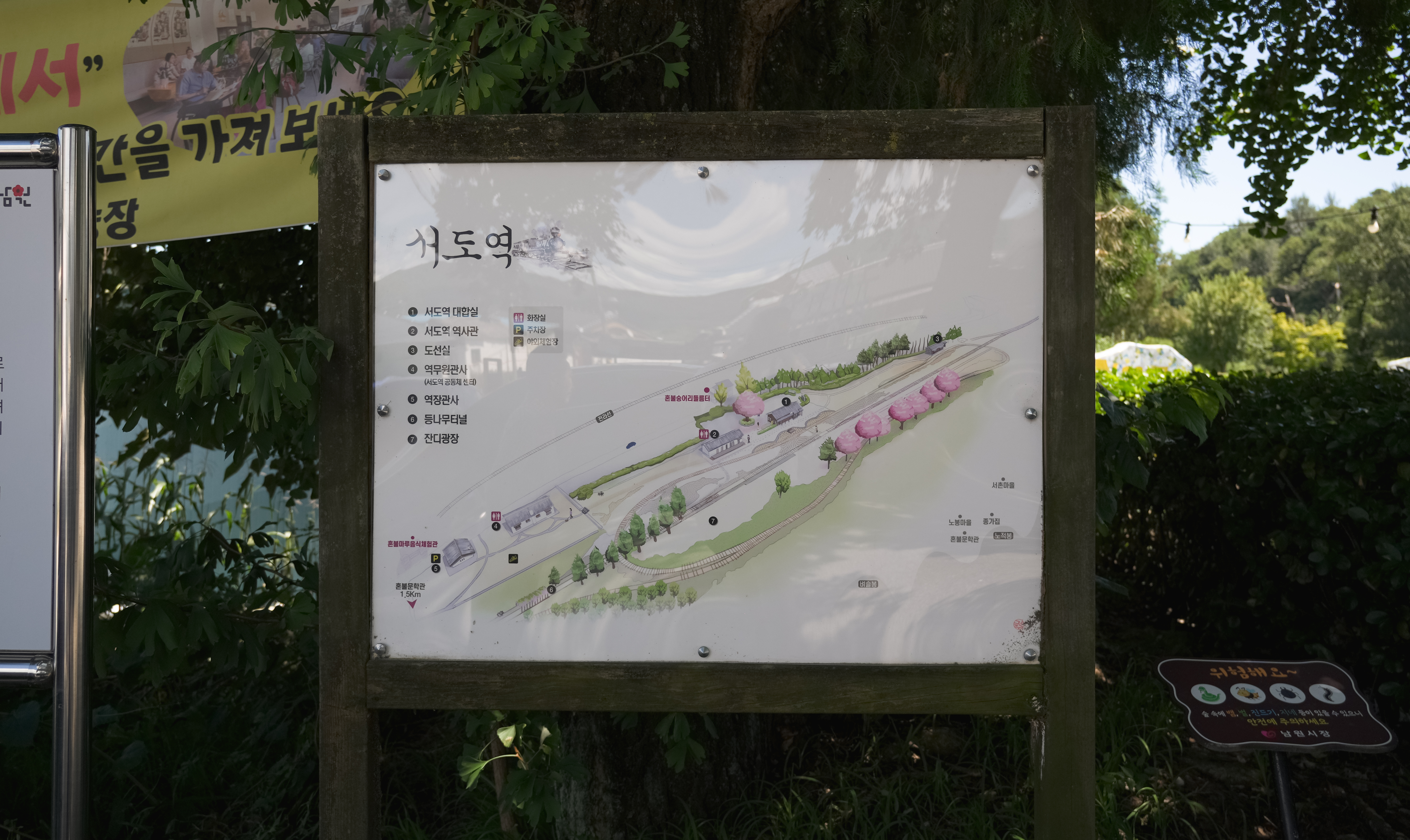 서도역은 전북특별자치도 남원시 사매면 서도리 2-4 에 위치해 있었습니다. 이곳에는 '구서도역 영상촬영장'이라는 간판도 붙어있었습니다. 그래서인지 남원 서도역은 사진 출사를 나오는 관광객들도 많이 방문하고 있었습니다.