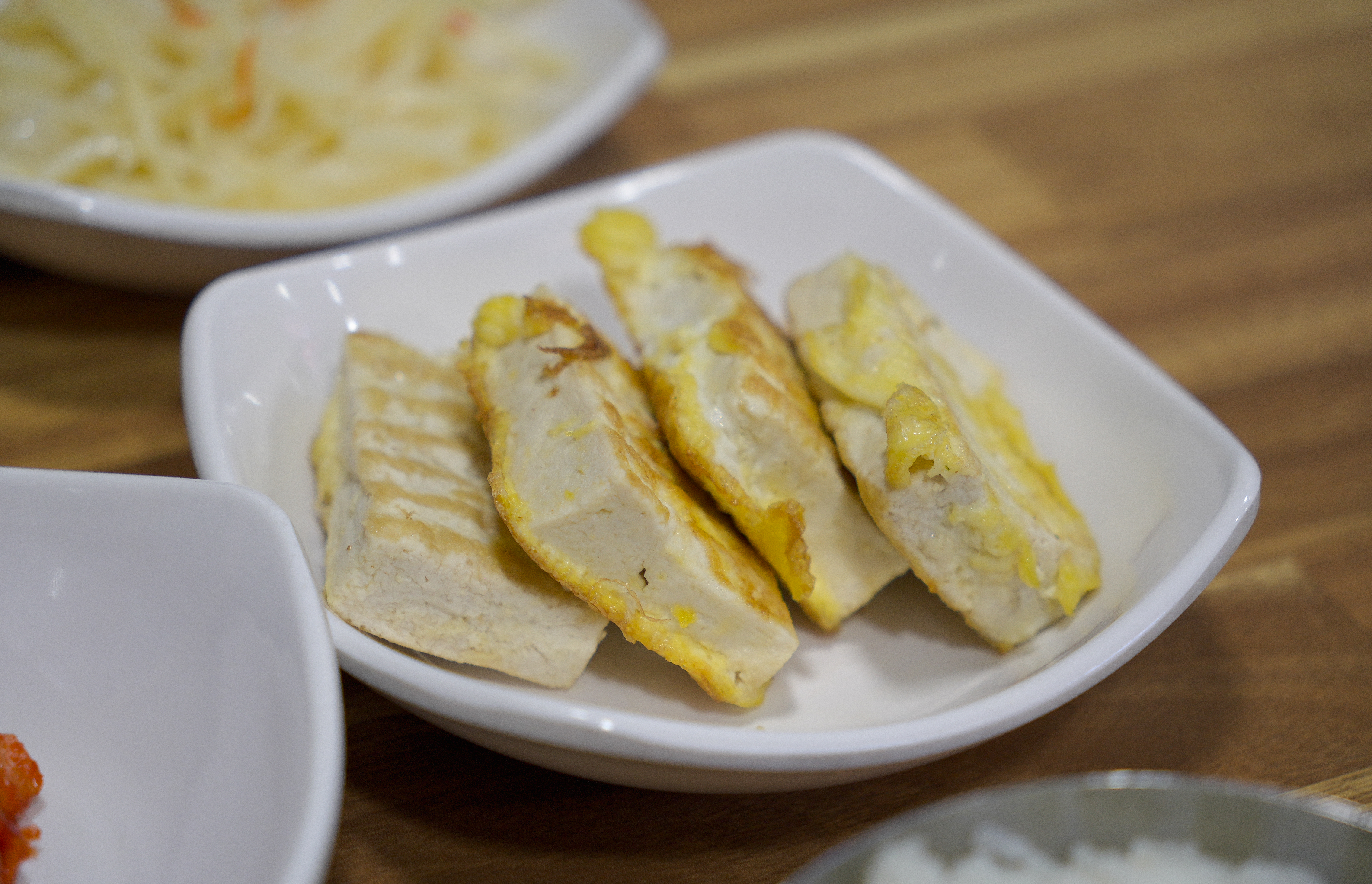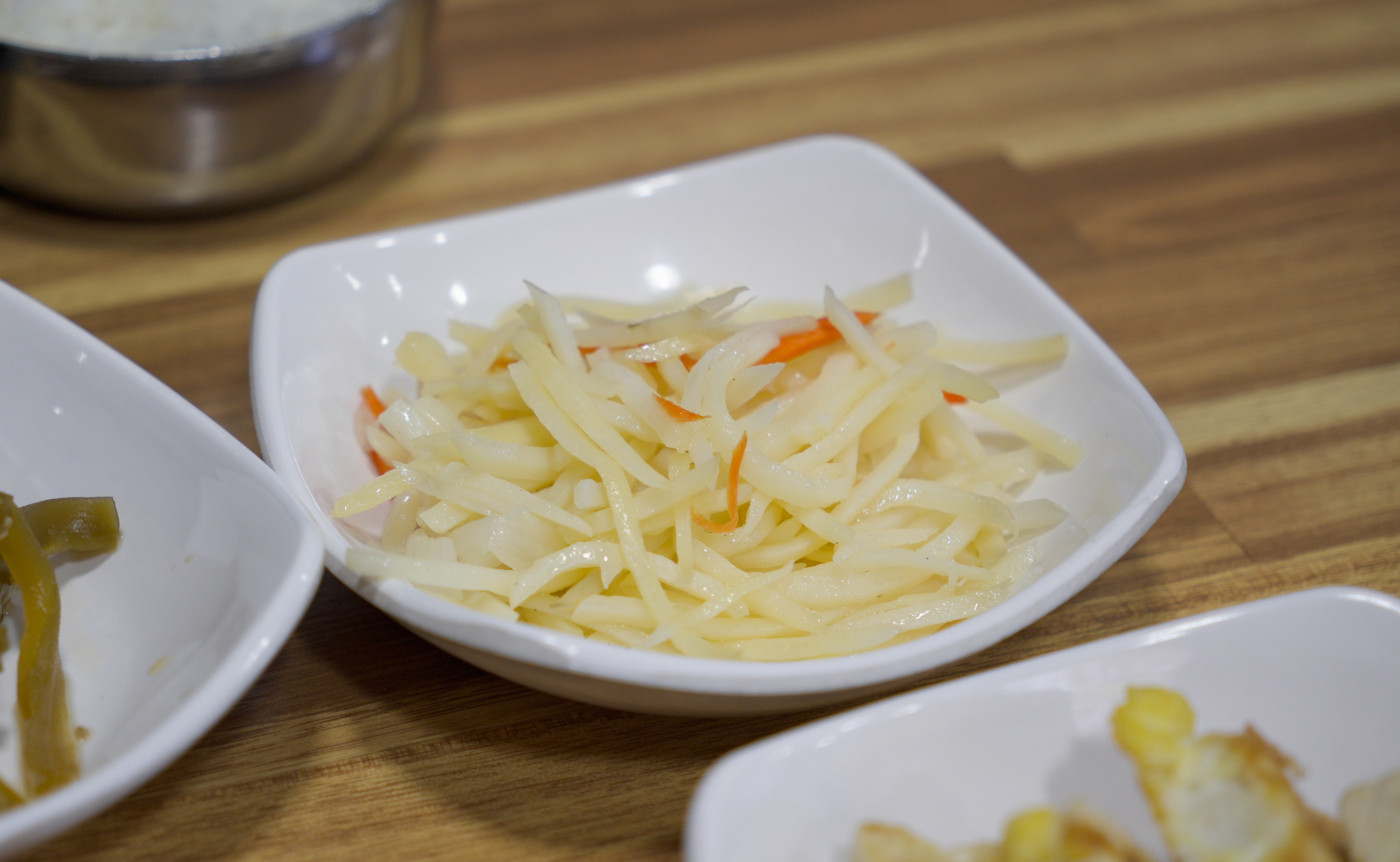 반찬들은 두부부침부터 오징어젓갈, 깍두기, 상추대, 감자채볶음, 조미김이 나왔습니다. 반찬들의 맛이 엄청 맛있다 까지는 아닌데, 직접 만든 반찬들이라 정성이 느껴져서 더 만족스러웠던 것 같습니다.