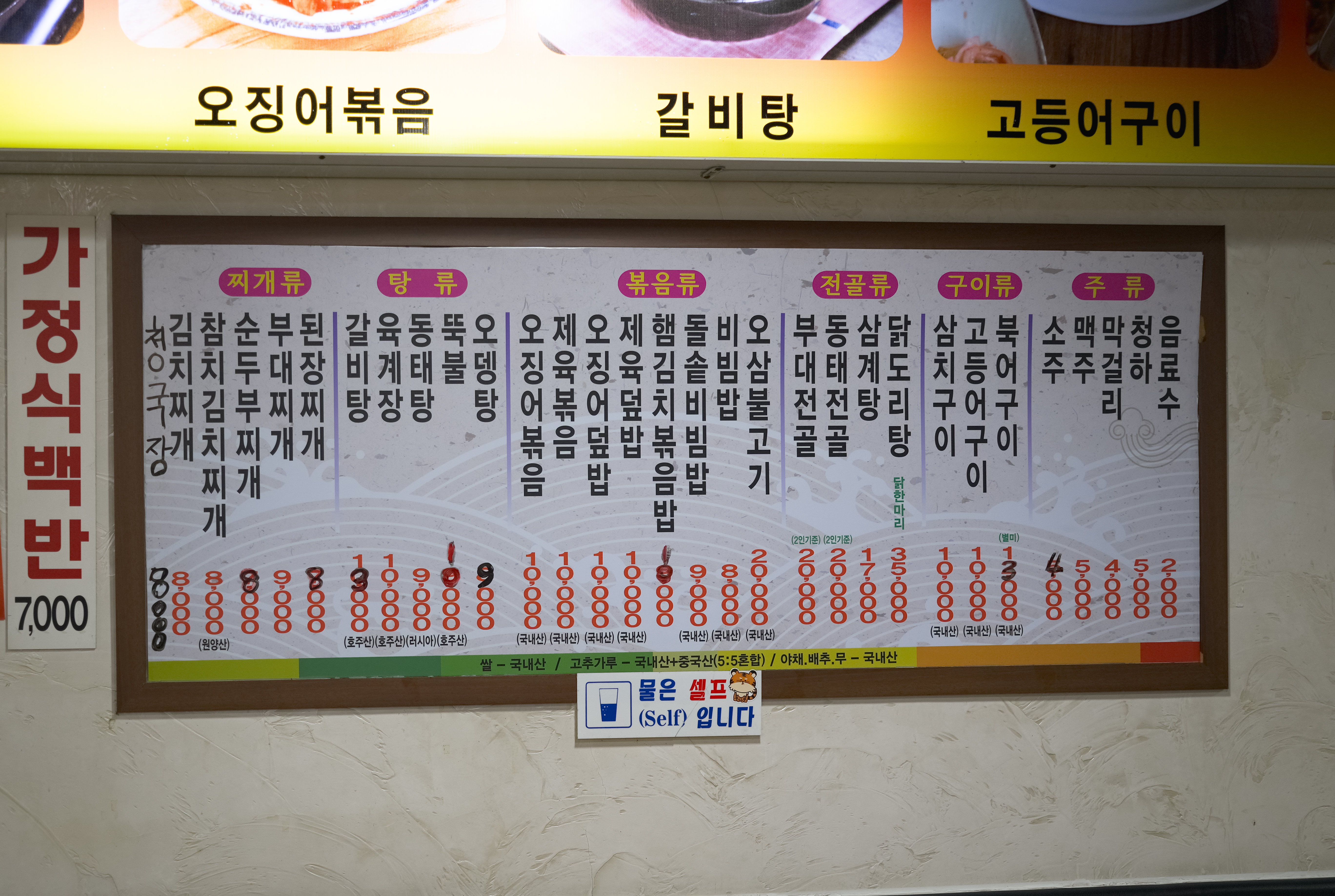 가게 내부의 모습은 위와 같습니다. 제가 마지막 손님이었는지 가게에 식사를 마치고 손님들이 다 빠져나간 상태의 가게를 사진 찍을 수 있었습니다. 가게는 할아버지, 할머니 노부부가 운영하시는 가게여서 그런지 전체적으로 노포 분위기가 많이 났습니다.