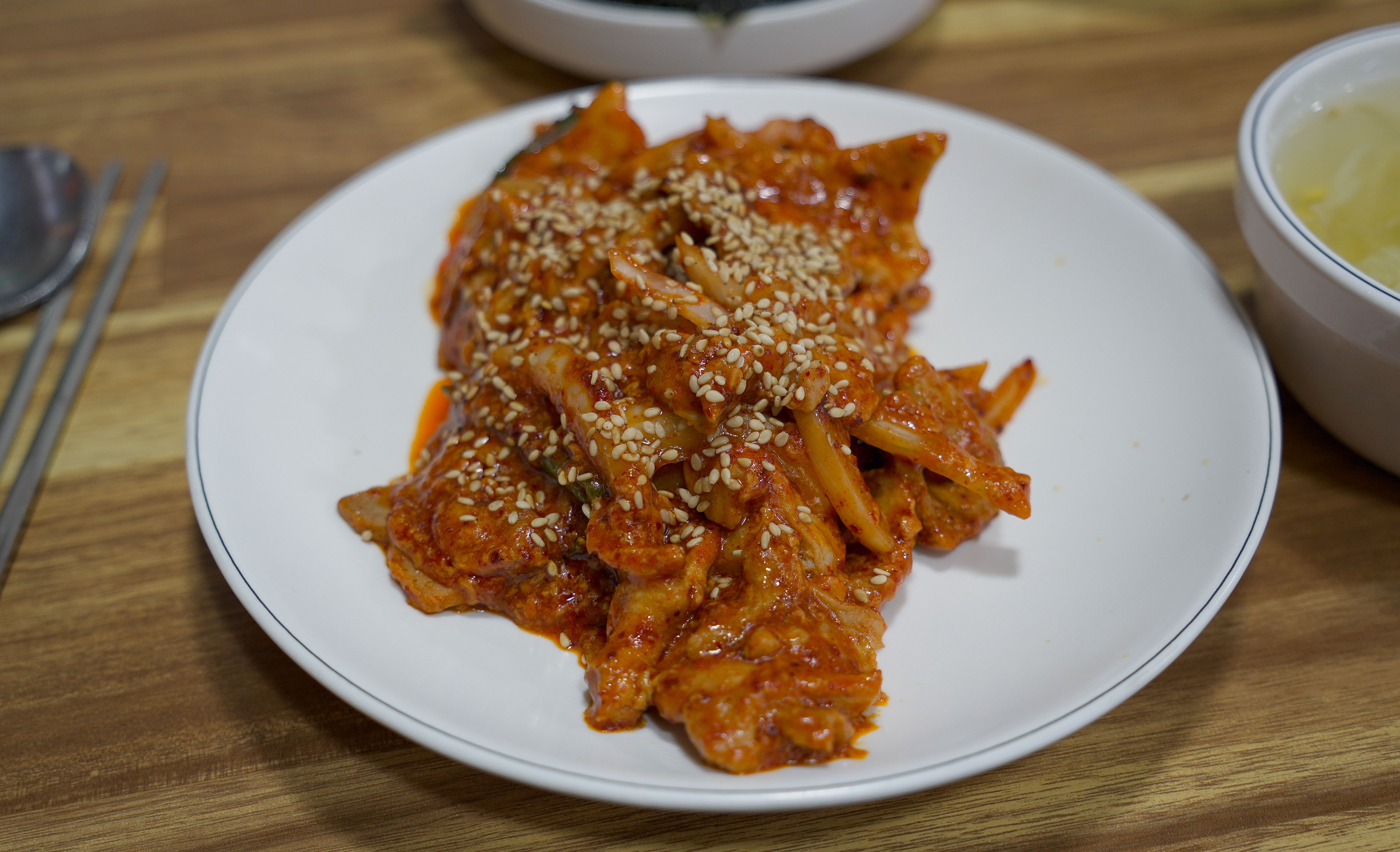 거여동 맛고을식당에서 부대찌개도 먹어보고 다음으로 제육볶음을 먹었습니다. 맛고을식당의 제육볶음도 집에서 직접 만드는 것 같이, 자극적이지 않고 자연스러운 맛이었고 양도 생각보다 적지 않아서 만족스럽게 먹을 수 있었습니다.