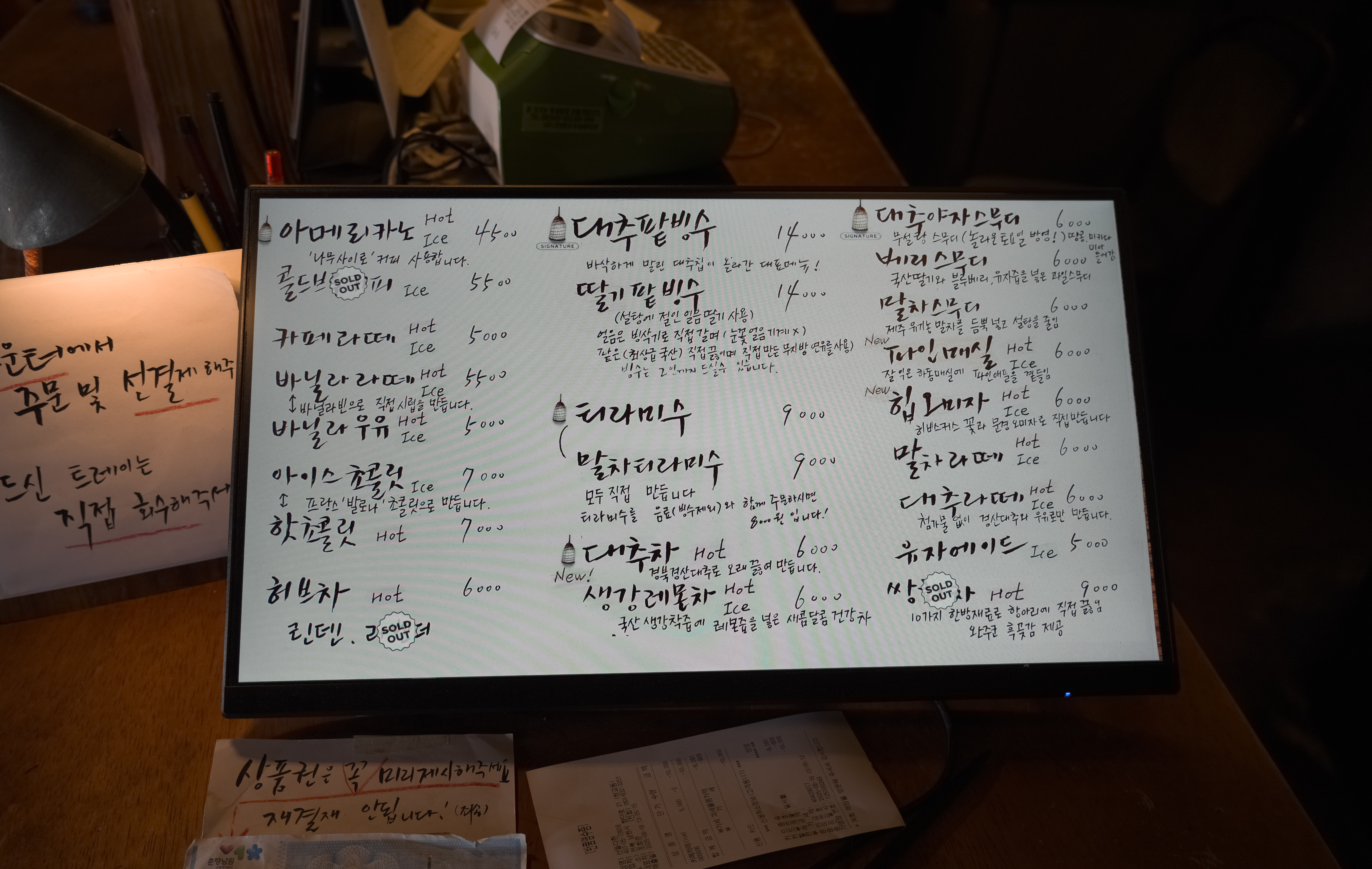 저희는 아메리카노와 카페라떼를 주문했습니다. 사실, 남원 산들다헌에는 대추팥빙수가 가장 유명하다고 하는데, 그저 더운 날씨에 잠깐 휴식을 취하러 방문했기에 대추팥빙수를 주문하지는 않았습니다. 커피의 맛은 '나무사이로' 원두를 사용한다고 하는데, 저는 커피에 대해 크게 선호하는 맛이 없다 보니 다 만족스러웠습니다.