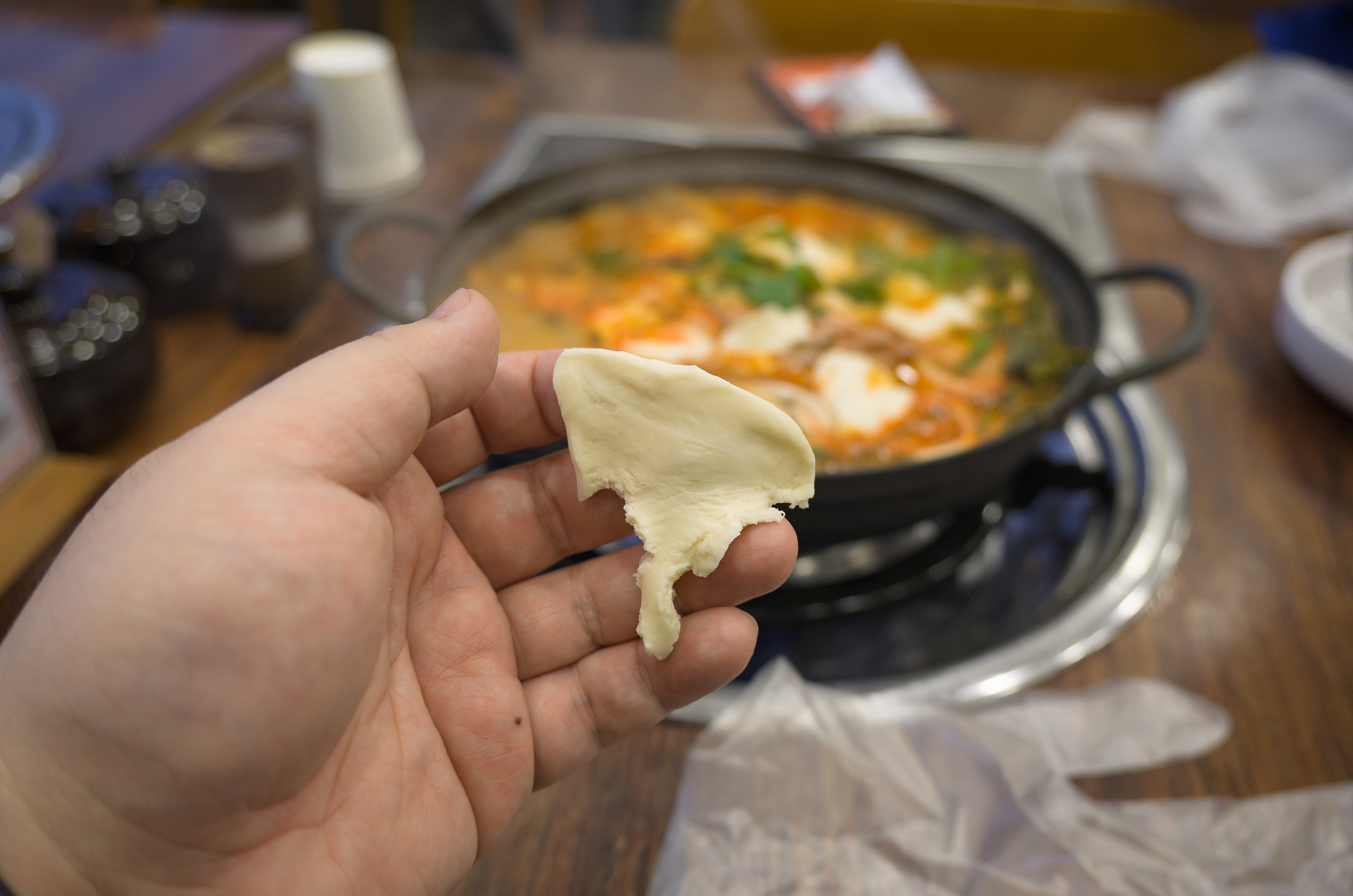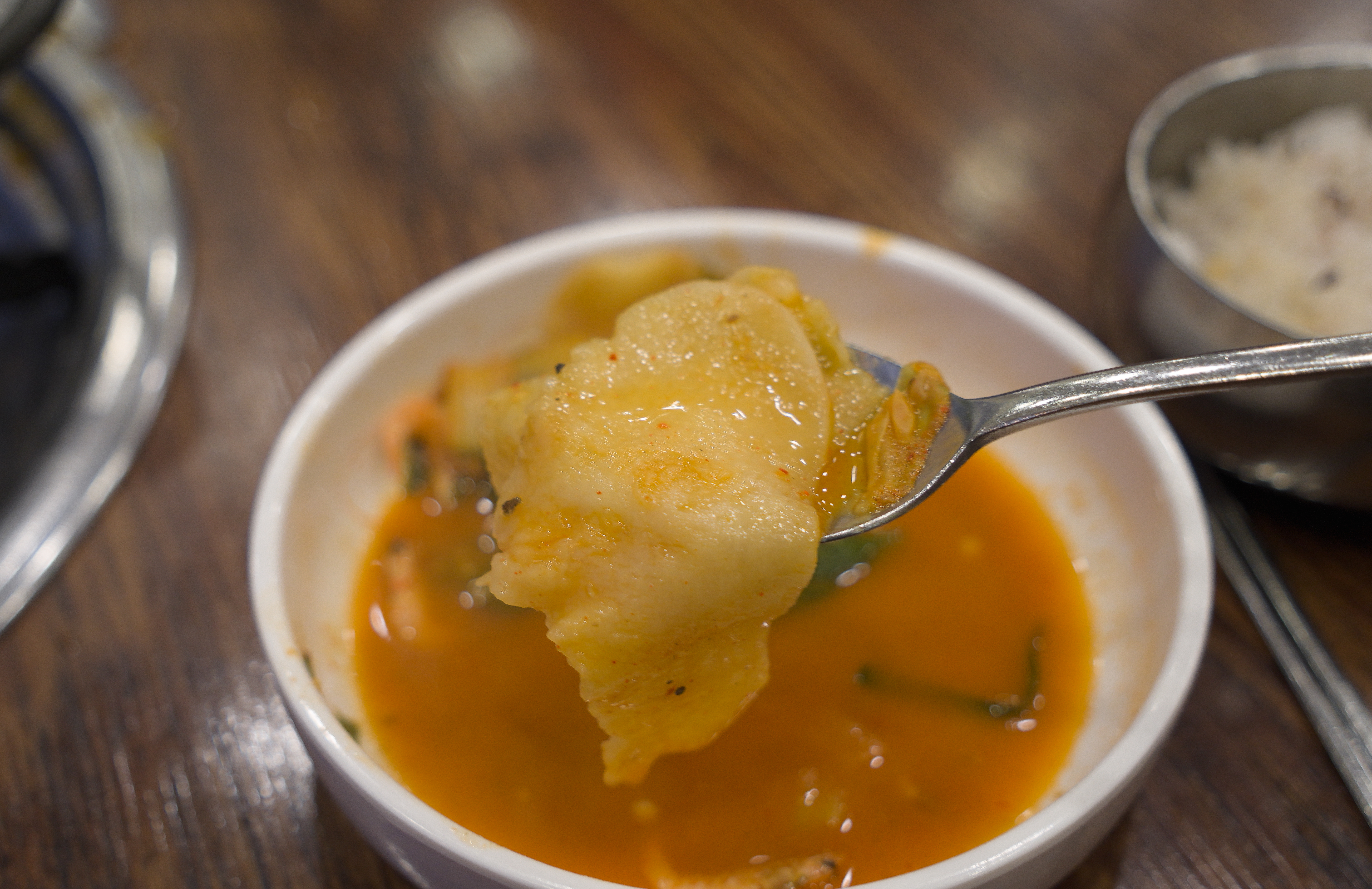 추어탕에다 수제비 사리를 가져와서 손으로 직접 수제비를 뜯어 추가해 먹었는데, 알고 보니 추어탕 속에 이미 수제비가 같이 들어있더라고요. 그래도 직접 수제비를 추가해서 먹으니 특별한 경험이었고 재미도 있었습니다.