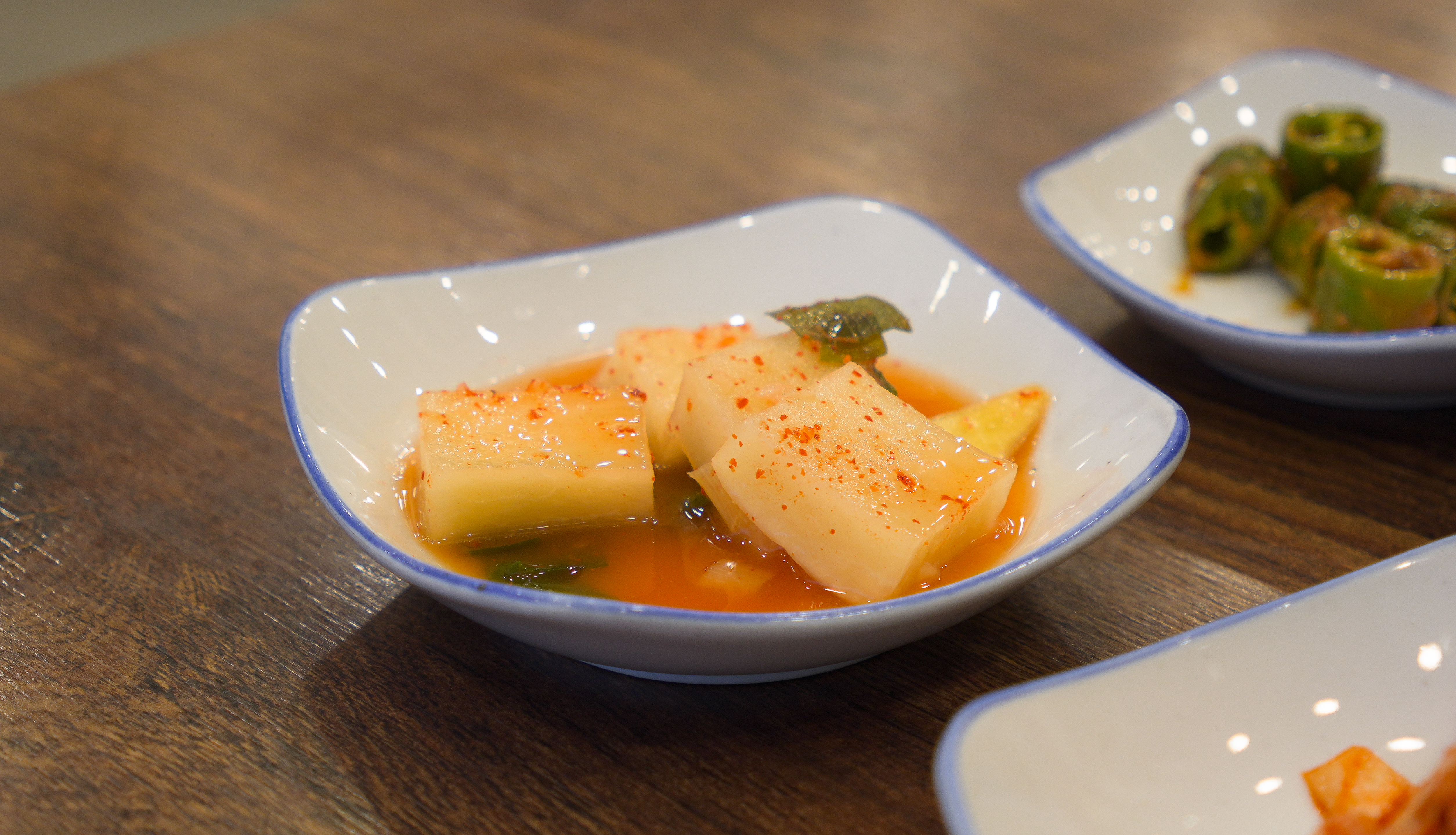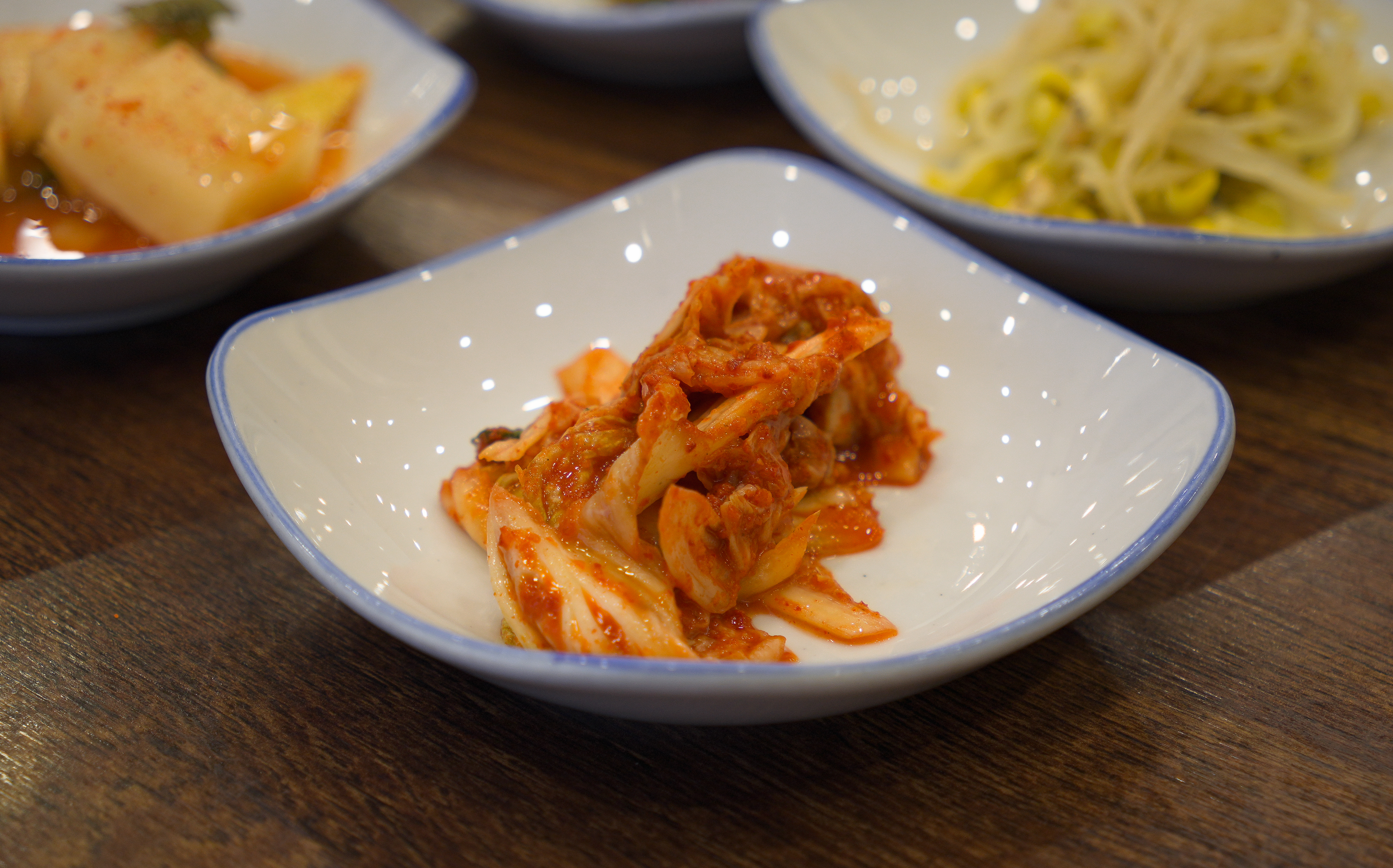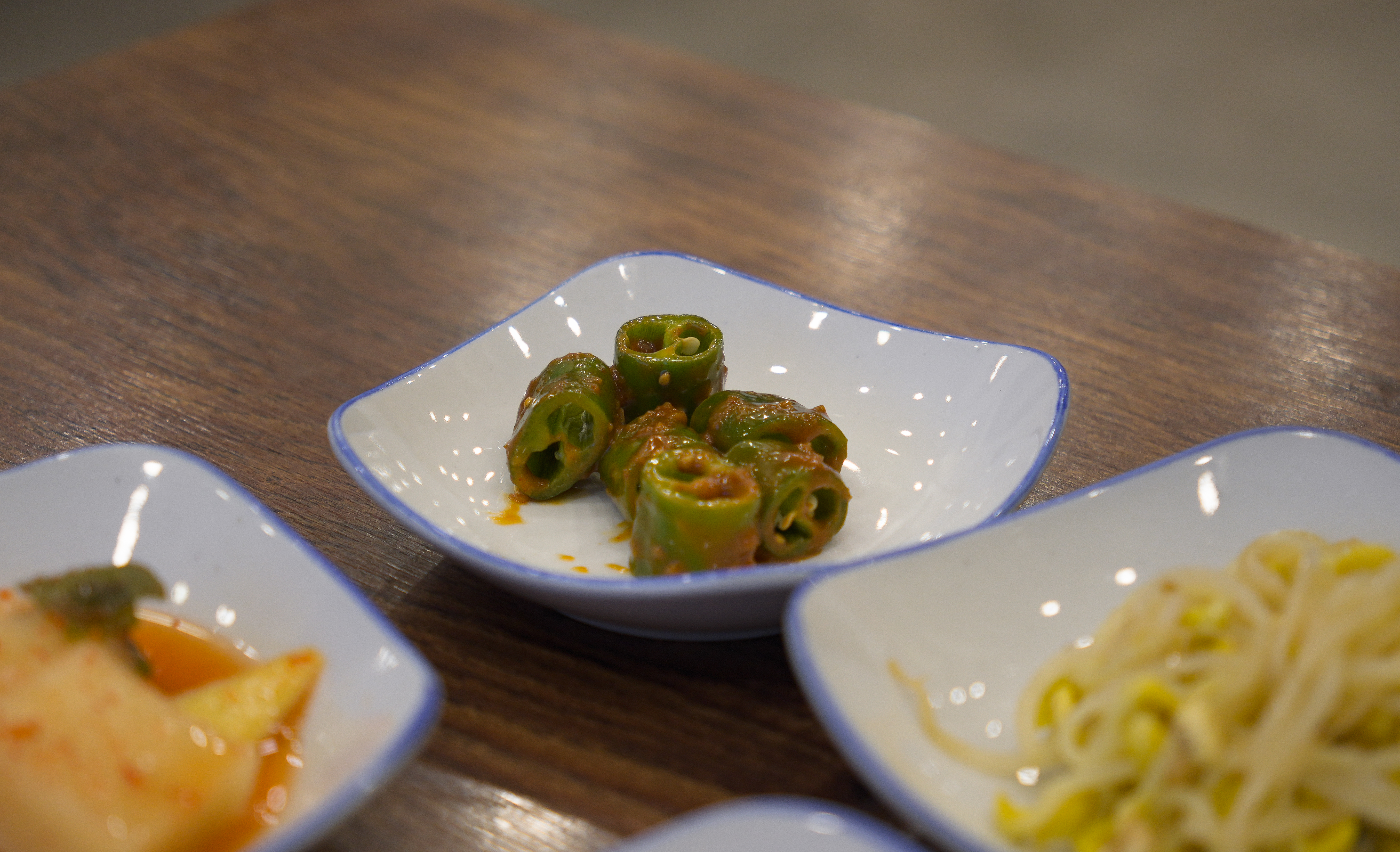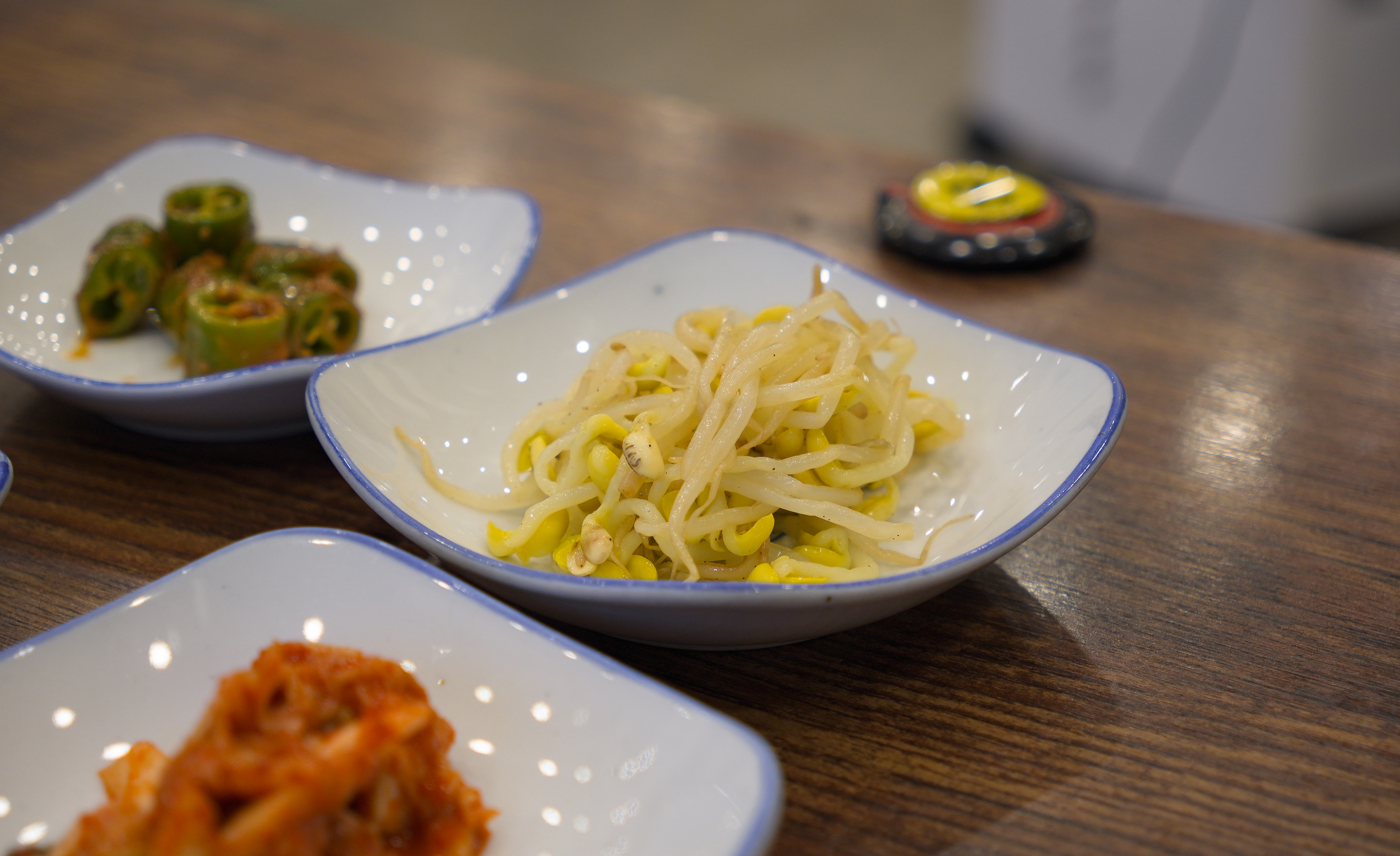 반찬들은 콩나물무침, 배추김치, 무김치, 고추가 나왔습니다. 반찬들은 대체적으로 맛이 자극적이지 않았고, 부족한 반찬은 셀프코너에서 직접 덜어다 먹을 수 있었습니다.