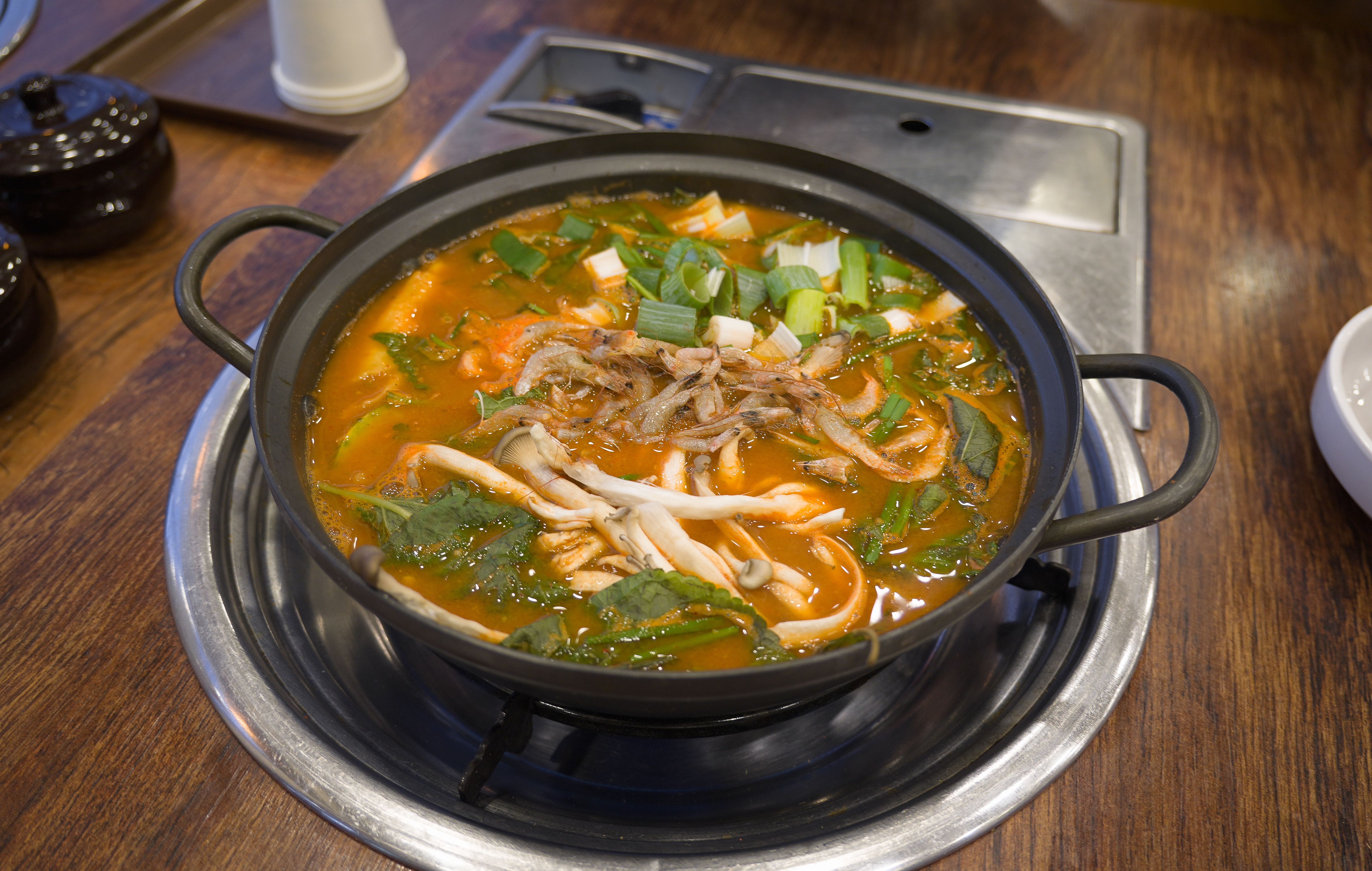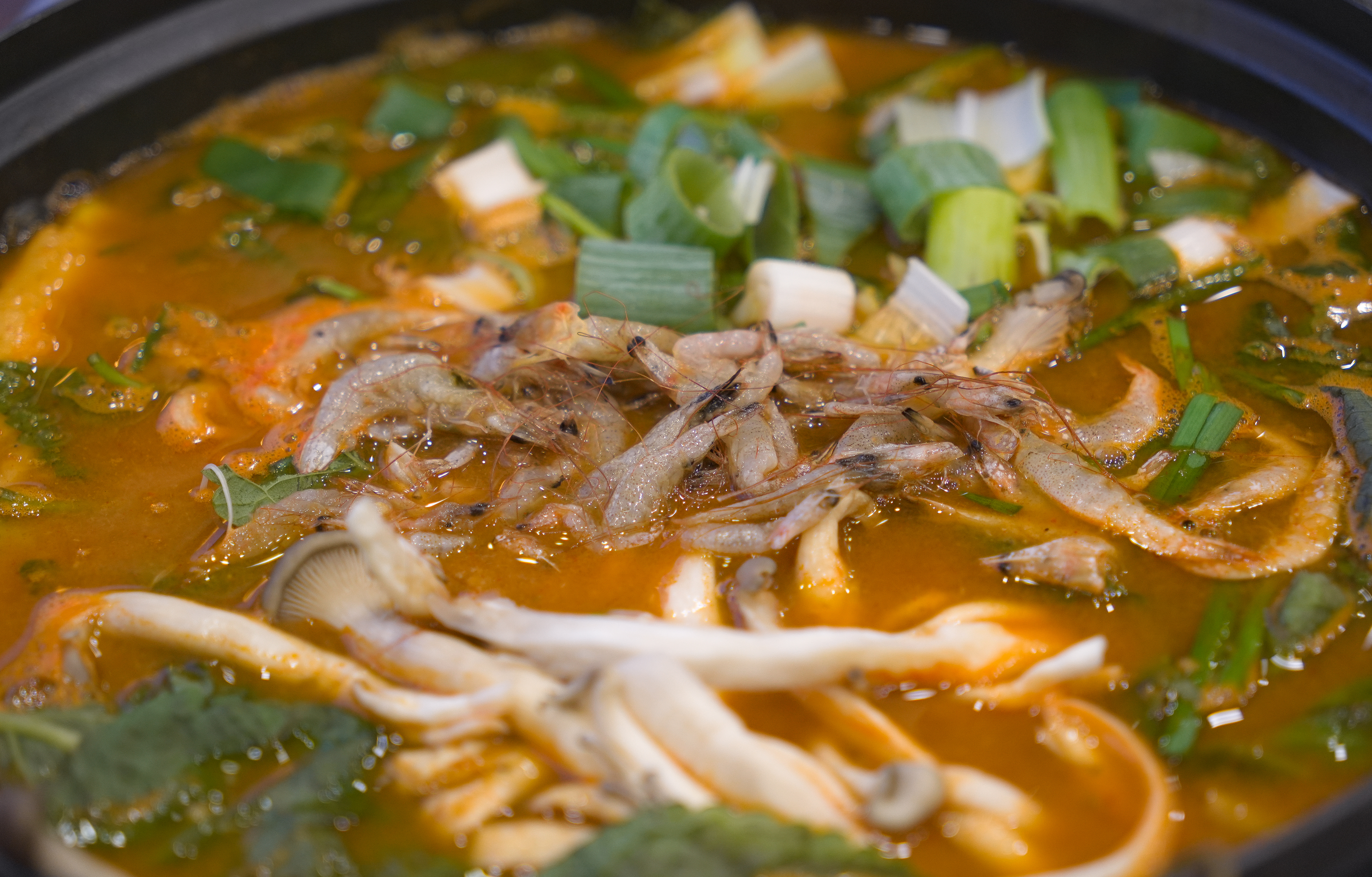 곧이어 주문한 고추장 추어탕이 나왔습니다. 이 추어탕에는 민물새우와 버섯 등을 넣어 얼큰 샤브샤브같이 먹을 수 있는 메뉴였습니다. 이름처럼 고추장을 베이스로 해서 그런지 국물은 고추장 맛이 느껴졌습니다.
