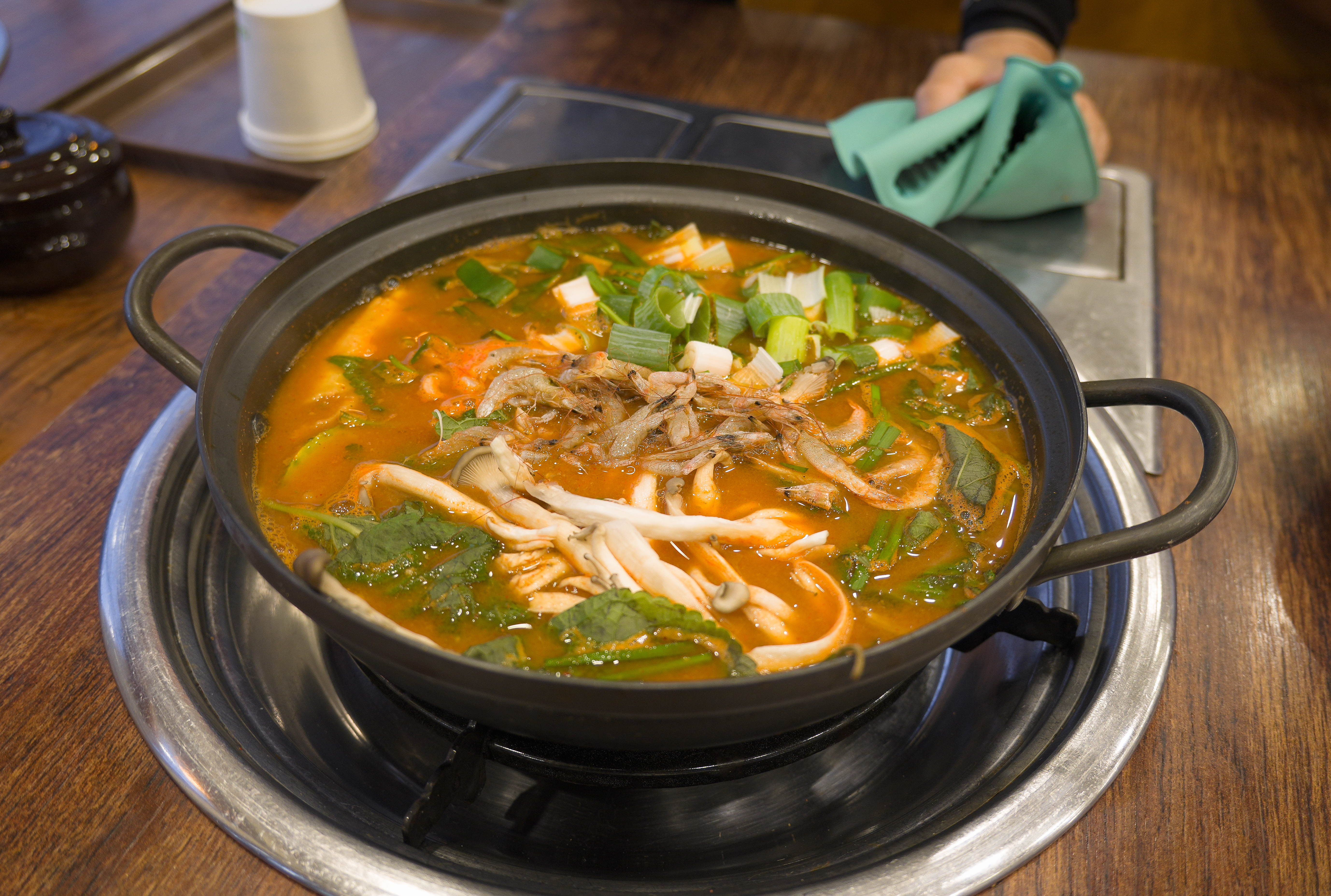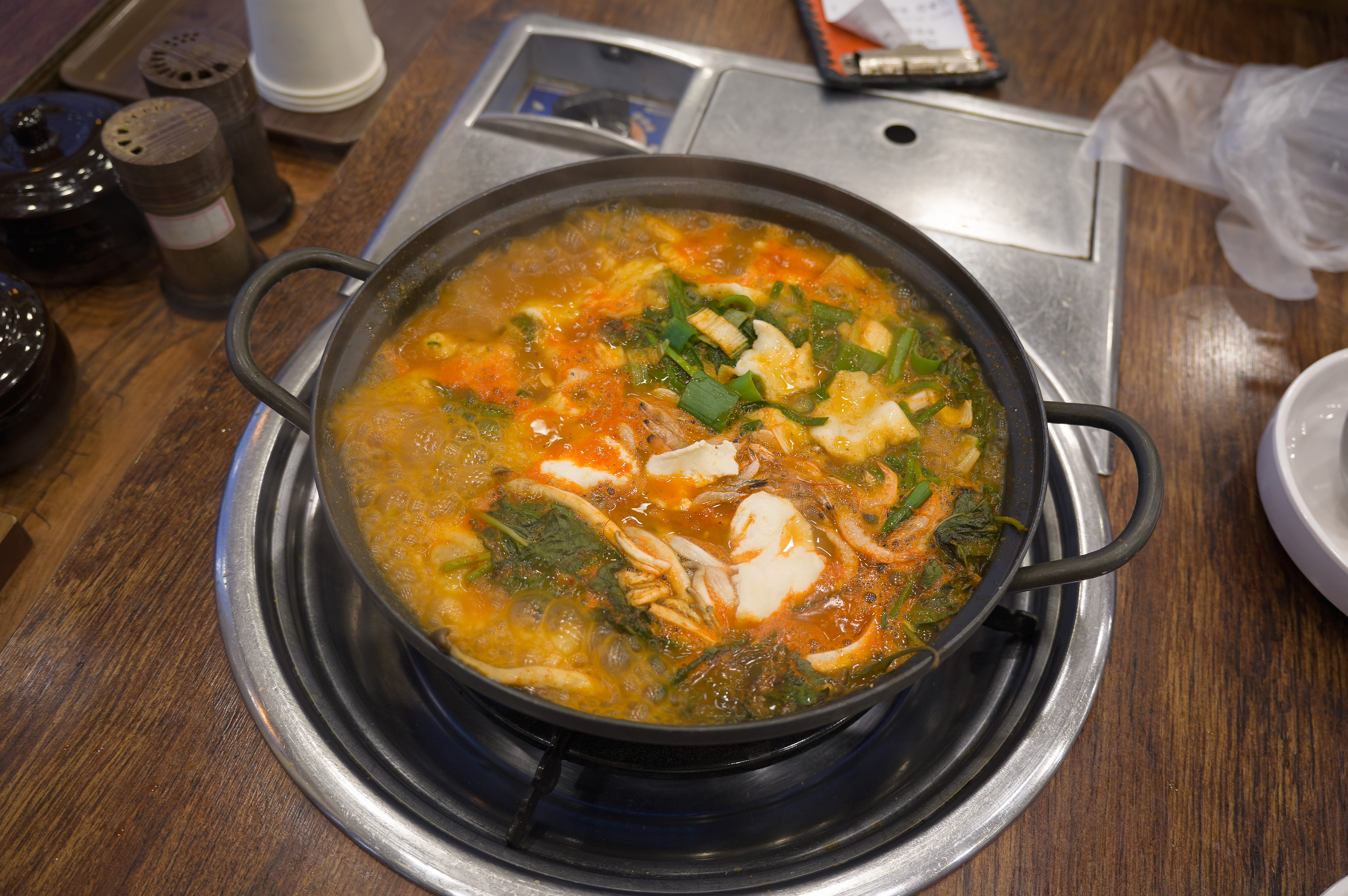 곧이어 주문한 고추장 추어탕이 나왔습니다. 이 추어탕에는 민물새우와 버섯 등을 넣어 얼큰 샤브샤브같이 먹을 수 있는 메뉴였습니다. 이름처럼 고추장을 베이스로 해서 그런지 국물은 고추장 맛이 느껴졌습니다.