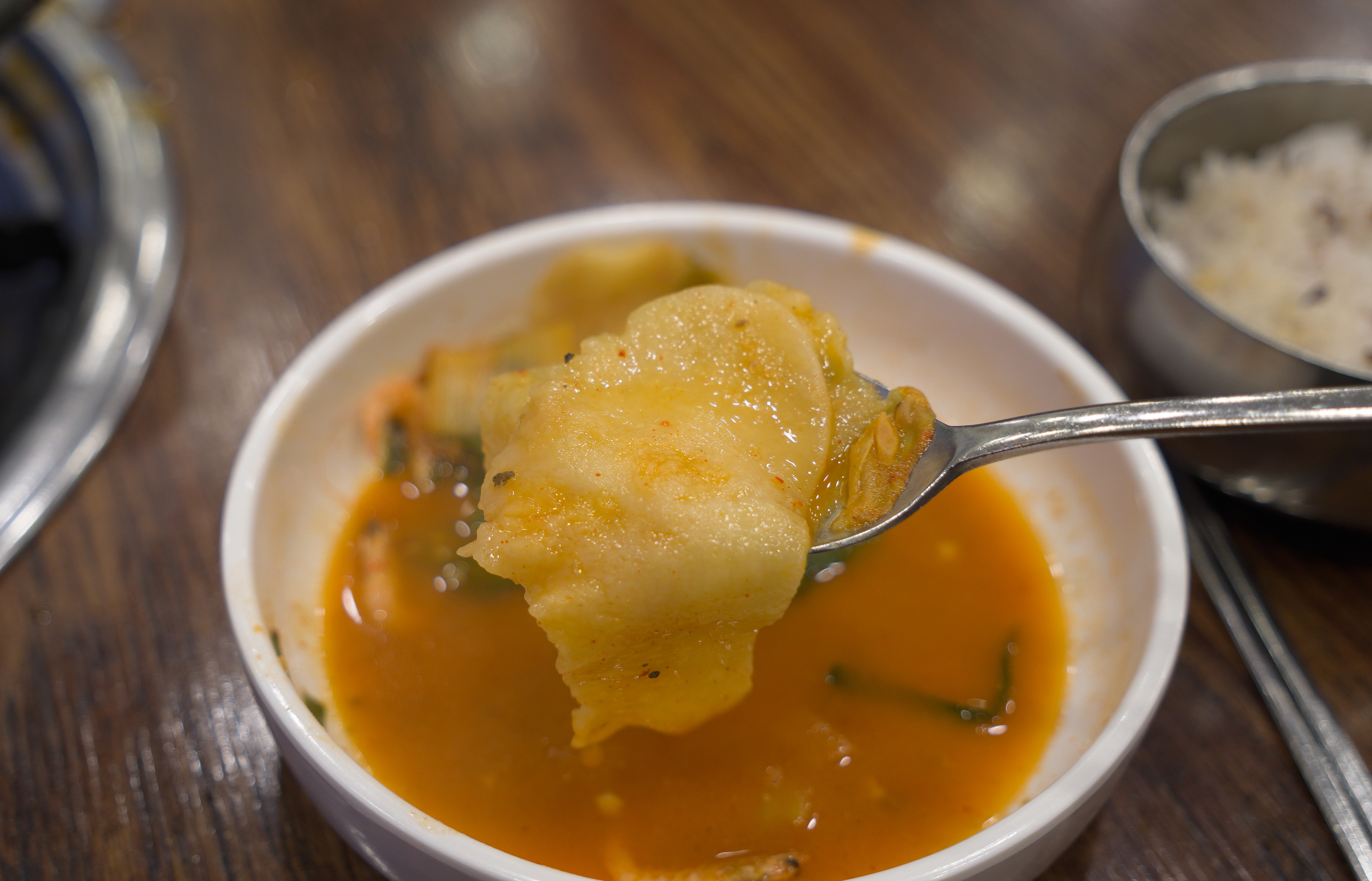 추어탕에다 수제비 사리를 가져와서 손으로 직접 수제비를 뜯어 추가해 먹었는데, 알고 보니 추어탕 속에 이미 수제비가 같이 들어있더라고요. 그래도 직접 수제비를 추가해서 먹으니 특별한 경험이었고 재미도 있었습니다.