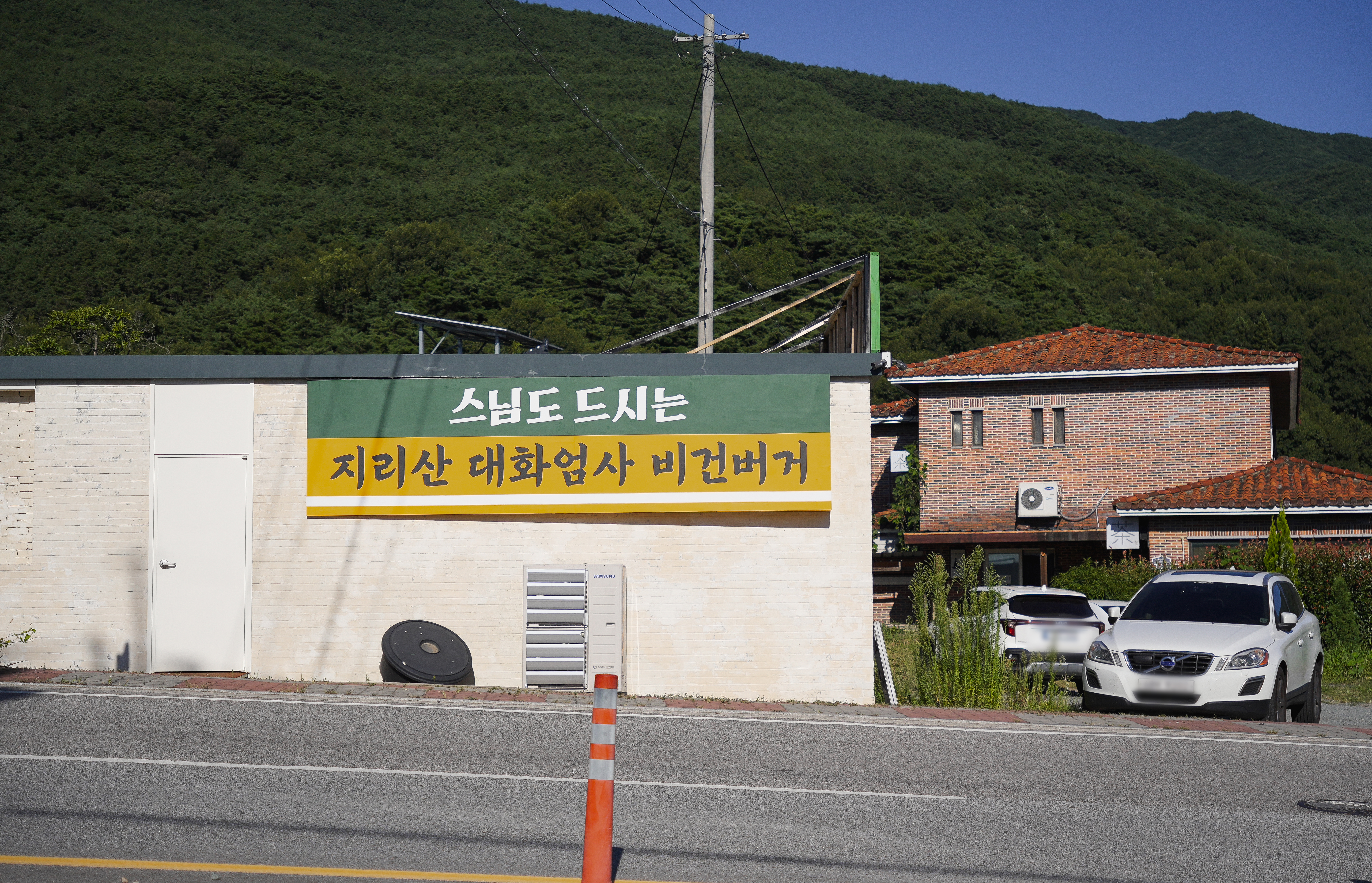 화엄사 템플버거는 전남 구례군 마산면 화엄사로 332 에 위치해 있었습니다. 사실, 화엄사 내부에 위치할 줄 알았는데, 차로 약 5분 정도 떨어진 곳에 위치해 있어서 살짝 아쉬웠습니다. 가게에는 '스님도 드시는 지리산 대화엄사 비건버거' 라는 문구가 가게에 붙어있어서 멀리서도 가게를 바로 알아볼 수 있었습니다. 영업시간은 11:00-19:00 까지였습니다.