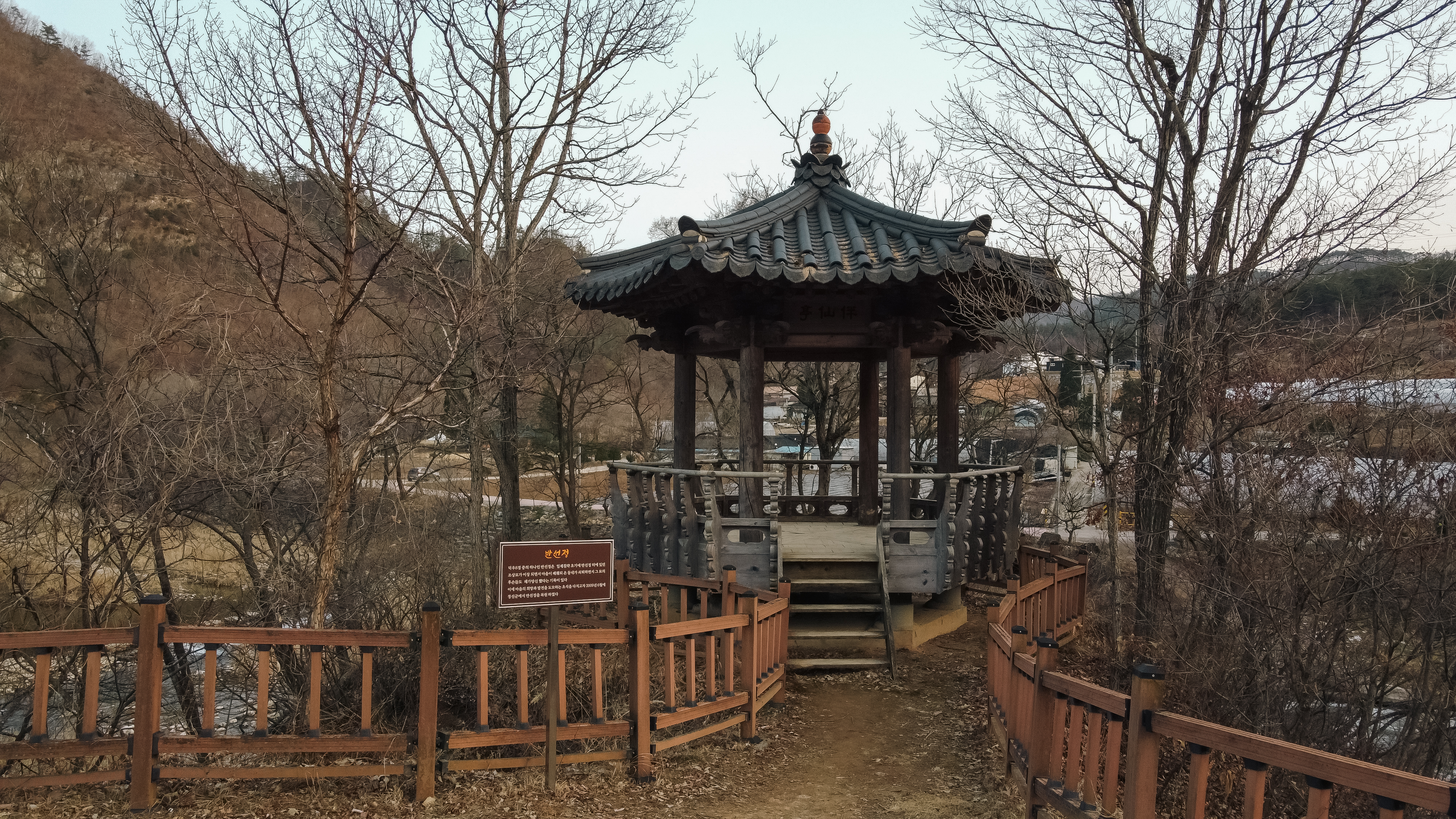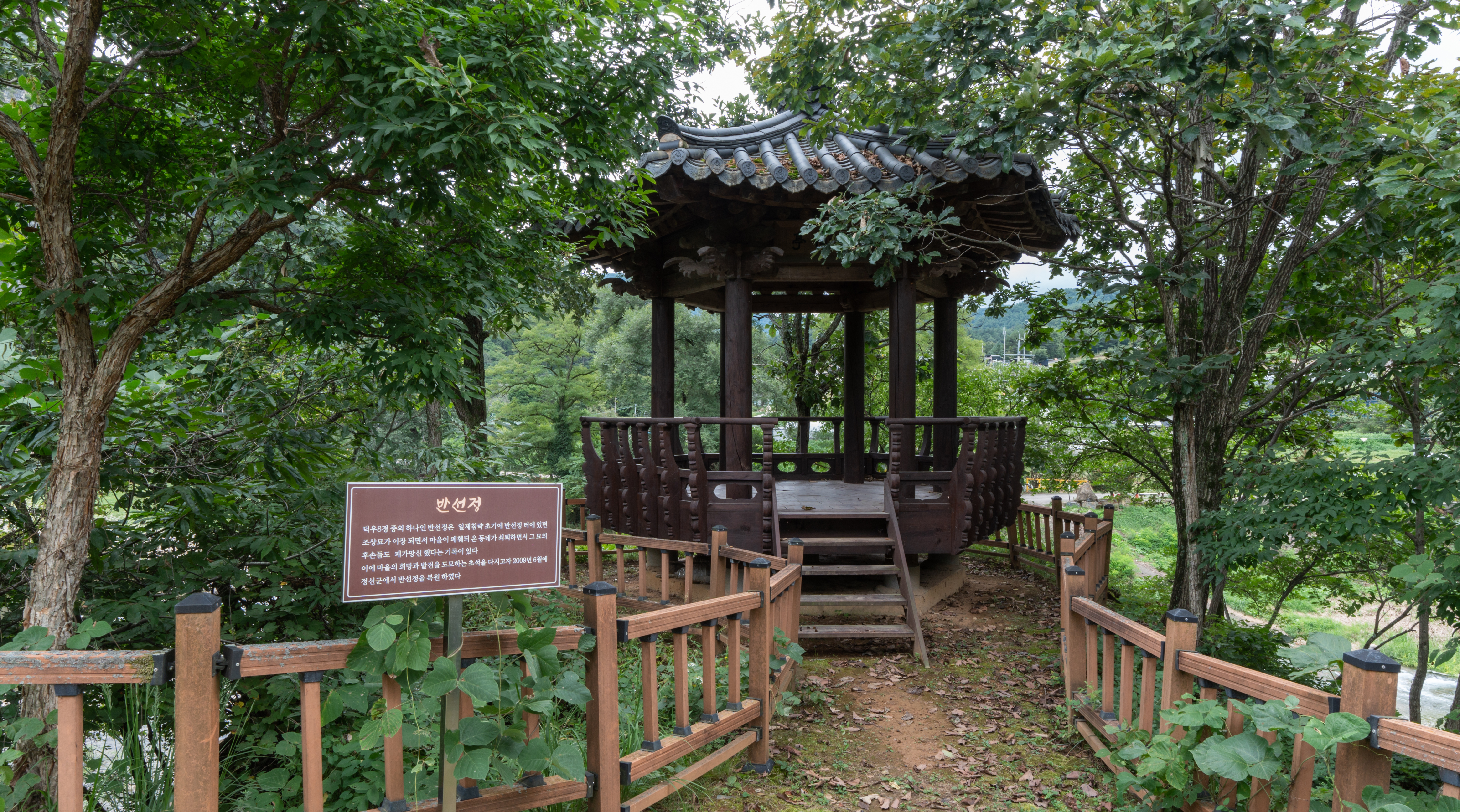 청보리밭 가는 길에 옆으로 난 샛길로 들어가면 반선정이라 불리는 정자가 있습니다. 이곳은 덕우8경중 하나로 이곳은 2009년 6월에 복원된 정자라고 합니다. 정자에서 밖을 바라보면 시원하게 흐르는 물이 마음속까지 뻥 뚫어주는 것 같습니다.