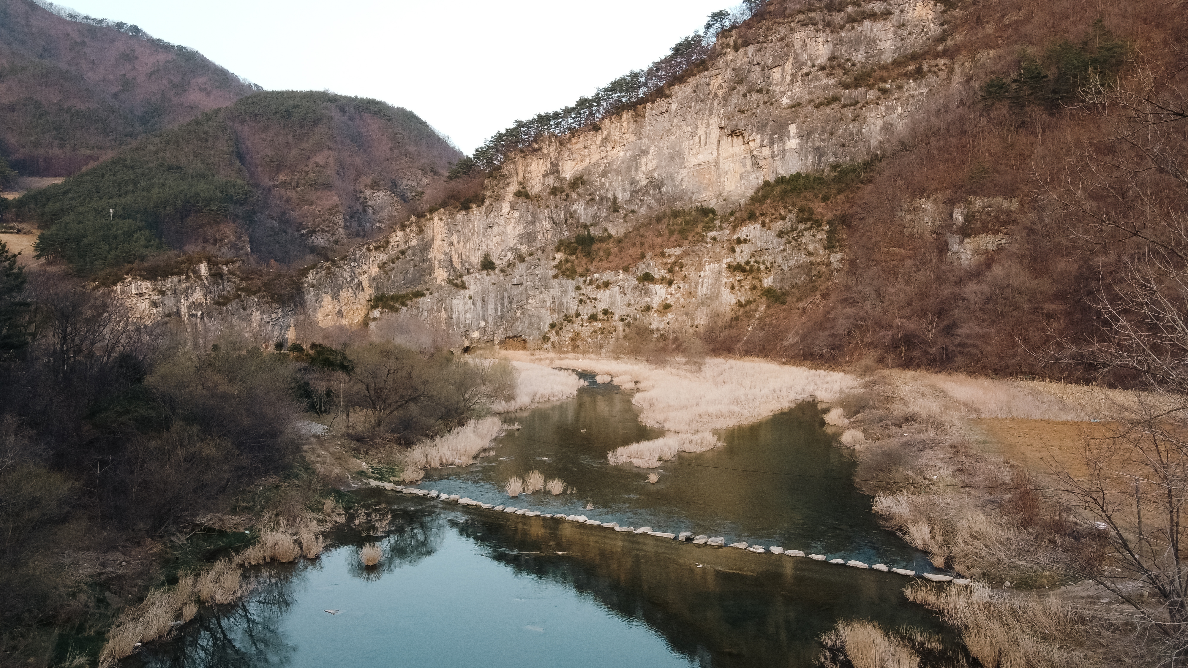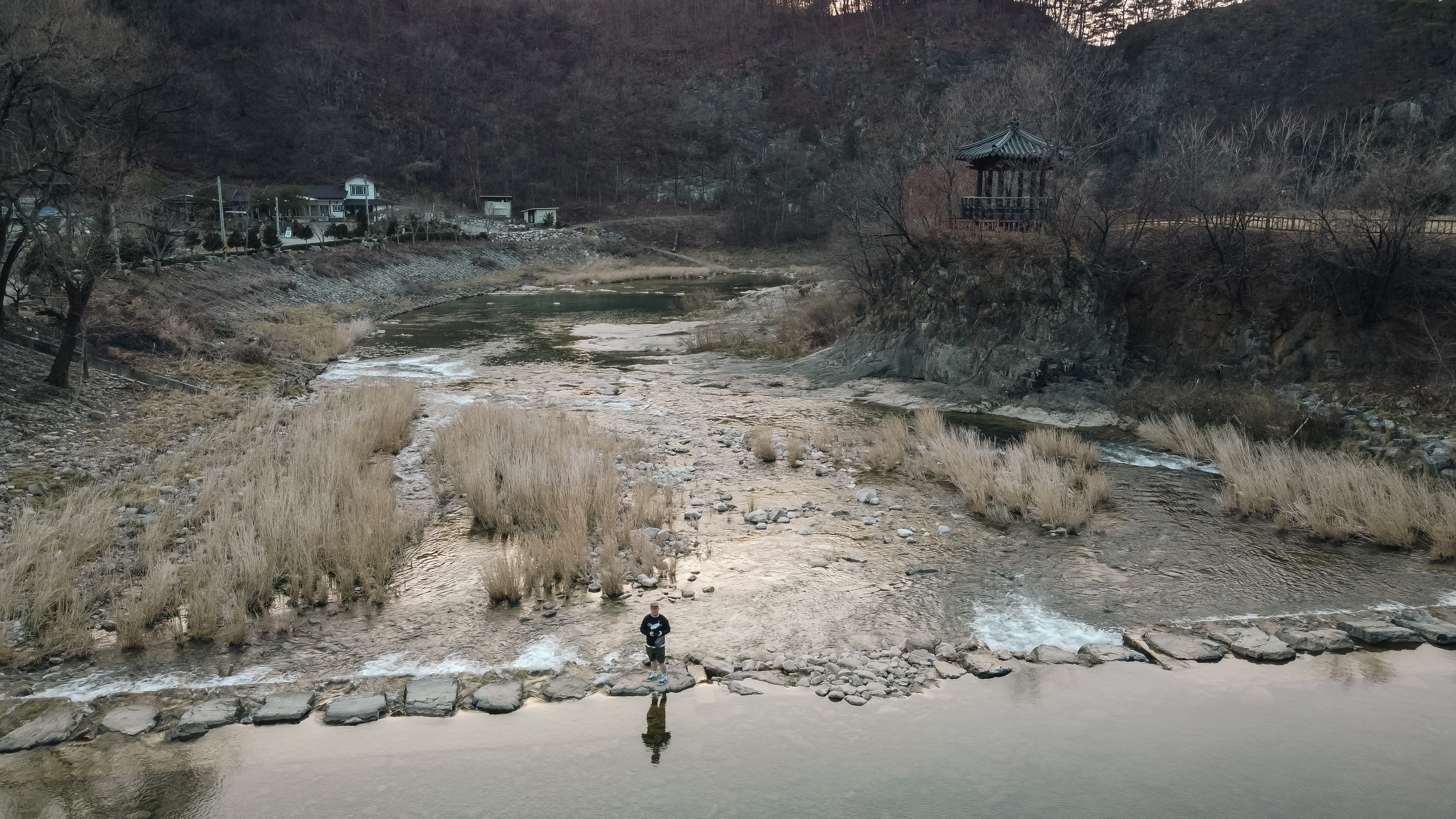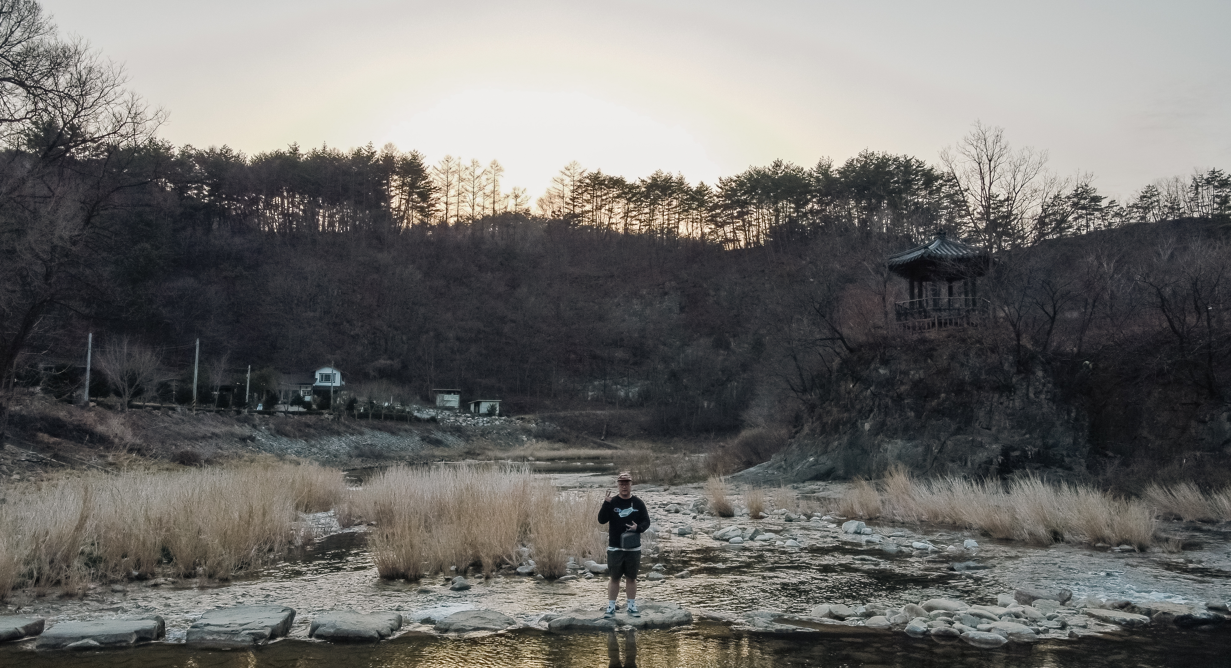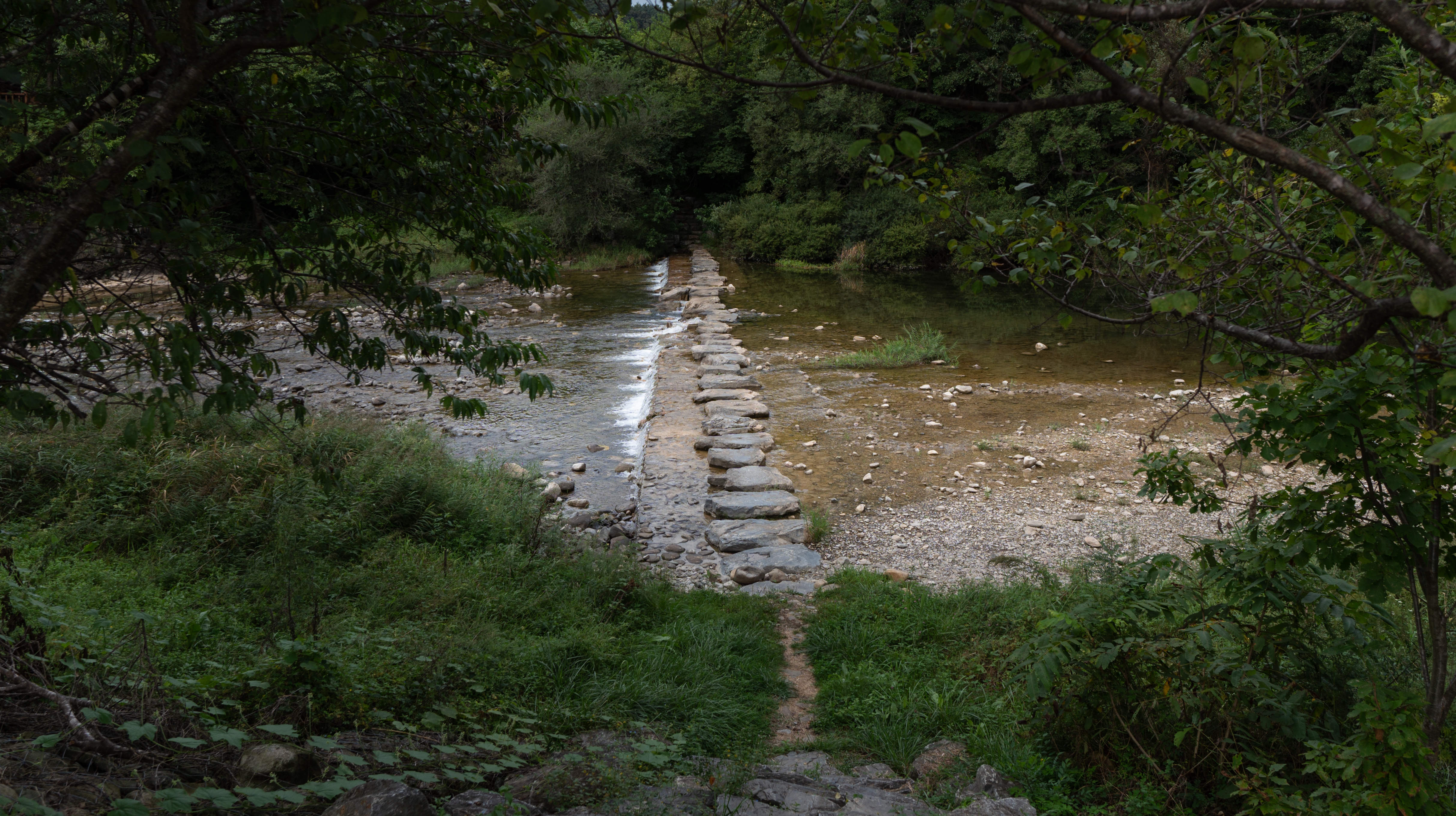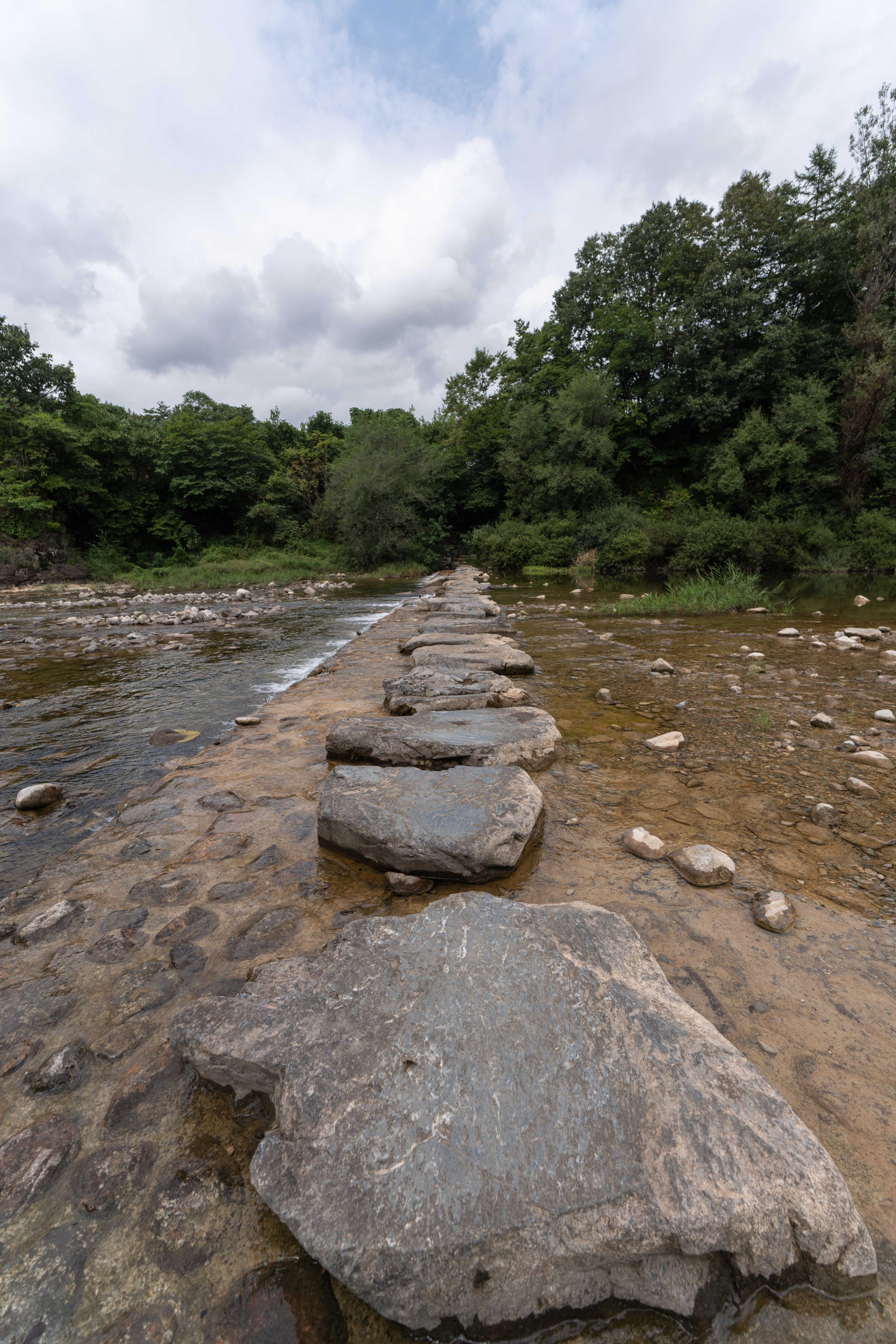 청보리밭을 가는 길은 위와 같이 징검다리를 건너야 하는데요. 유속이 살짝 있어서 겁내시는 분도 있을 것 같습니다. 하지만 징검다리로 쓰이는 돌들이 꽤 크고 넓어서 미끄러지지만 않는다면 그럭저럭 다닐만했습니다.