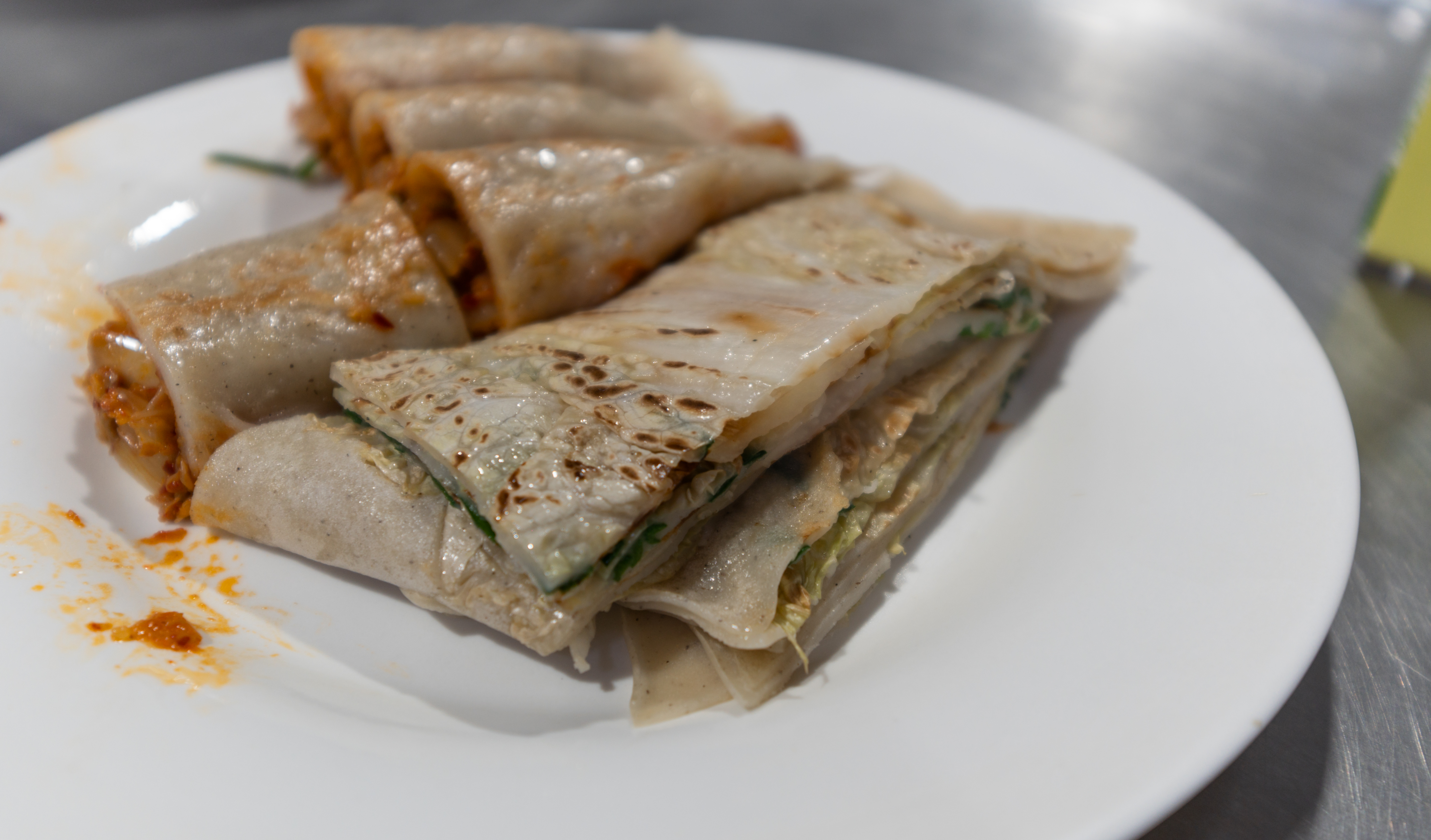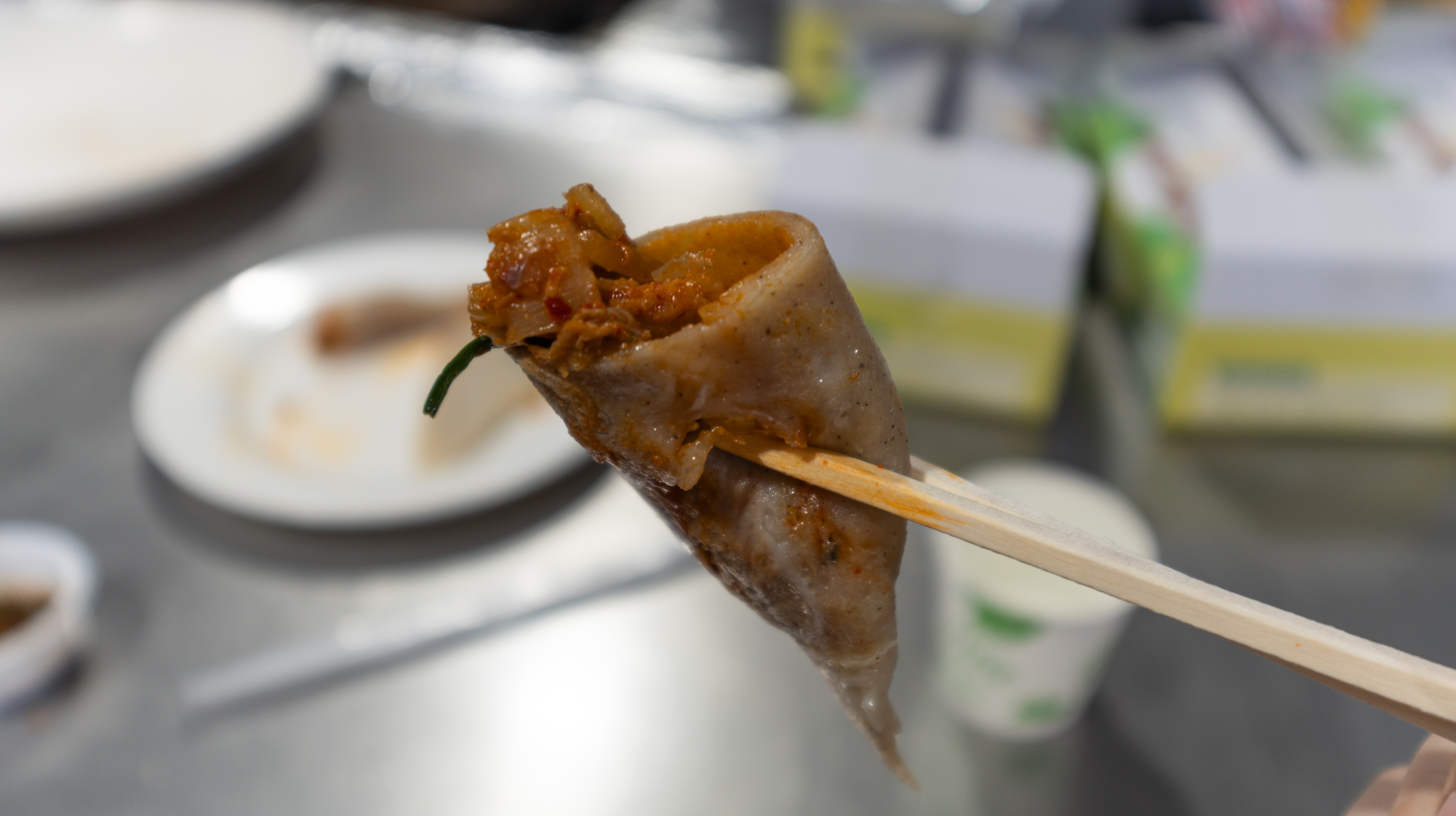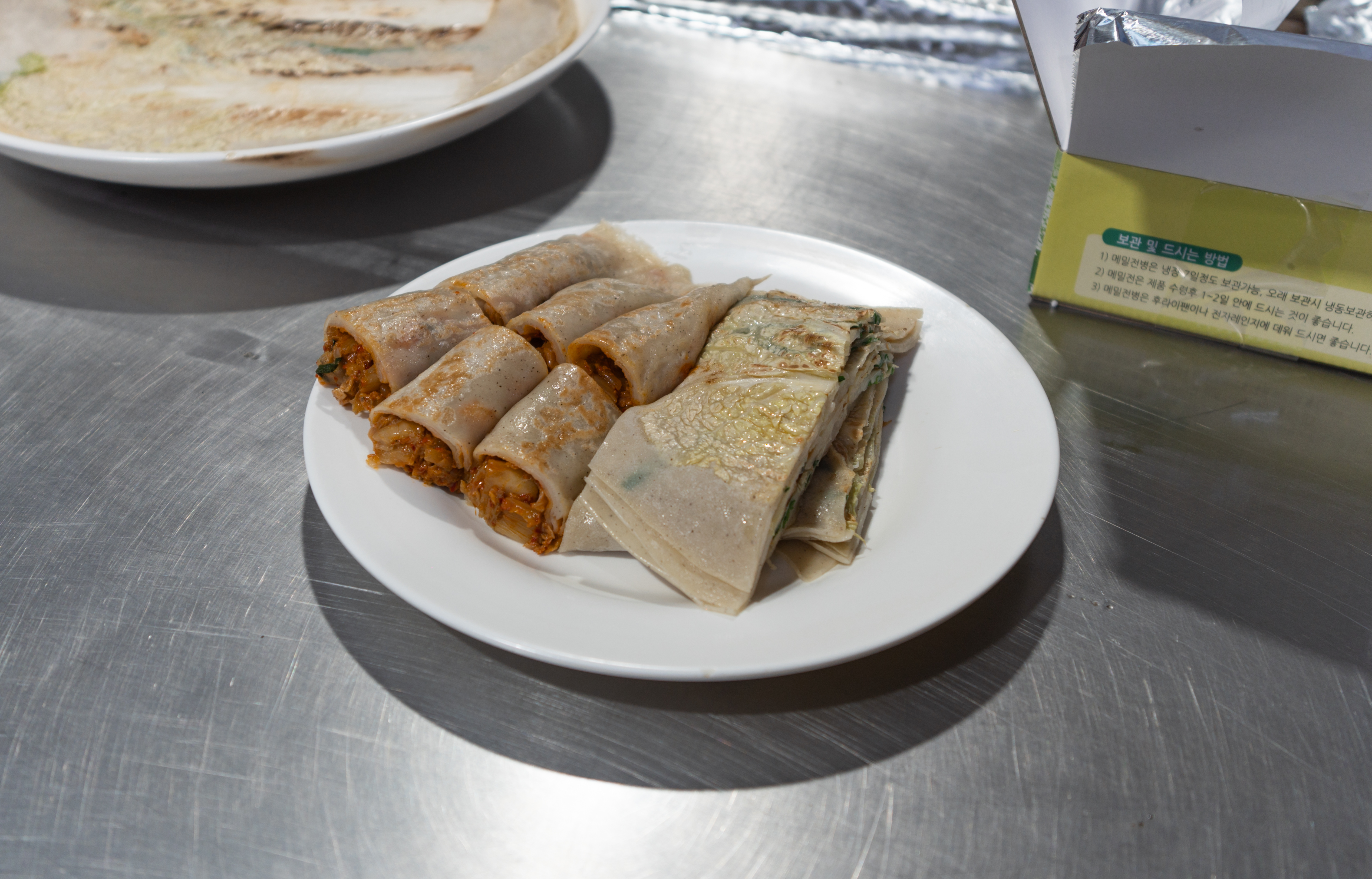 강원도 영월 서부아침시장 내에 위치한 메밀전과 메밀전병 맛집 연하집에서 배추전과 메밀전병을 먹었습니다. 부드럽고 쫄깃한 식감의 심심한 맛의 배추전과 매콤 짭짤한 맛의 메밀전병 모두 맛이 괜찮았습니다.