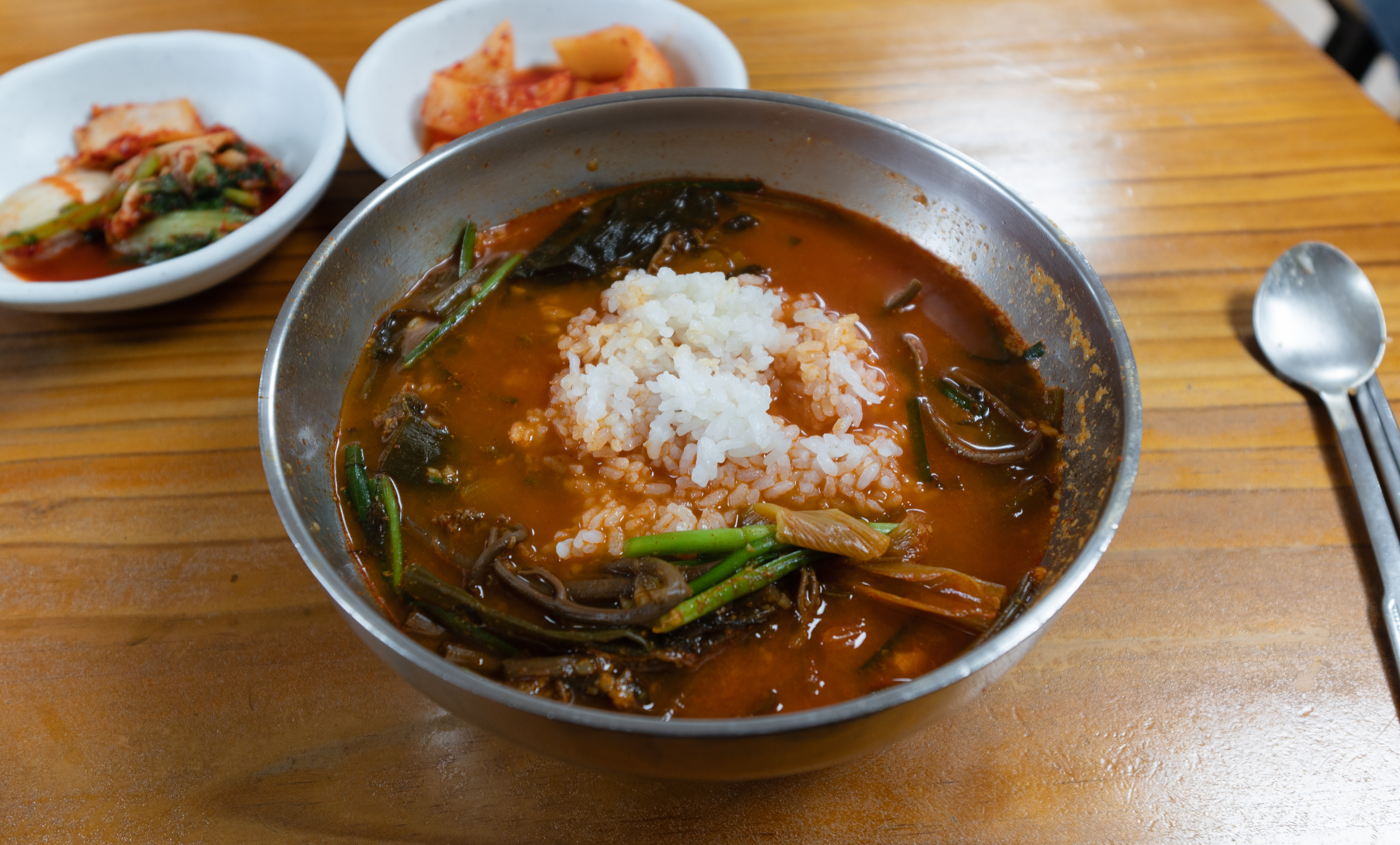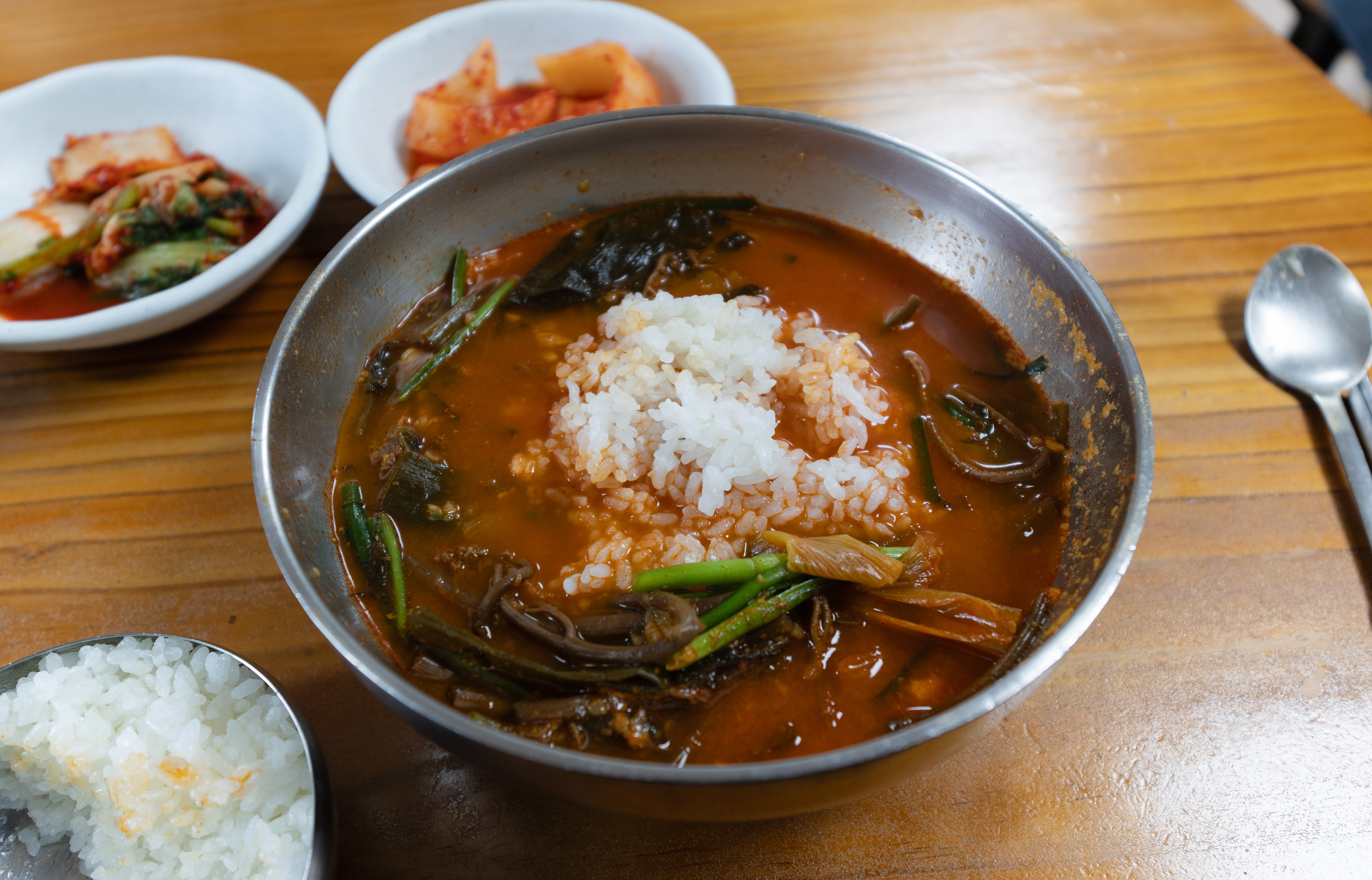 강원도 영월 현지인 맛집 '대미식당'이라는 가게도 알게되어 방문하게 되었습니다. 영월 대미식당은 뼈다귀해장국과 곤드레육개장이 맛있었던 가게입니다. 제 포스팅에서 뼈다귀해장국은 사진으로 소개되지 않지만, 전날 은하수 사진 찍다가 알게 된 분과 함께 먹어서 맛있다는 것은 알고 있었습니다. 그럼 이제 영월 뼈다귀해장국 맛집 대미식당의 '곤드레육개장'을 소개해드리겠습니다.