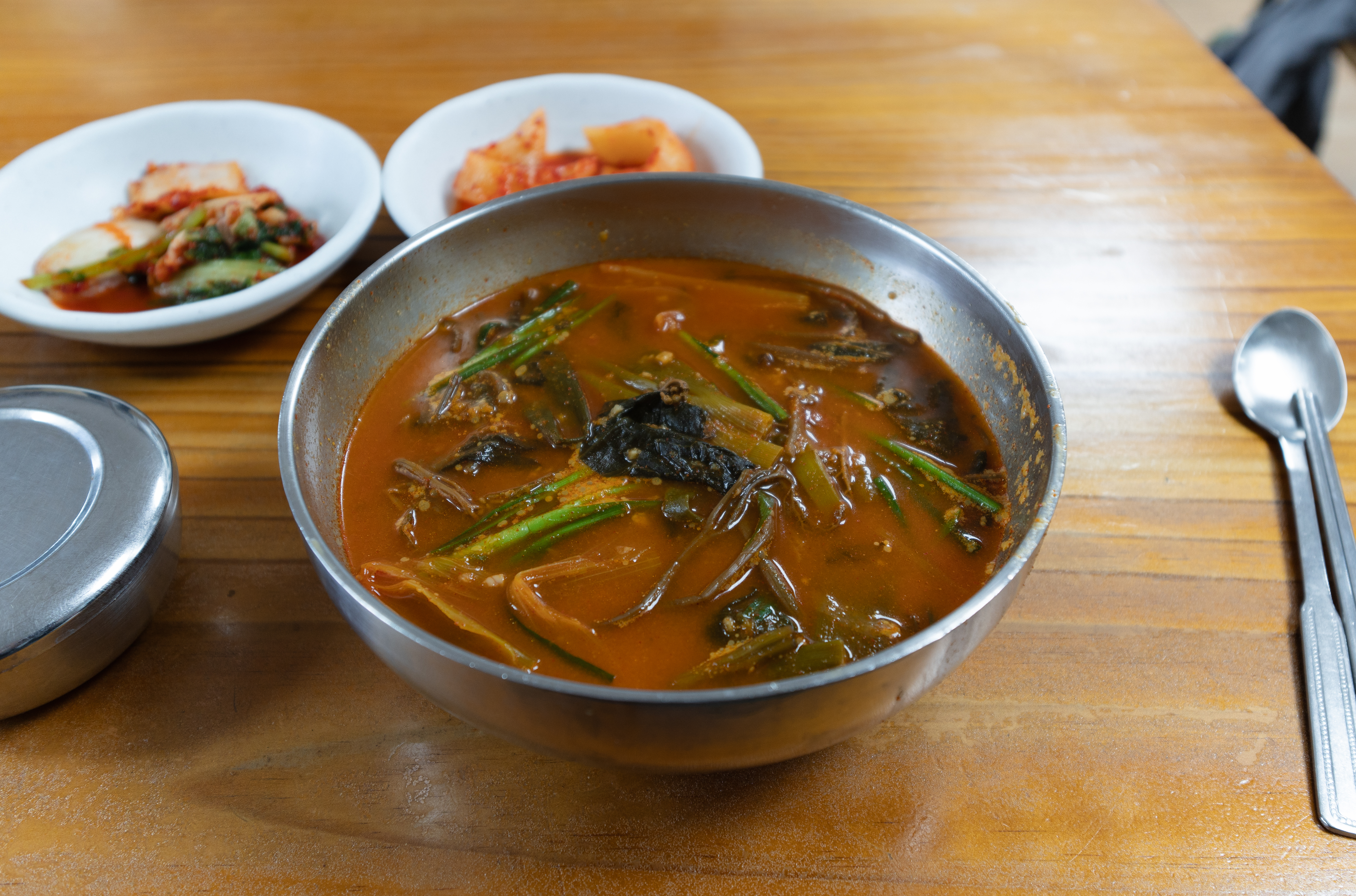 강원도 영월 현지인 맛집 '대미식당'이라는 가게도 알게되어 방문하게 되었습니다. 영월 대미식당은 뼈다귀해장국과 곤드레육개장이 맛있었던 가게입니다. 제 포스팅에서 뼈다귀해장국은 사진으로 소개되지 않지만, 전날 은하수 사진 찍다가 알게 된 분과 함께 먹어서 맛있다는 것은 알고 있었습니다. 그럼 이제 영월 뼈다귀해장국 맛집 대미식당의 '곤드레육개장'을 소개해드리겠습니다.