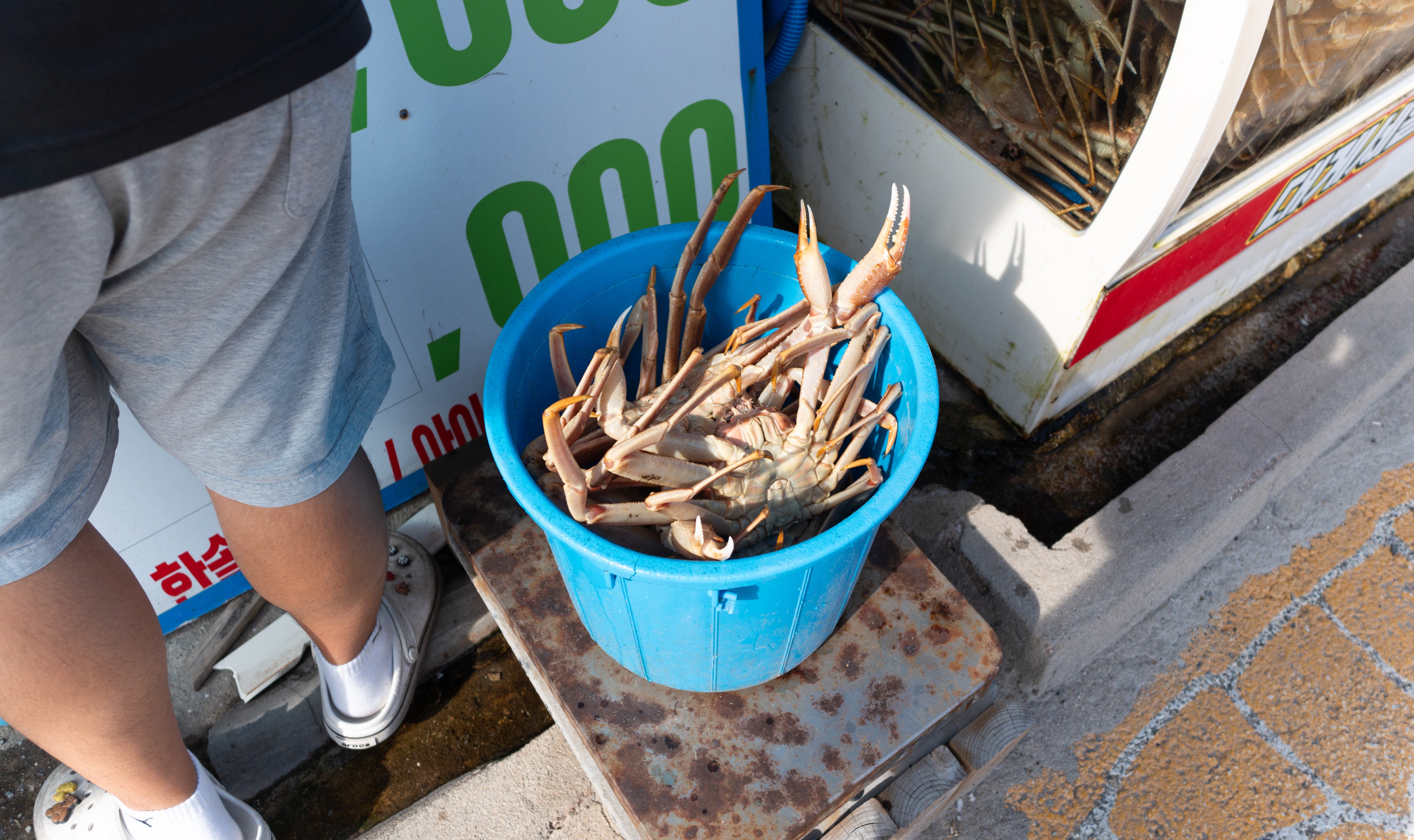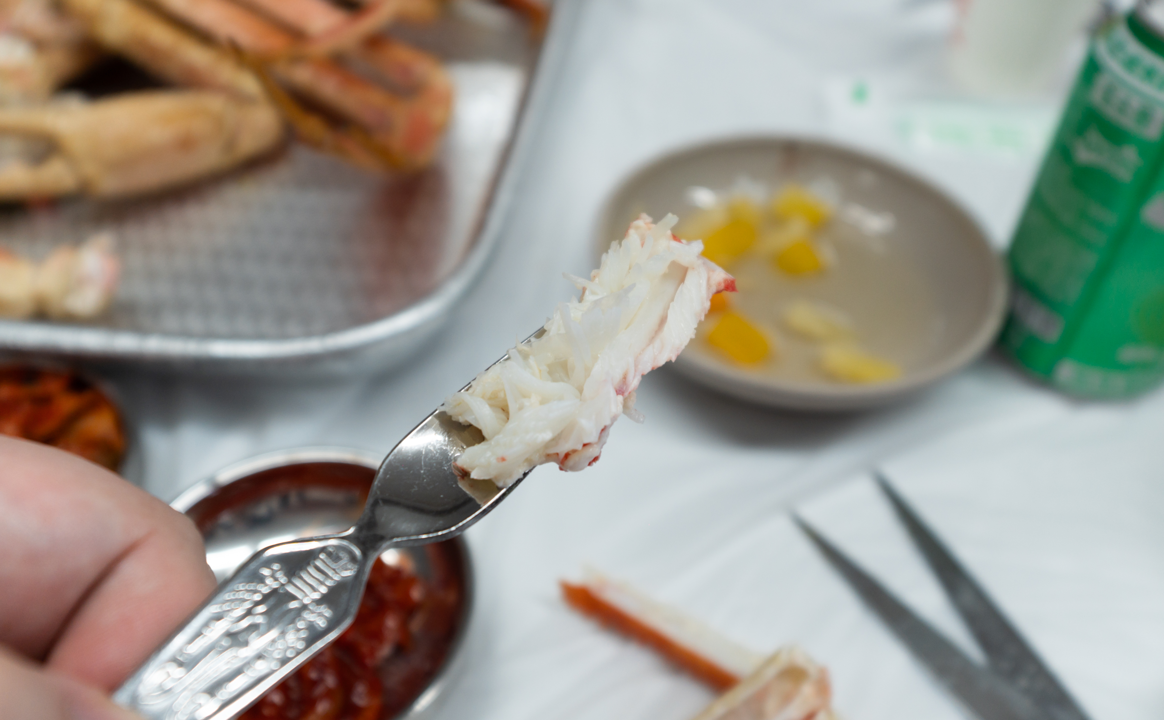 저희가 주문한 대게는 총 7마리. 원래는 손질하는 것은 빼고 먹고 있었는데, 가위가 좀 많이 약하고 부실해서 먹기가 쉽지 않더라고요. 그래서 결국에 가게 사장님한테 손질을 부탁드렸습니다.
