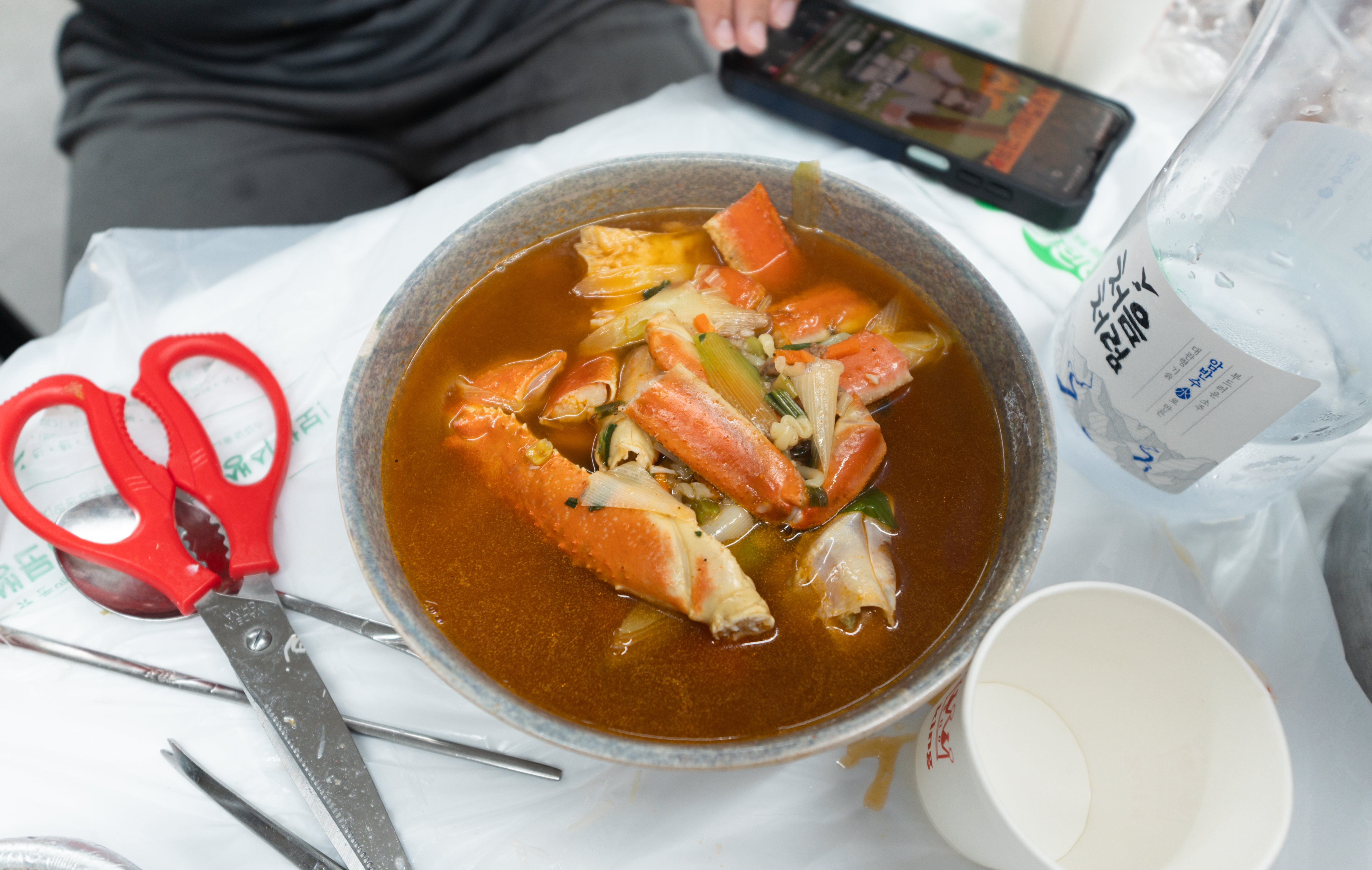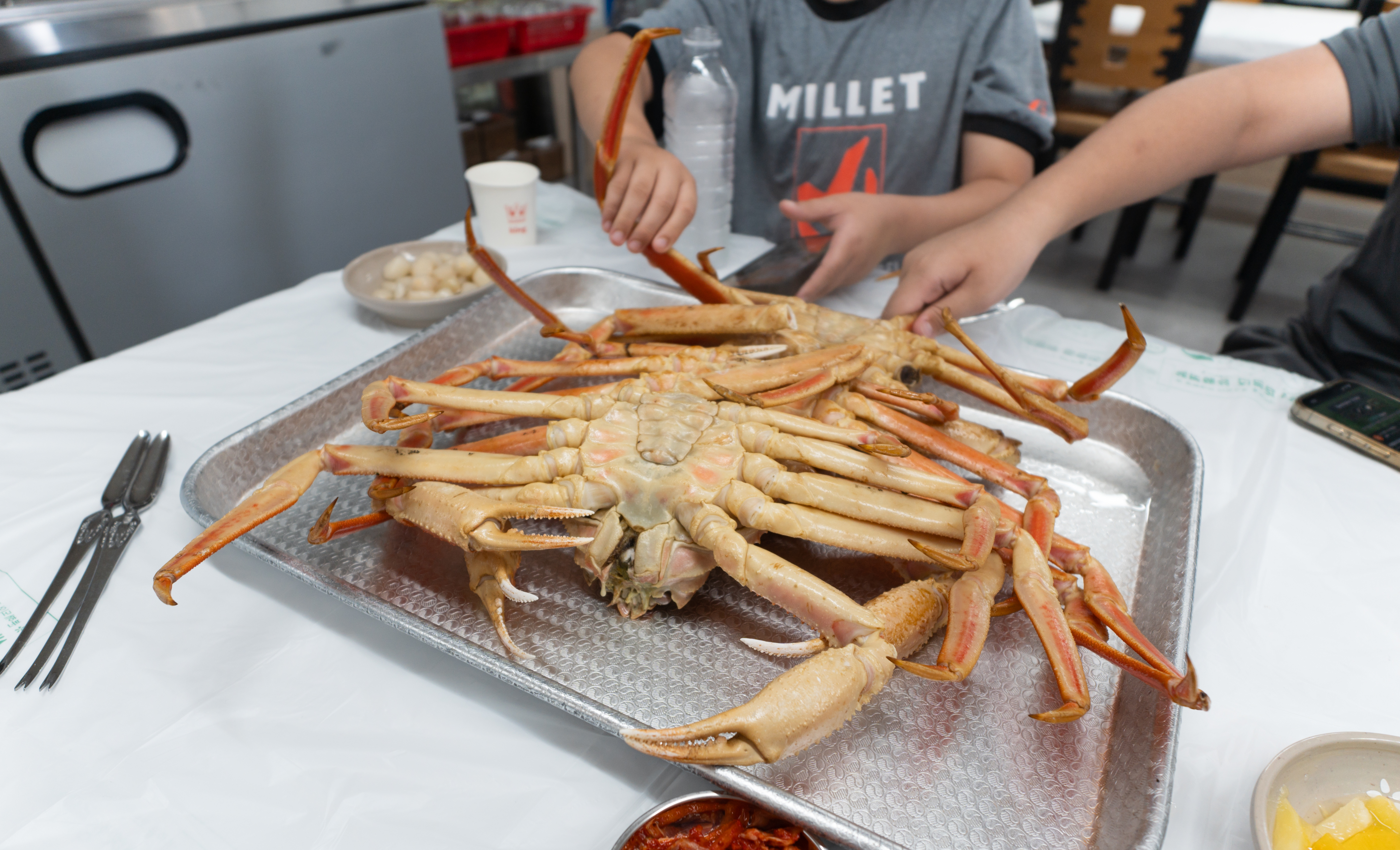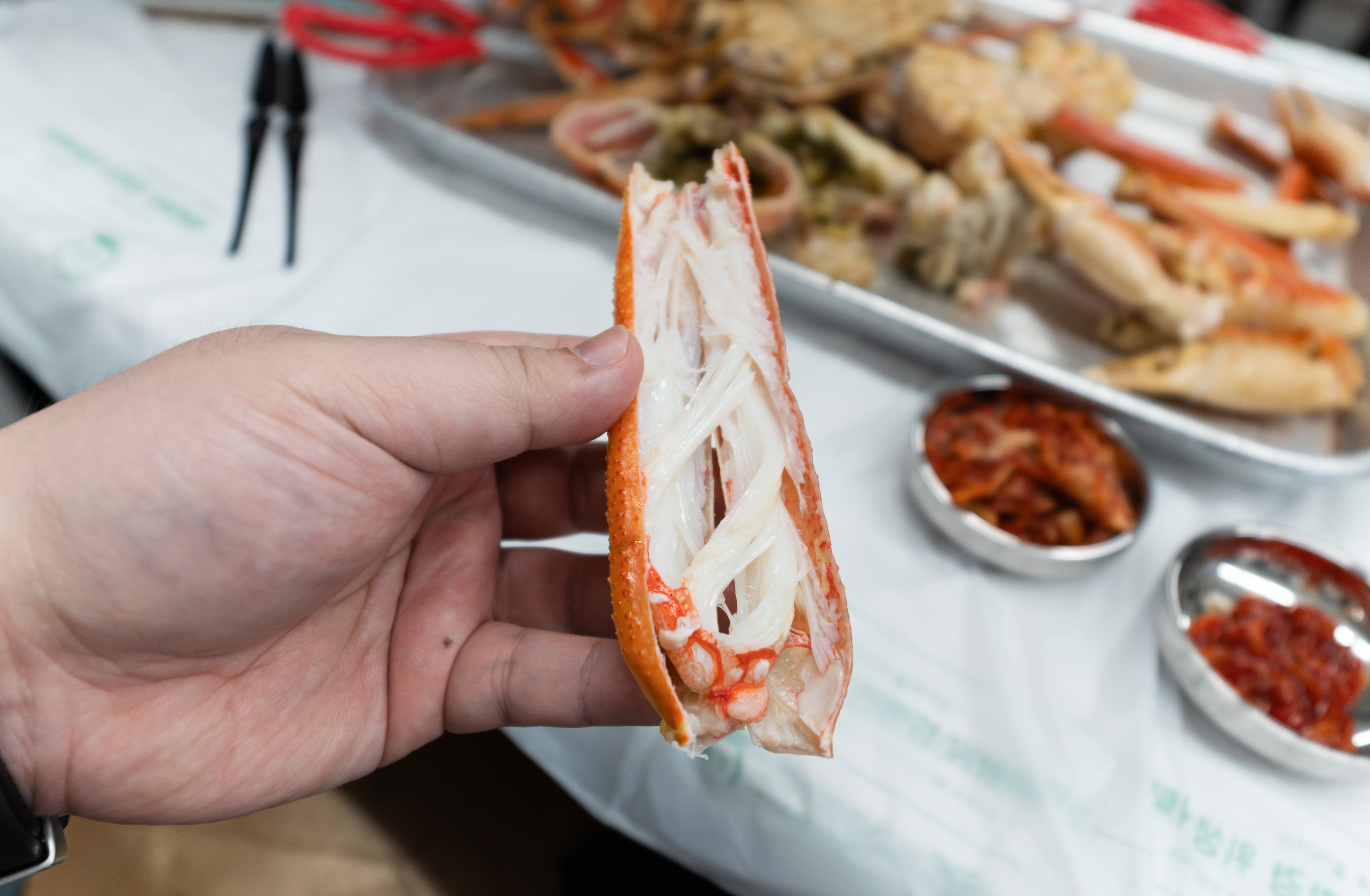 저희가 주문한 대게는 총 7마리. 원래는 손질하는 것은 빼고 먹고 있었는데, 가위가 좀 많이 약하고 부실해서 먹기가 쉽지 않더라고요. 그래서 결국에 가게 사장님한테 손질을 부탁드렸습니다.