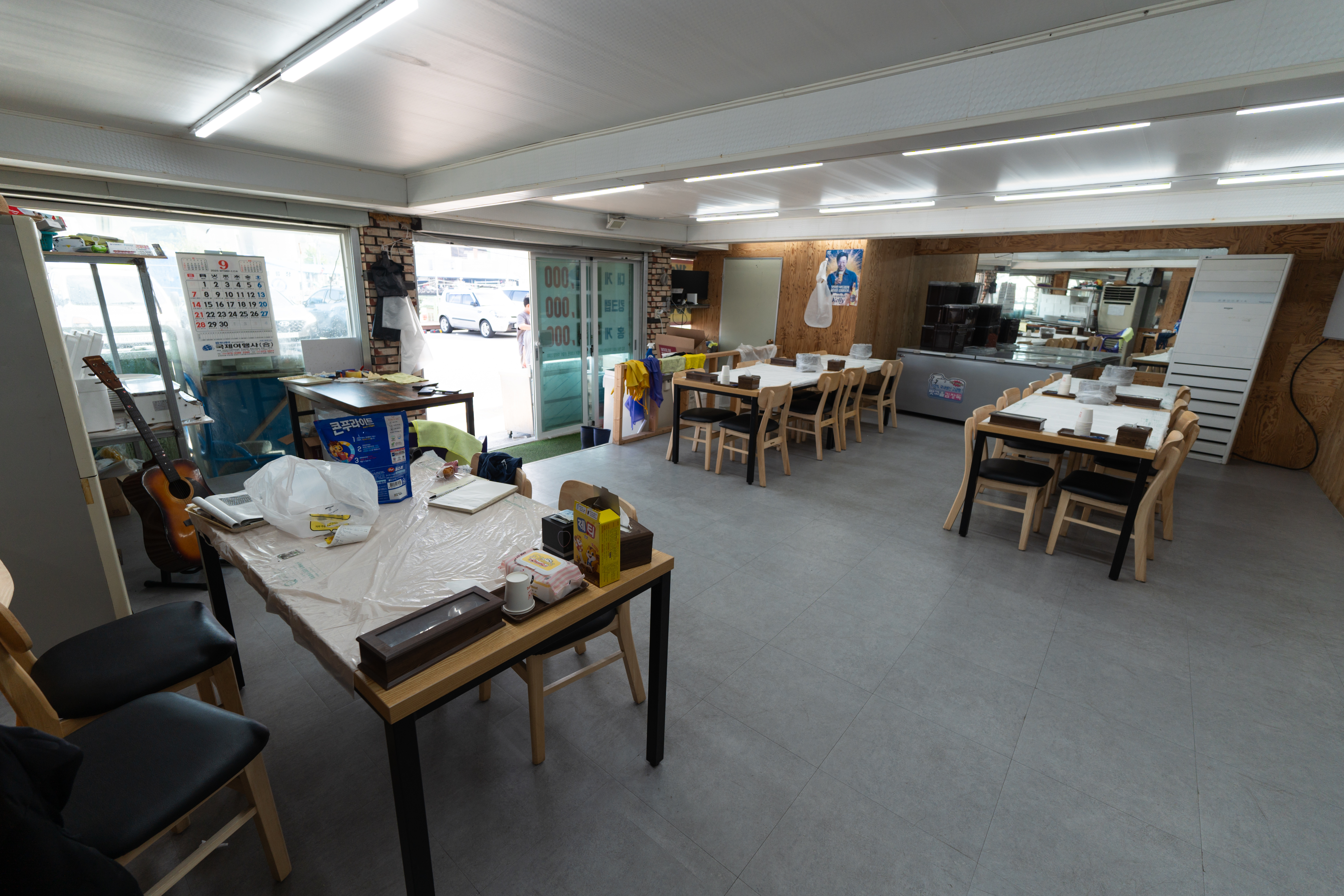 가게 내부의 모습은 위와 같습니다. 깔끔한 분위기이고 위 사진과 같은 공간이 양쪽으로 두 곳이 있었습니다. 반찬은 셀프바에서 직접 가져다 먹을 수 있었는데요. 김치와 젓갈, 후르츠칵테일, 락교 등이 있었습니다.