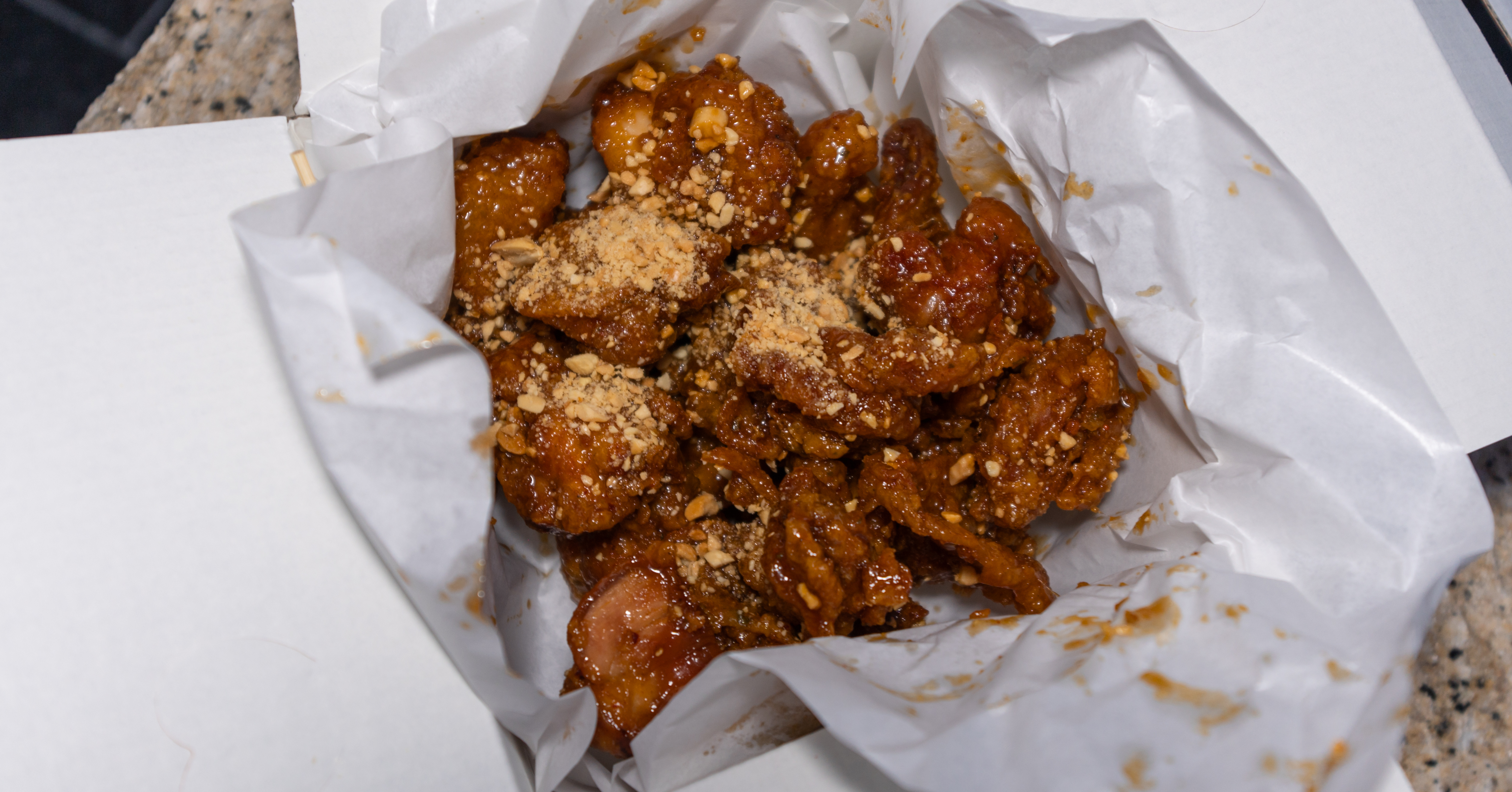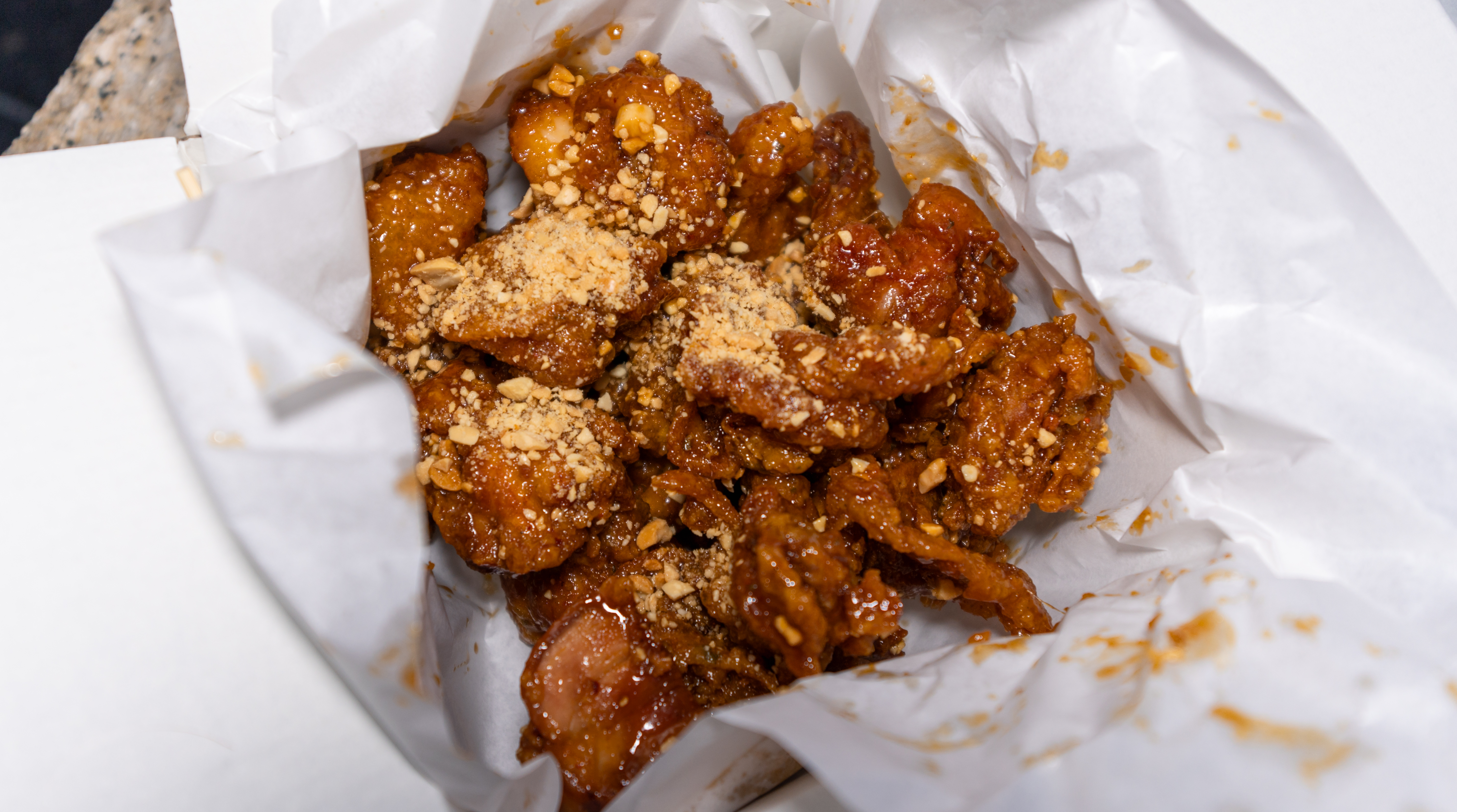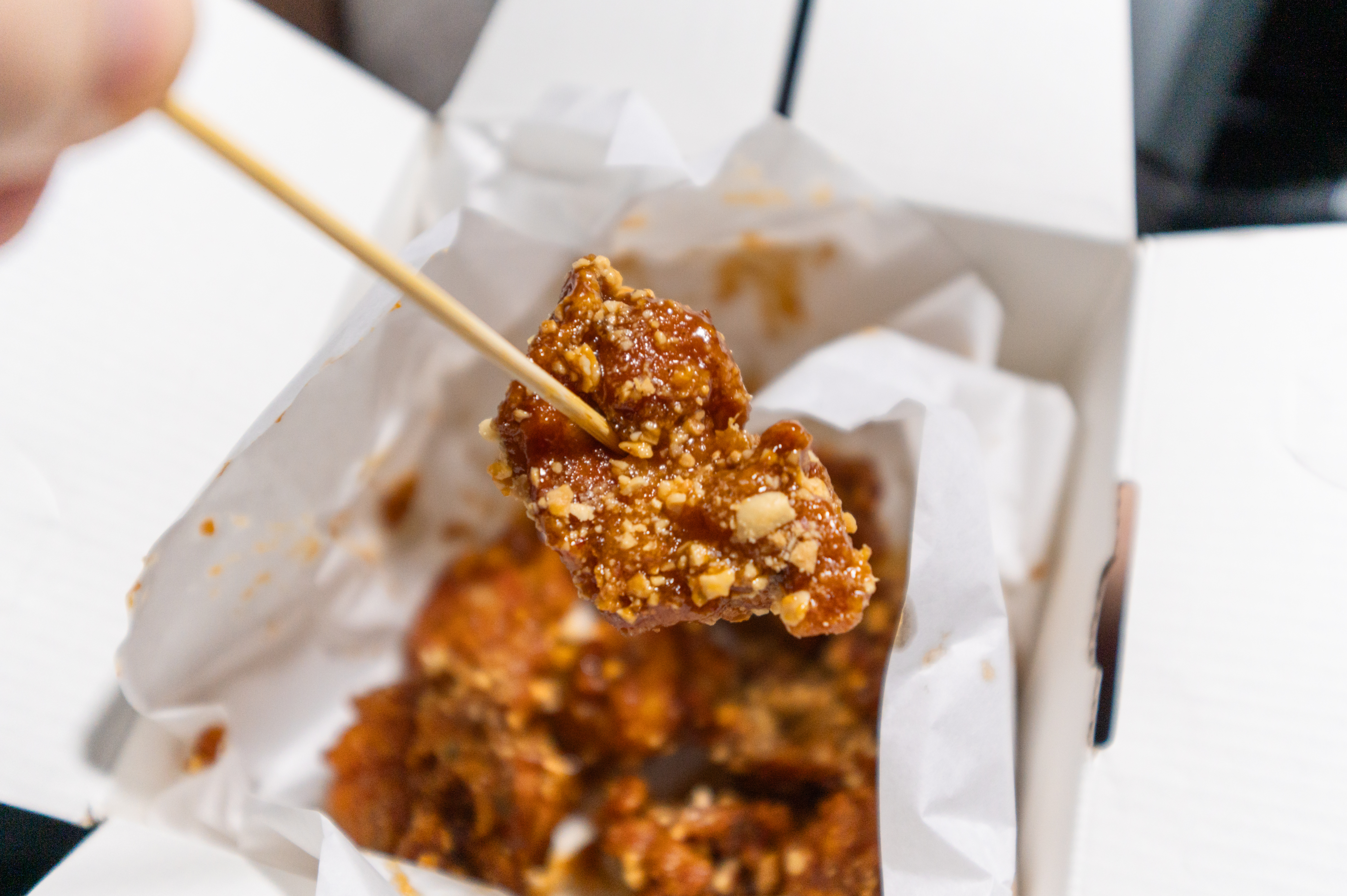 일미닭강정의 매운맛 닭강정은 생각보다 맵기는 조금 있는 편이었습니다. 바삭한 튀김옷에 양념이 잘 배어들어 맛있게 매웠는데, 먹다 보면 살짝 맵기가 세다고 느껴졌습니다.