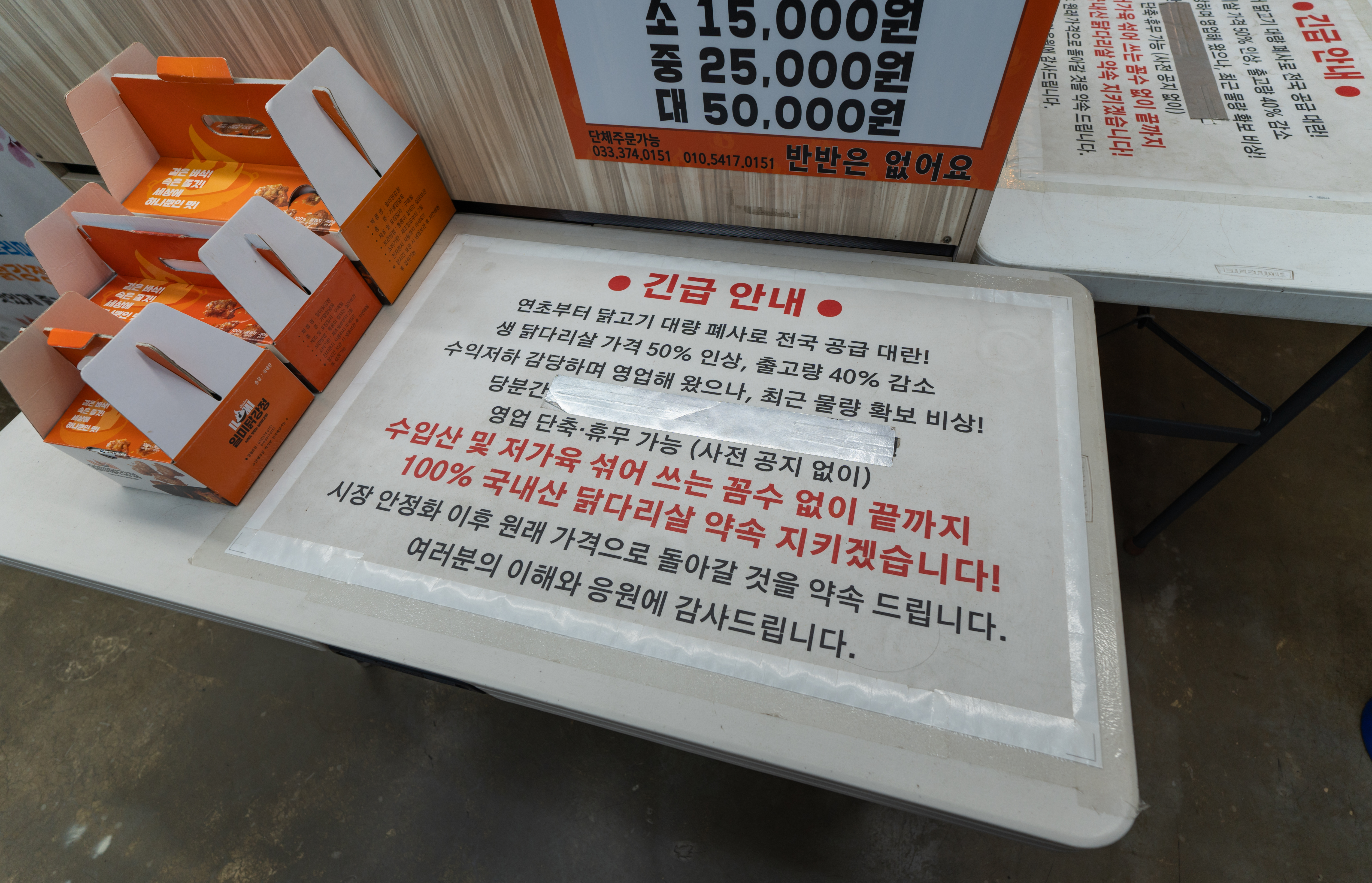 일미닭강정의 메뉴는 매운맛, 순한맛이 있었고, 소, 중, 대로 사이즈가 구분되어 있었습니다. 닭강정의 가격은 15,000-50,000원 사이였습니다.