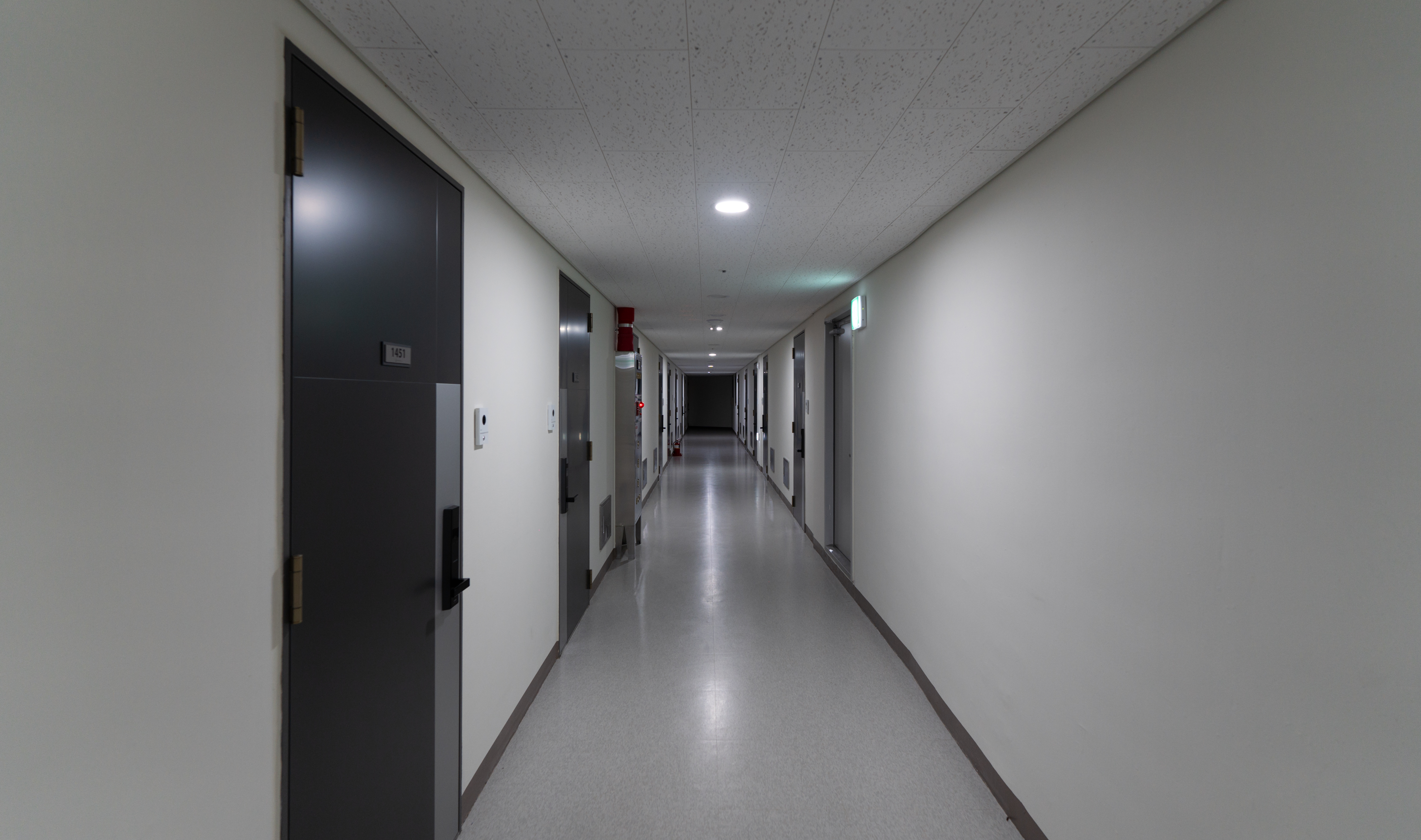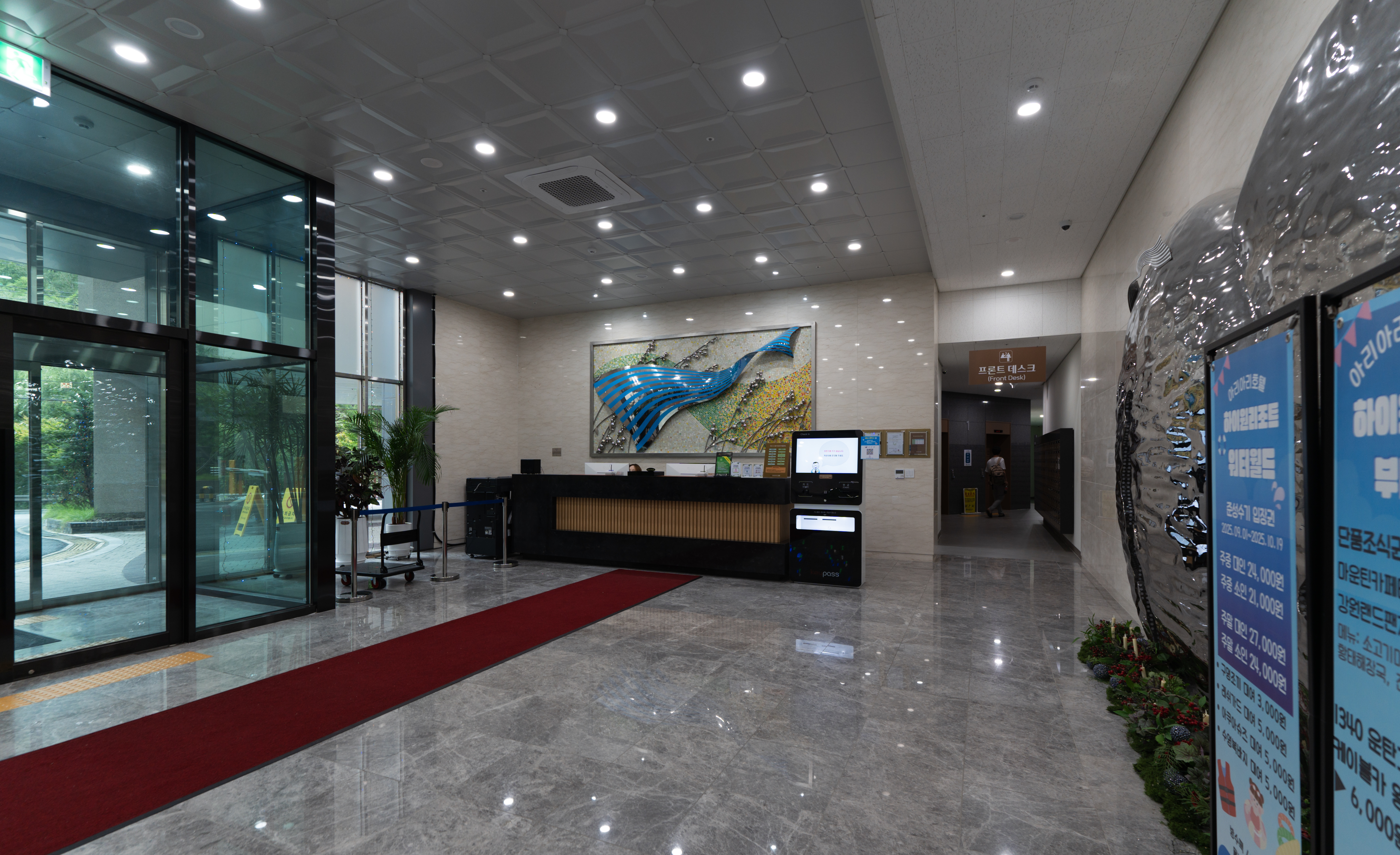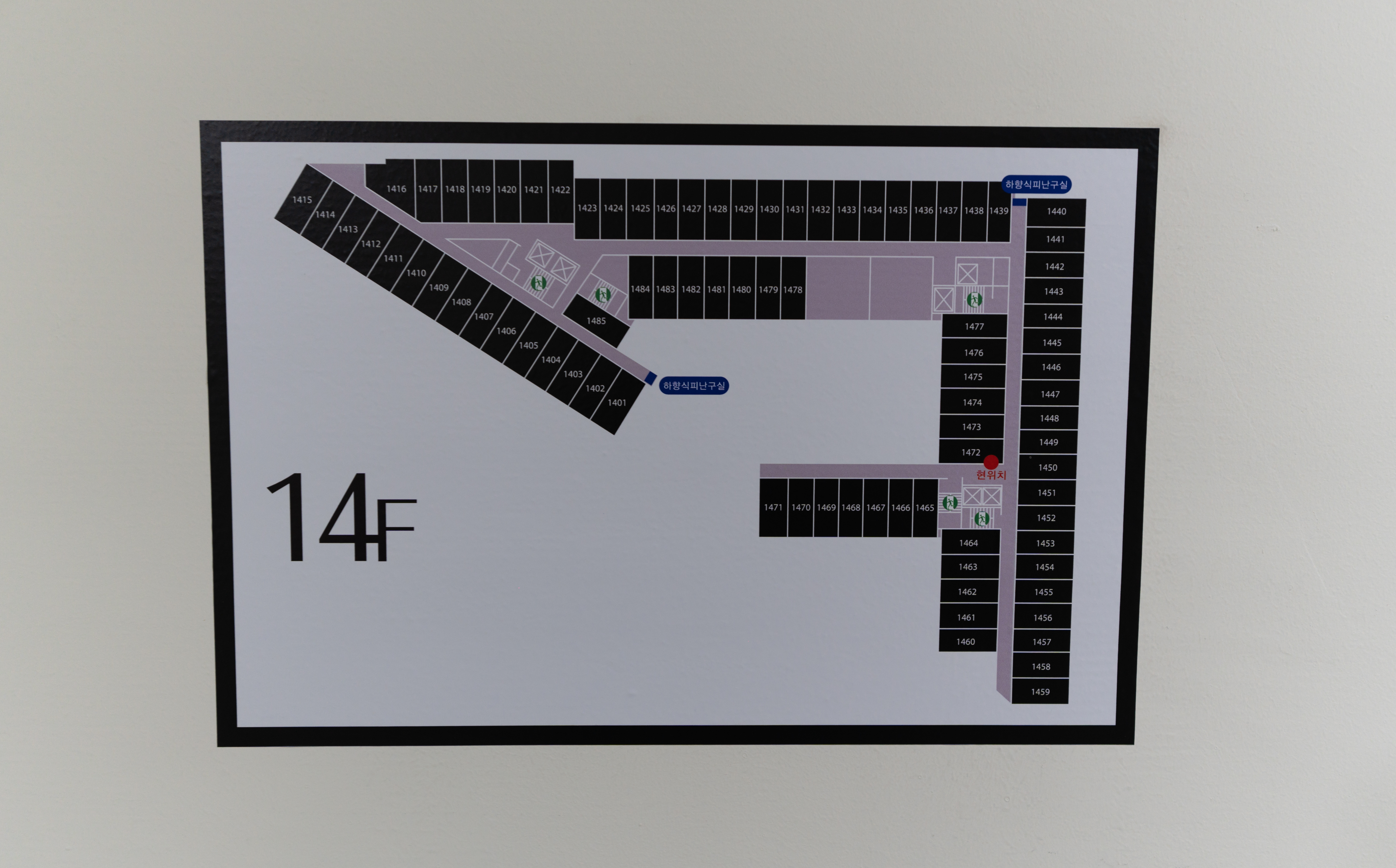 정선 아리아리호텔의 체크인과 체크아웃은 로비의 데스크를 통해 할 수 있었습니다. 오피스텔형 호텔이라 그런지 복도에 객실이 정말 많이 있었고요. 제가 알기론 한 층에 85개의 객실이 있었던 것으로 기억합니다.