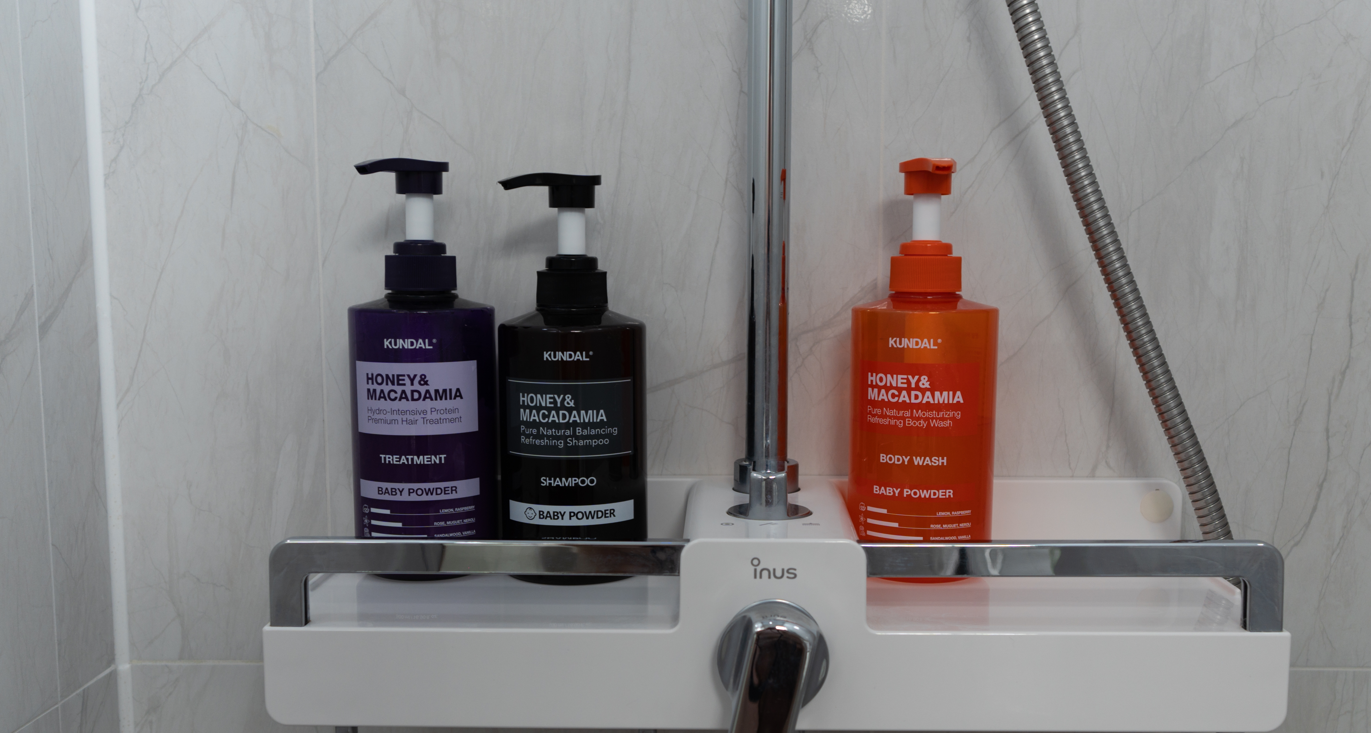 정선 아리아리호텔도 작지만 구색은 다 갖추고 있어서 이용이 편리했습니다. 비데는 없었지만 핸드솝도 있었고, 도톰한 타월에 모든 게 잘 정돈되어 있고 깔끔해서 좋더라고요. 당연하게도 샤워시설도 깔끔해서 좋았고, 쿤달(KUNDAL) 제품의 샴푸와 바디워시, 트리트먼트를 제공하고 있었는데, 향이 좋아서 만족하며 이용했습니다.