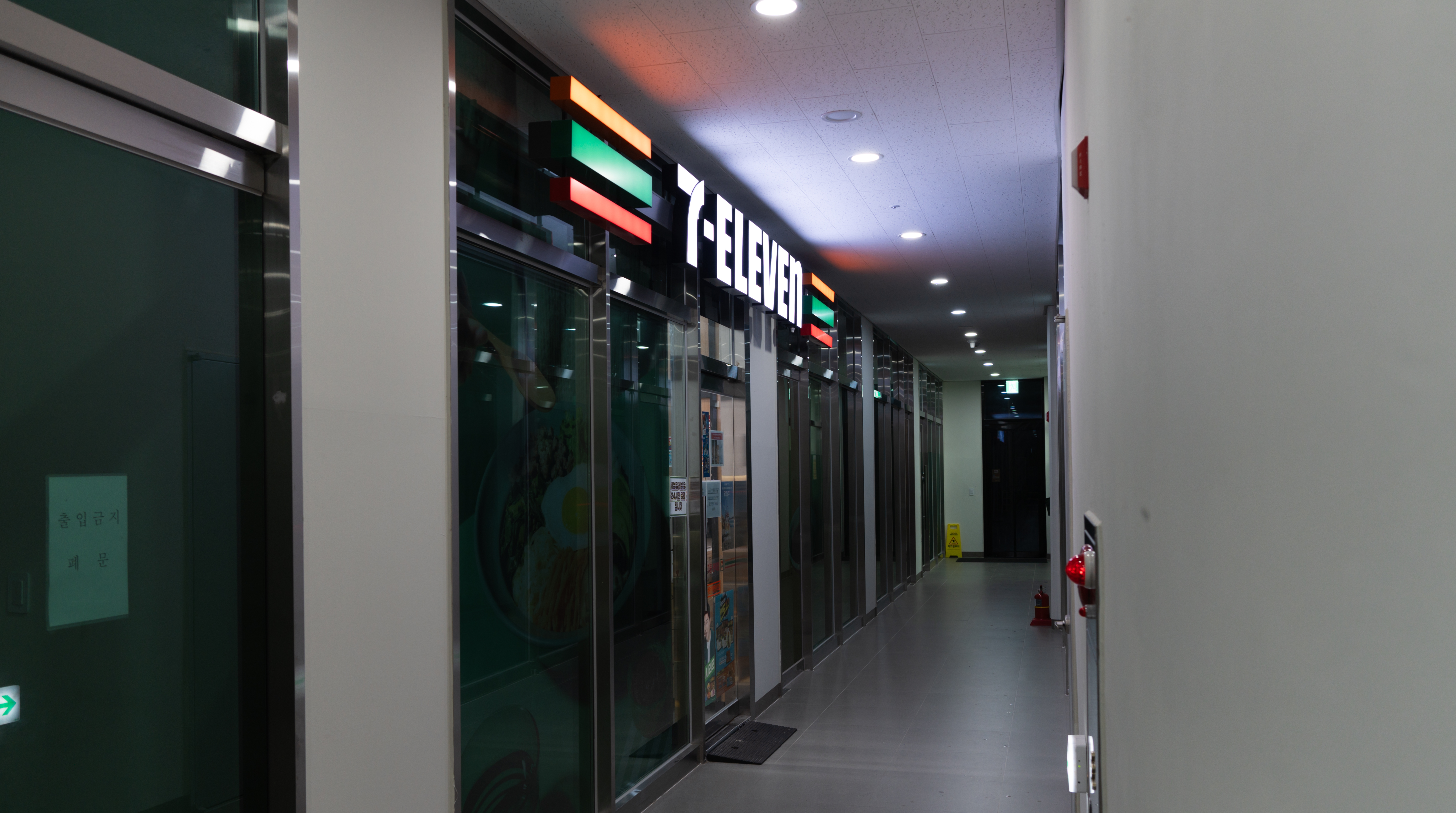 특히, 1층에는 규모도 크고 정말 다양한 상품들이 진열된 세븐일레븐 편의점이 있어서, 저녁에 간단한 식사거리나 야식을 구입하기에도 부족하지 않았습니다. 저도 이곳에서 간식을 구입해서 객실에서 먹었습니다.