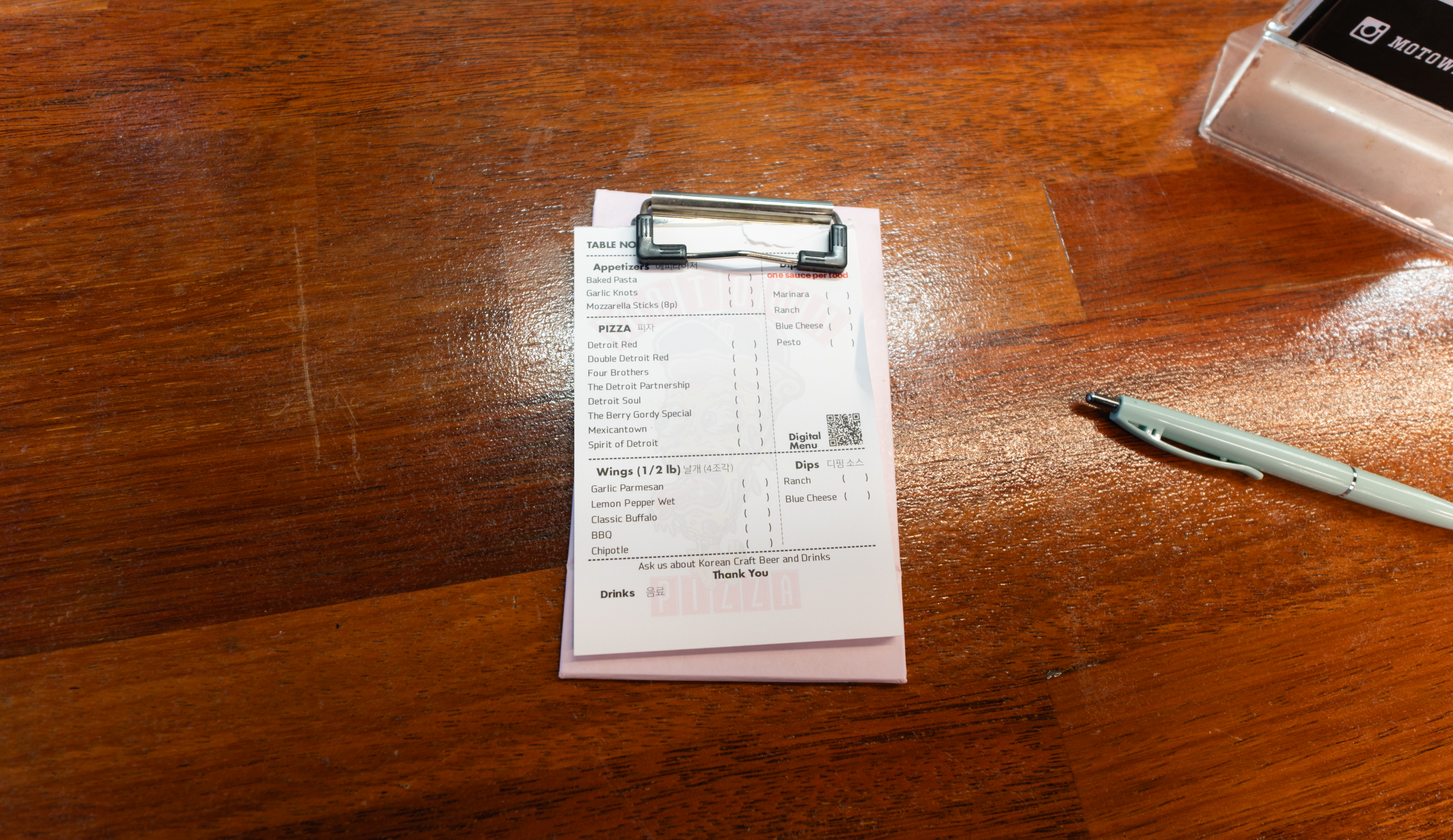 ✓ 저는 디트로이트레드(페퍼로니피자)와 코카콜라를 주문했습니다.