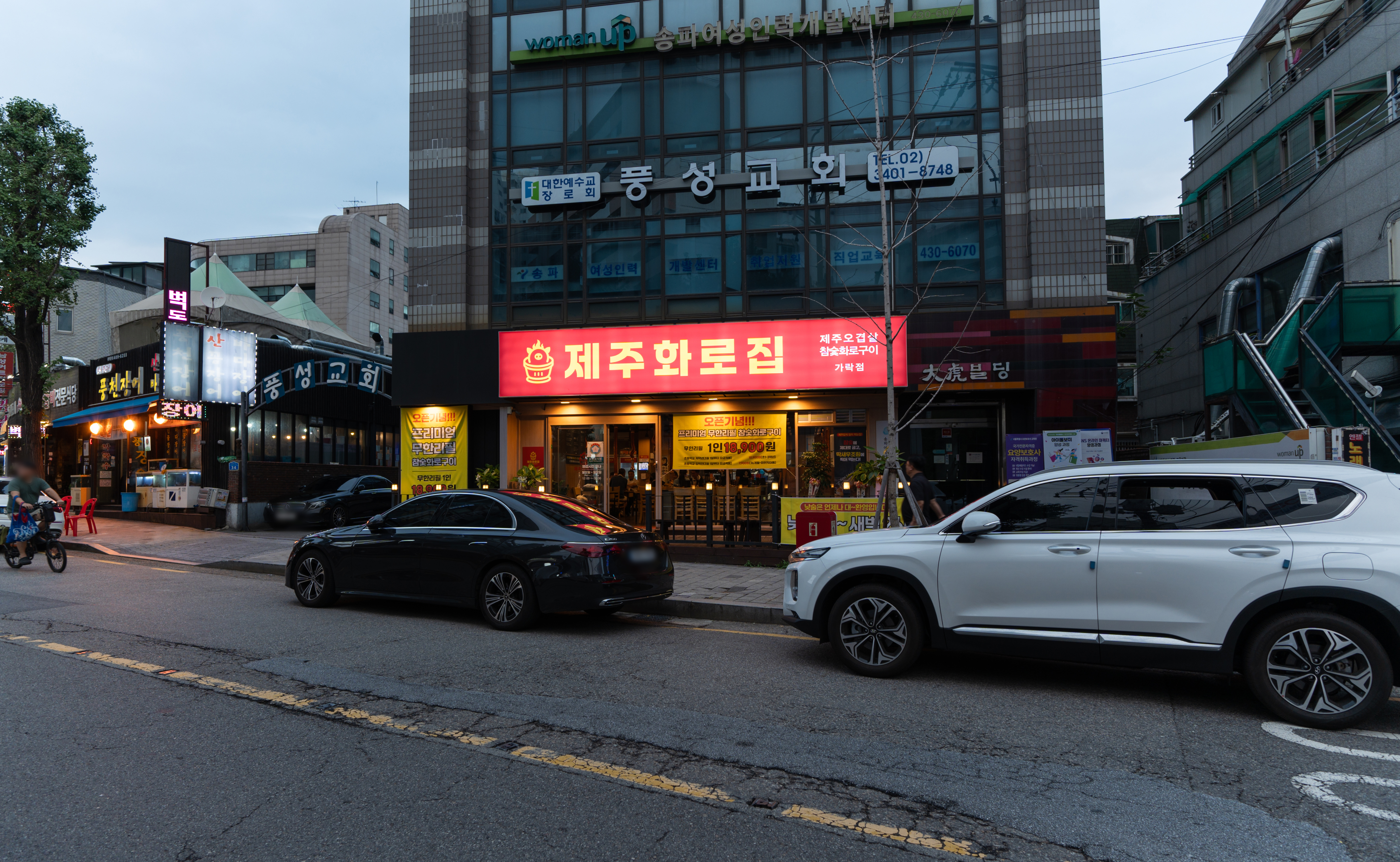 제주화로집 가락점은 서울 송파구 가락동 83-7, 1층 에 위치해 있었습니다. 영업시간은 12:00-02:00 까지였고, 휴무일 없이 운영하는 듯하더라고요. 주차는 가게 옆 주차장에 하면 되었으나, 약간 협소하여 대중교통 이용을 추천드립니다.