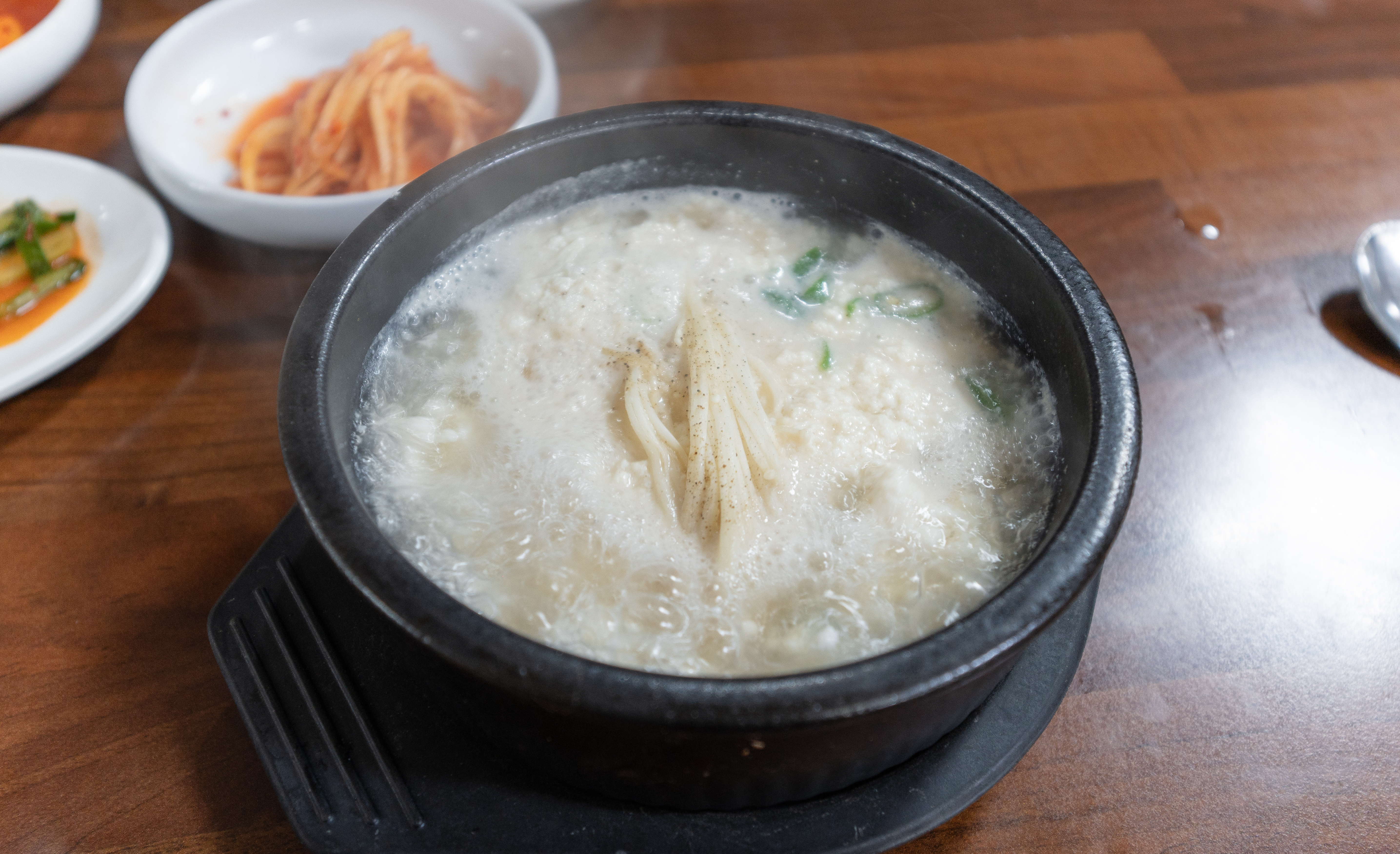 순두부새우젓찌개의 맛은 살짝 칼칼하면서 새우젓으로 간을 해서 깔끔하면서도 담백한 맛이 있었습니다. 간이 세지 않았지만, 순두부의 고소함이 있어서 나이 드신 분들도 부담 없이 먹을 수 있었습니다.