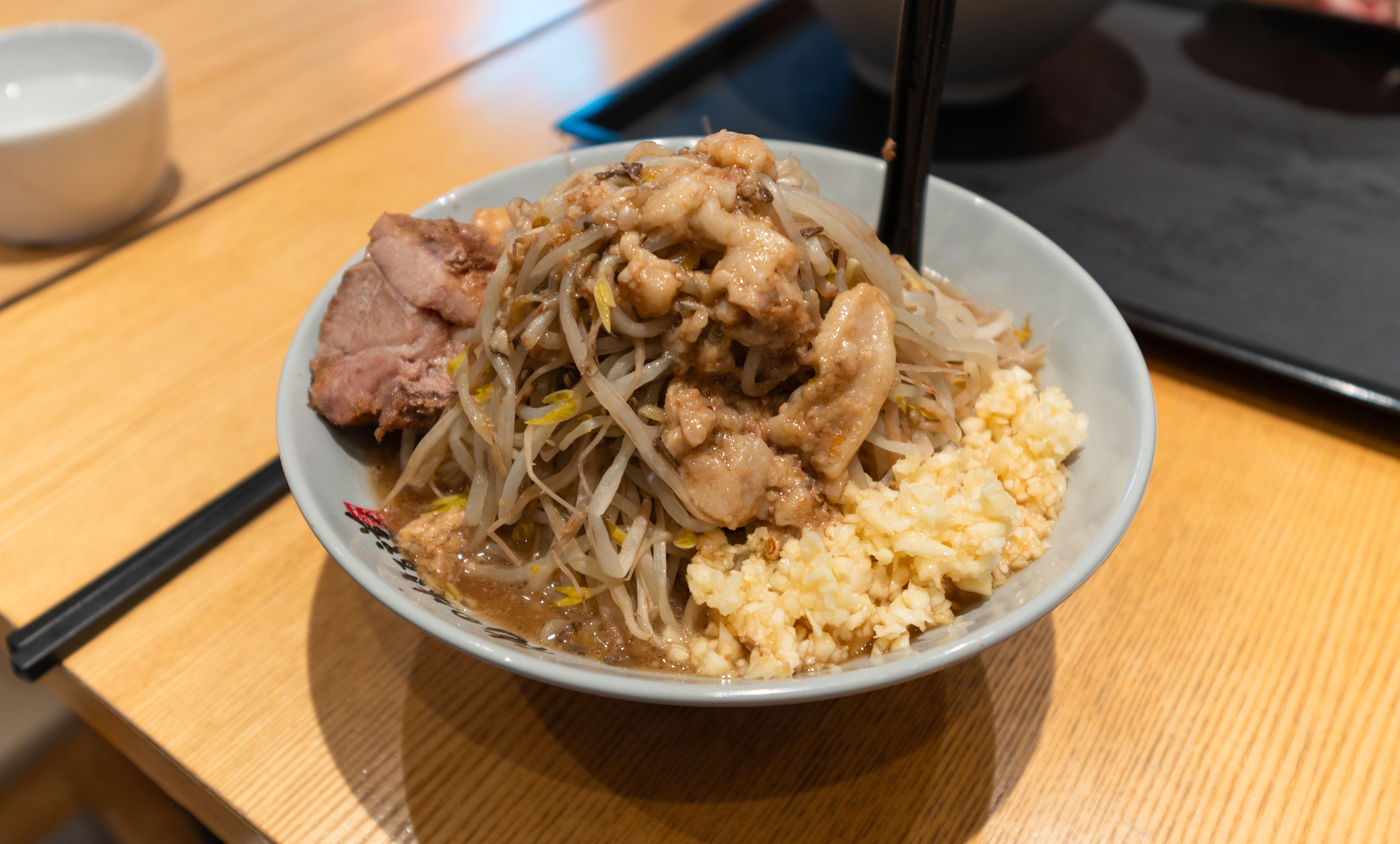 진동벨을 받아 기다리고 있는데, 곧이어 주문한 라멘이 나왔습니다. 오레노이키루미치의 라멘은 제가 일본에서 먹었던 라멘 후쿠로(링크)와도 비슷한 느낌이 있었습니다. 과연 '일본에서 먹었던 지로계라멘의 느낌을 제대로 낼 것인가?' 궁금하더라고요.