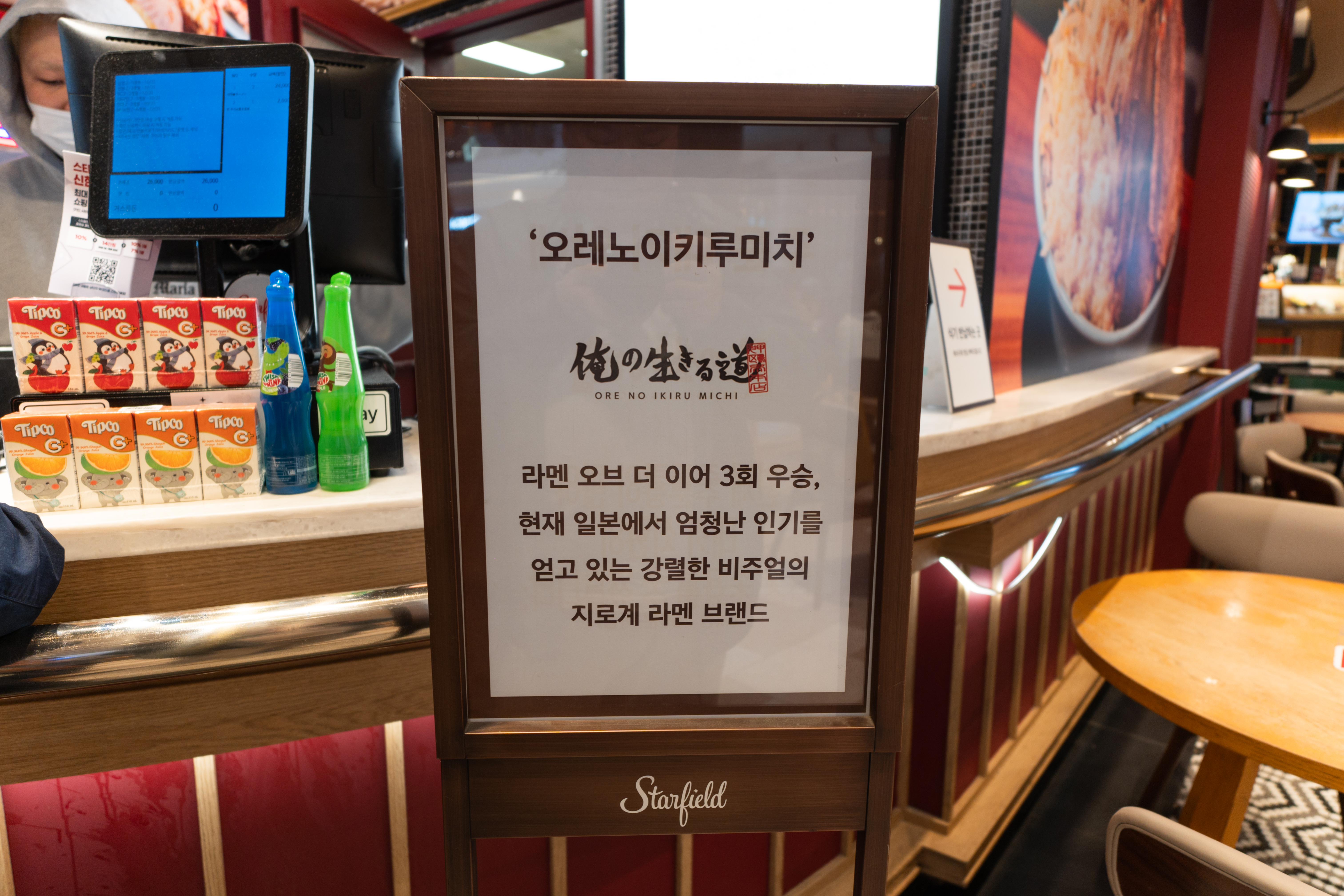 그렇게 발견한 곳은 스타필드 3층 푸드코트(잇토피아)에 위치한 '오레노이키루미치'. 오레노이키루미치는 압구정에 본점을 두고 있는 라멘집으로, 정통 일본식 지로계 라멘을 판매하는 맛집이었습니다.