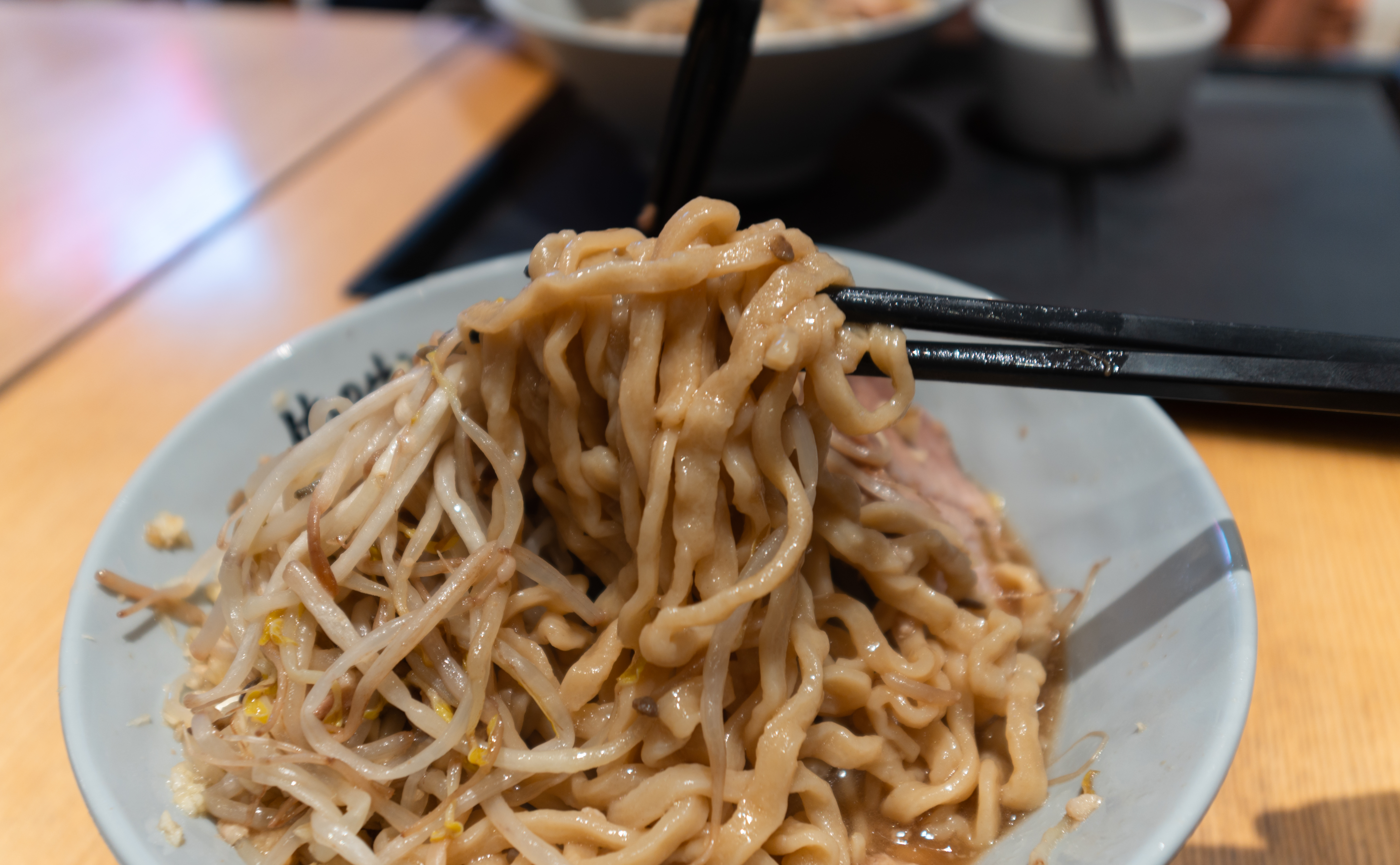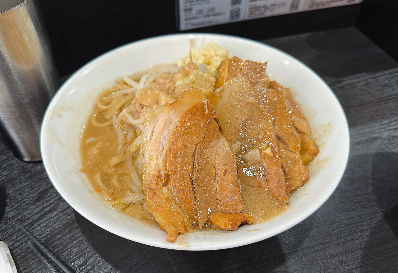 진동벨을 받아 기다리고 있는데, 곧이어 주문한 라멘이 나왔습니다. 오레노이키루미치의 라멘은 제가 일본에서 먹었던 라멘 후쿠로(링크)와도 비슷한 느낌이 있었습니다. 과연 '일본에서 먹었던 지로계라멘의 느낌을 제대로 낼 것인가?' 궁금하더라고요.