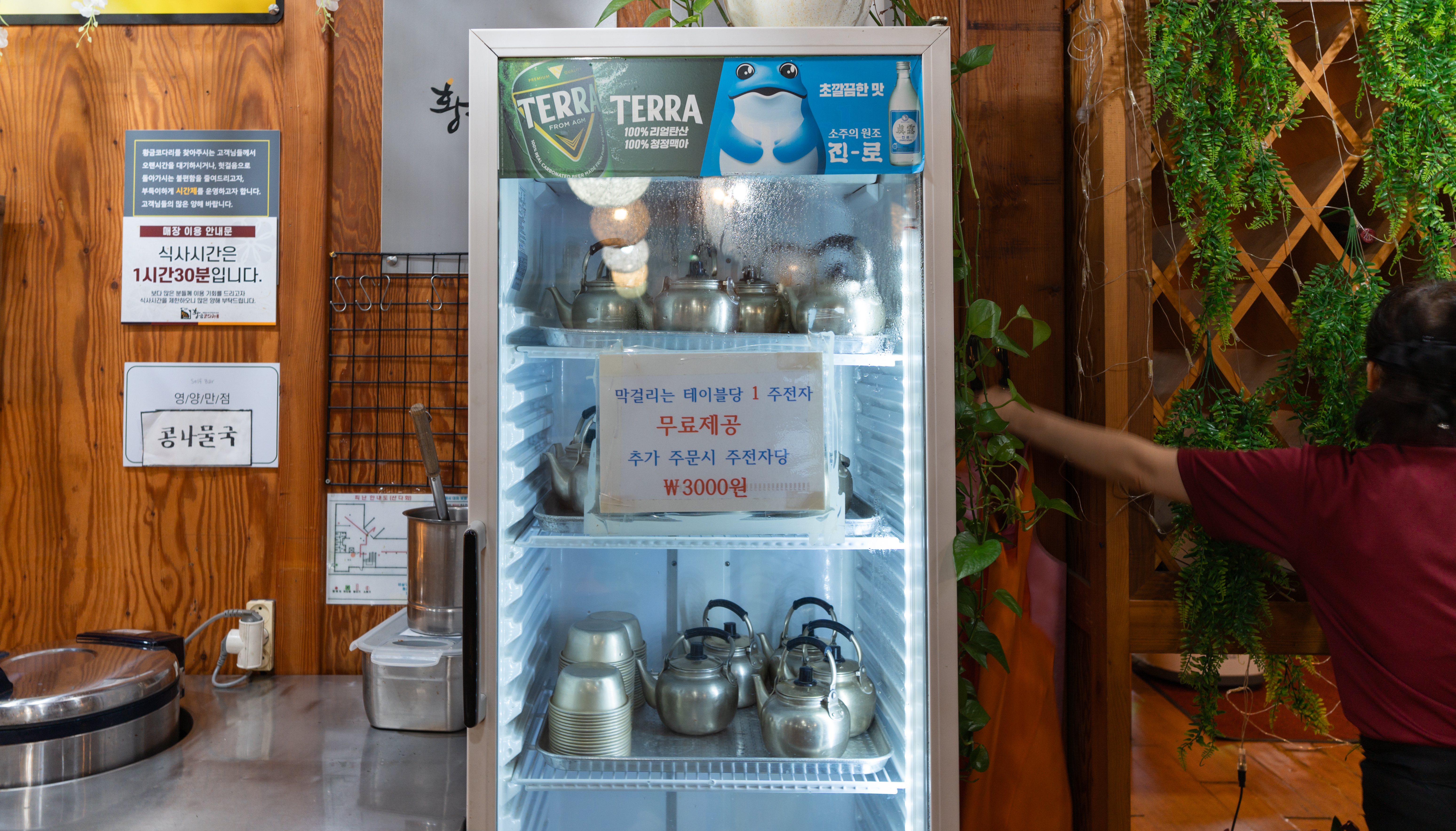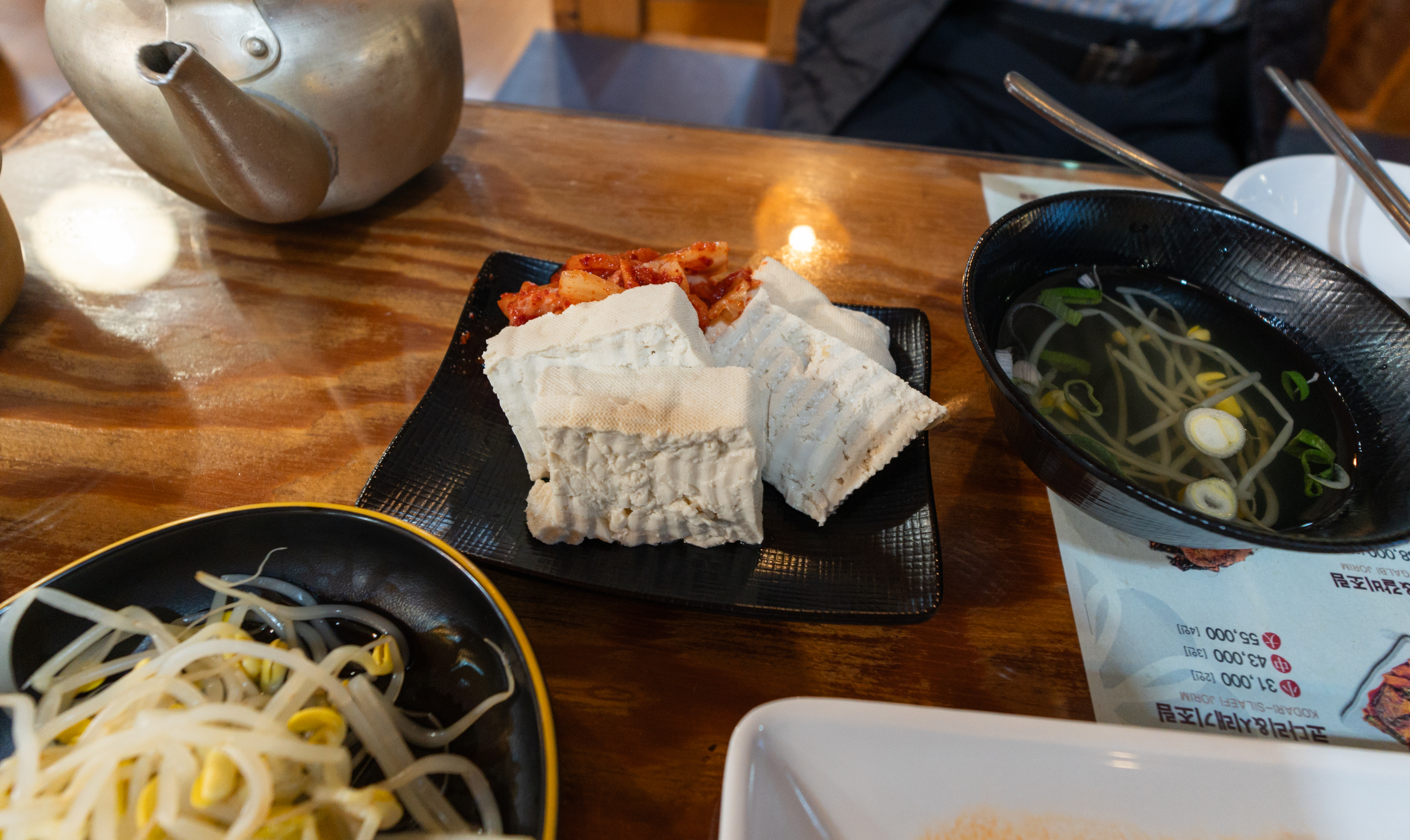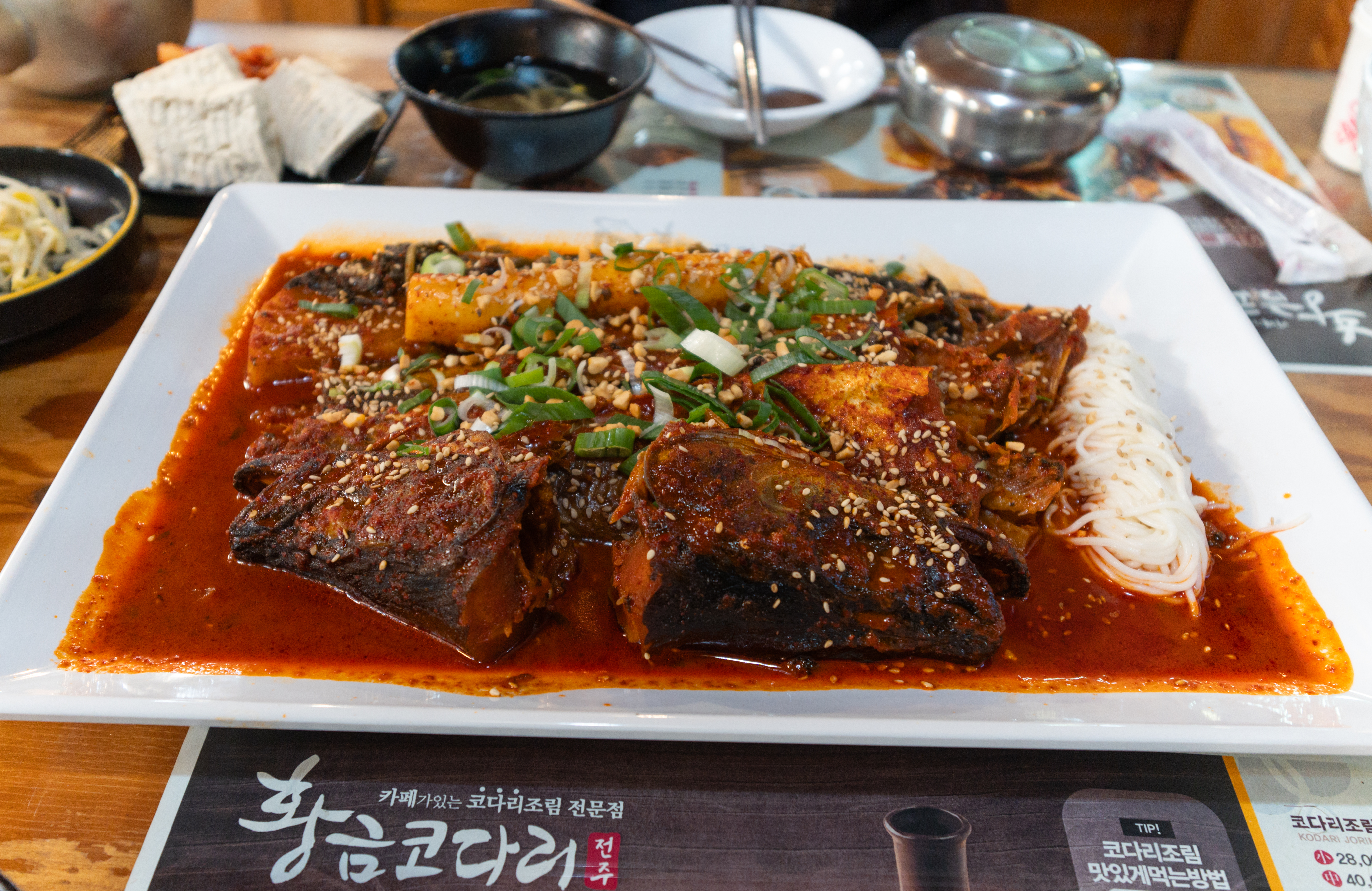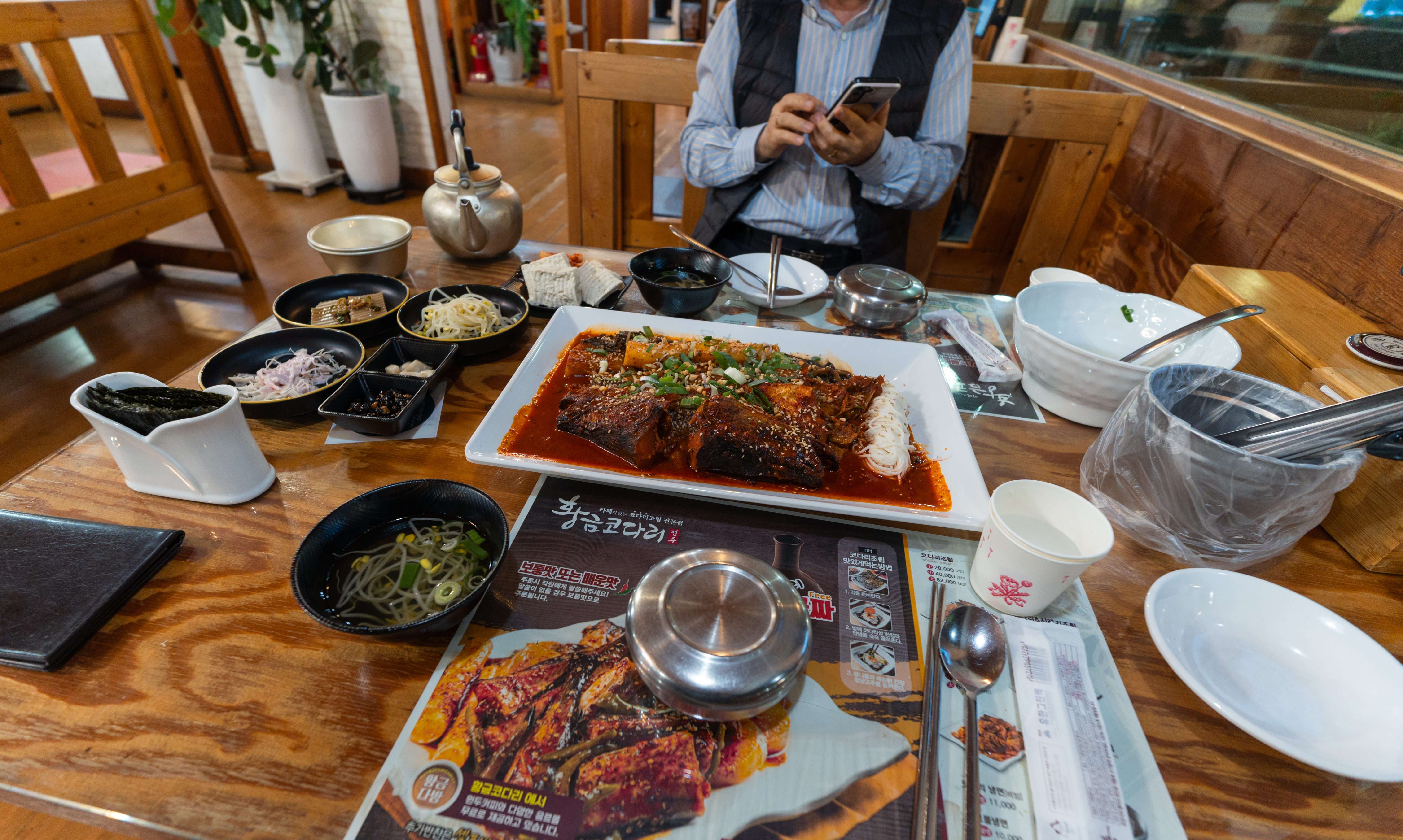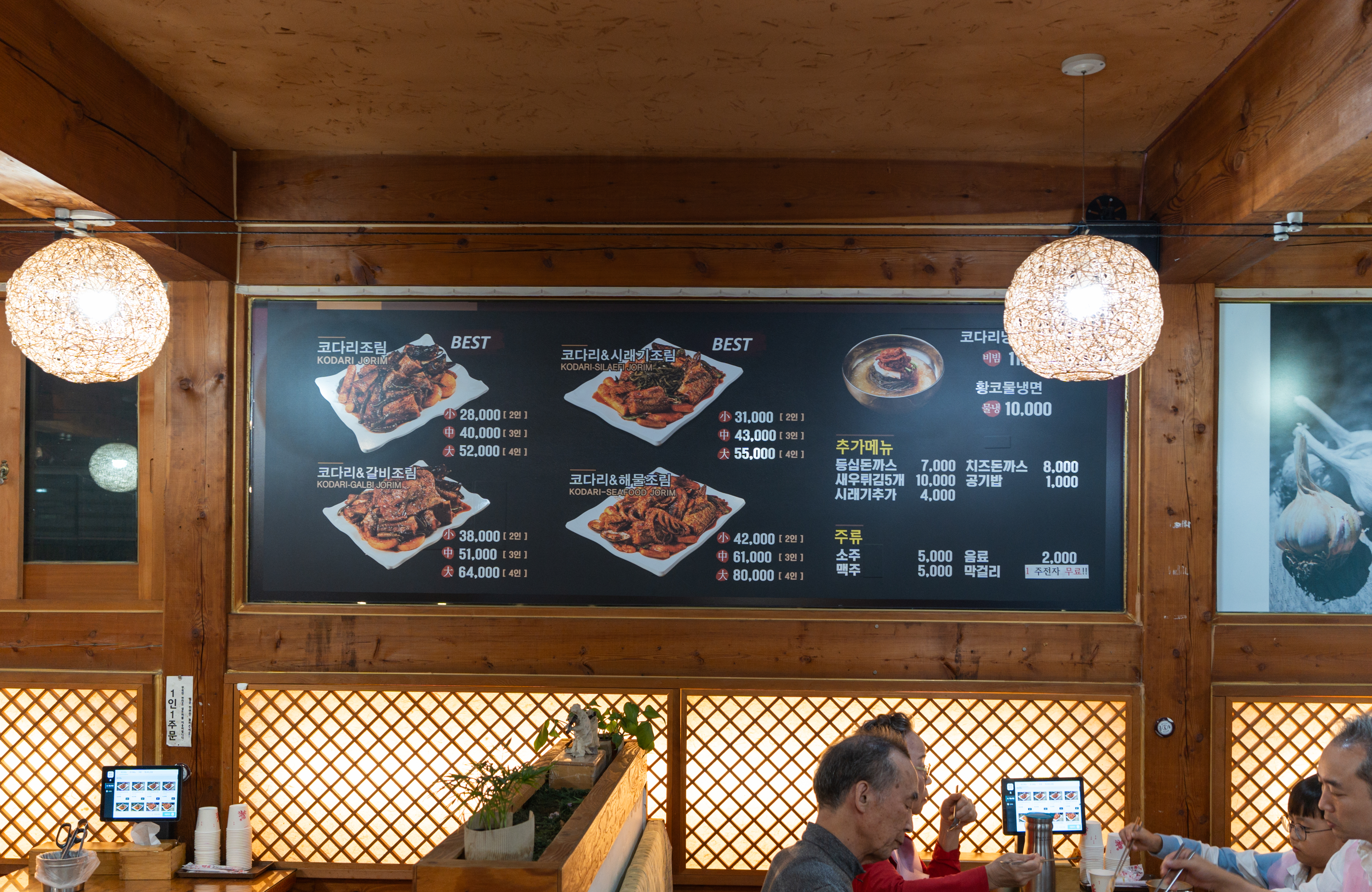 코다리조림의 메뉴는 위와같이 코다리조림에 반찬으로 콩나물, 도토리묵, 콩자반, 샐러드, 김, 두부, 김치 등이 있었습니다. 이곳은 특히 막걸리도 무료로 제공하고 있었는데요,