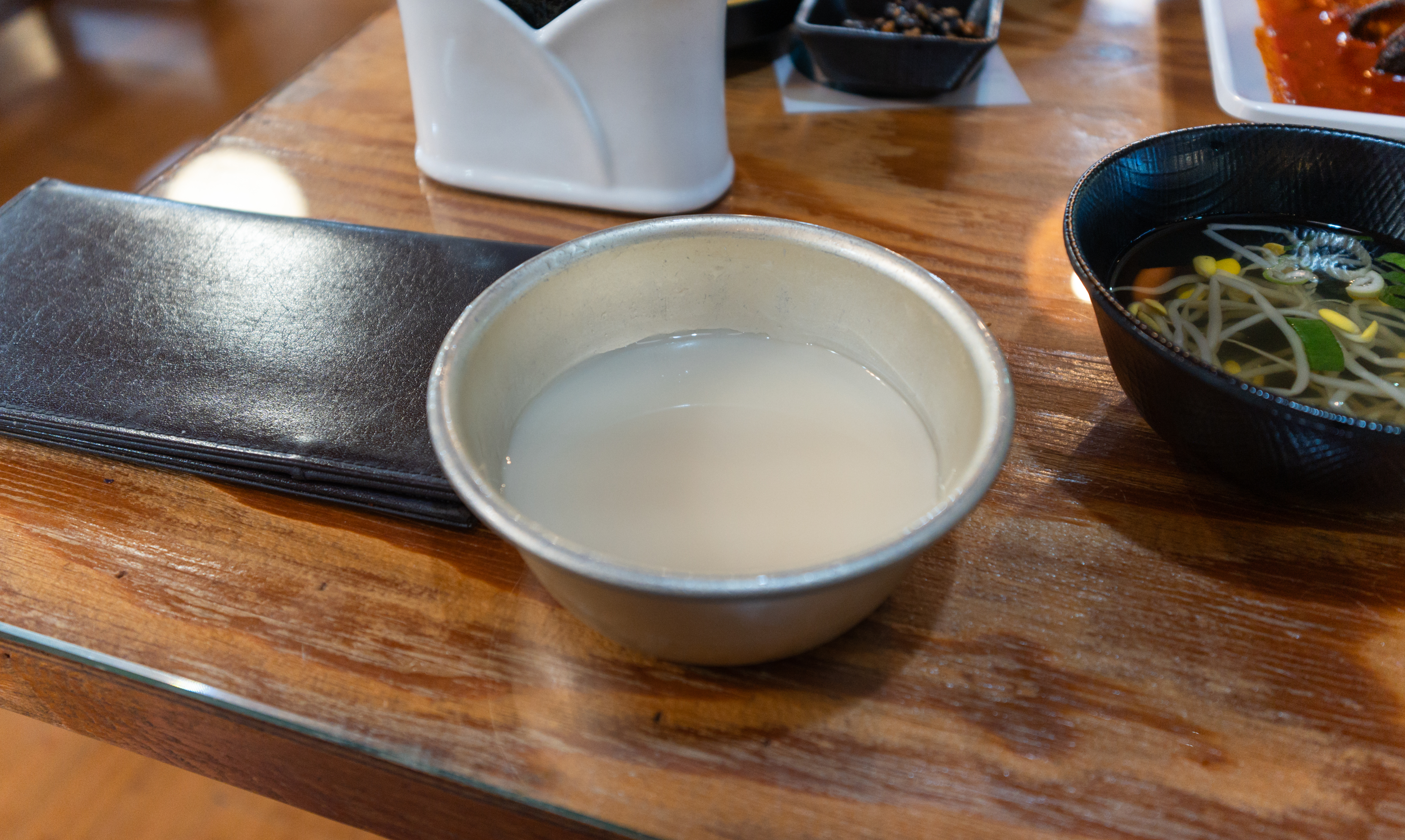 셀프코너에서 막걸리와 두부김치를 가져왔습니다. 막걸리와 두부김치는 처음에 가져다주지 않기 때문에 직접 가져와야 했습니다. 저는 운전을 해야 했기에 막걸리를 사진으로 담기만 하고 마시지는 않았습니다.