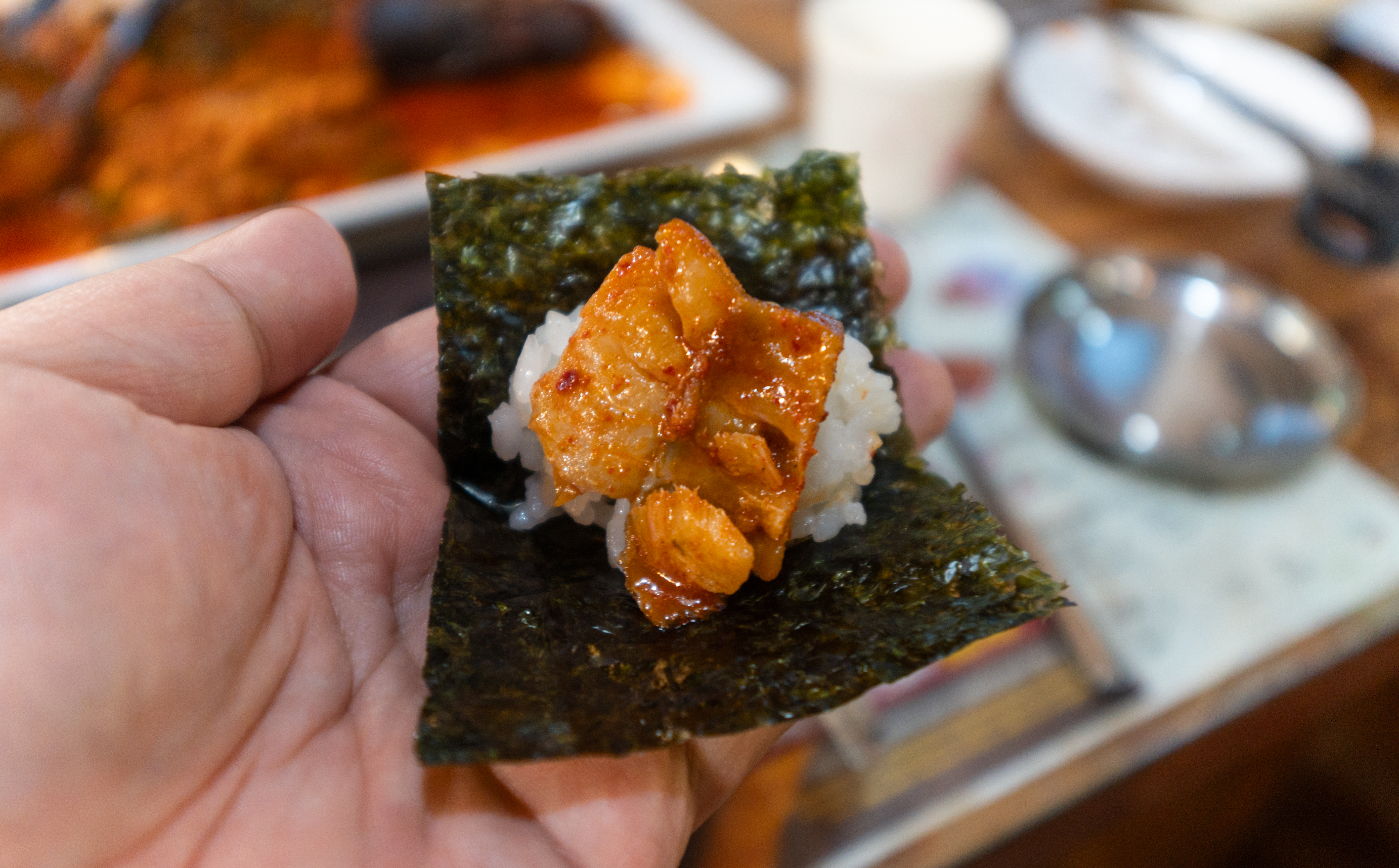 메인 메뉴인 코다리조림에는 떡과 조림무, 시래기가 들어가 고소하면서도 감칠맛이 좋았습니다. 코다리조림 속 명태살은 부드럽고 쫄깃한 식감이 좋았는데요, 양념도 잘 배어있어 계속 손이 가는 메뉴였습니다. 그냥 먹어도 맛있지만, 코다리조림은 김에 싸서 먹으면 더 맛있는 것 같습니다.