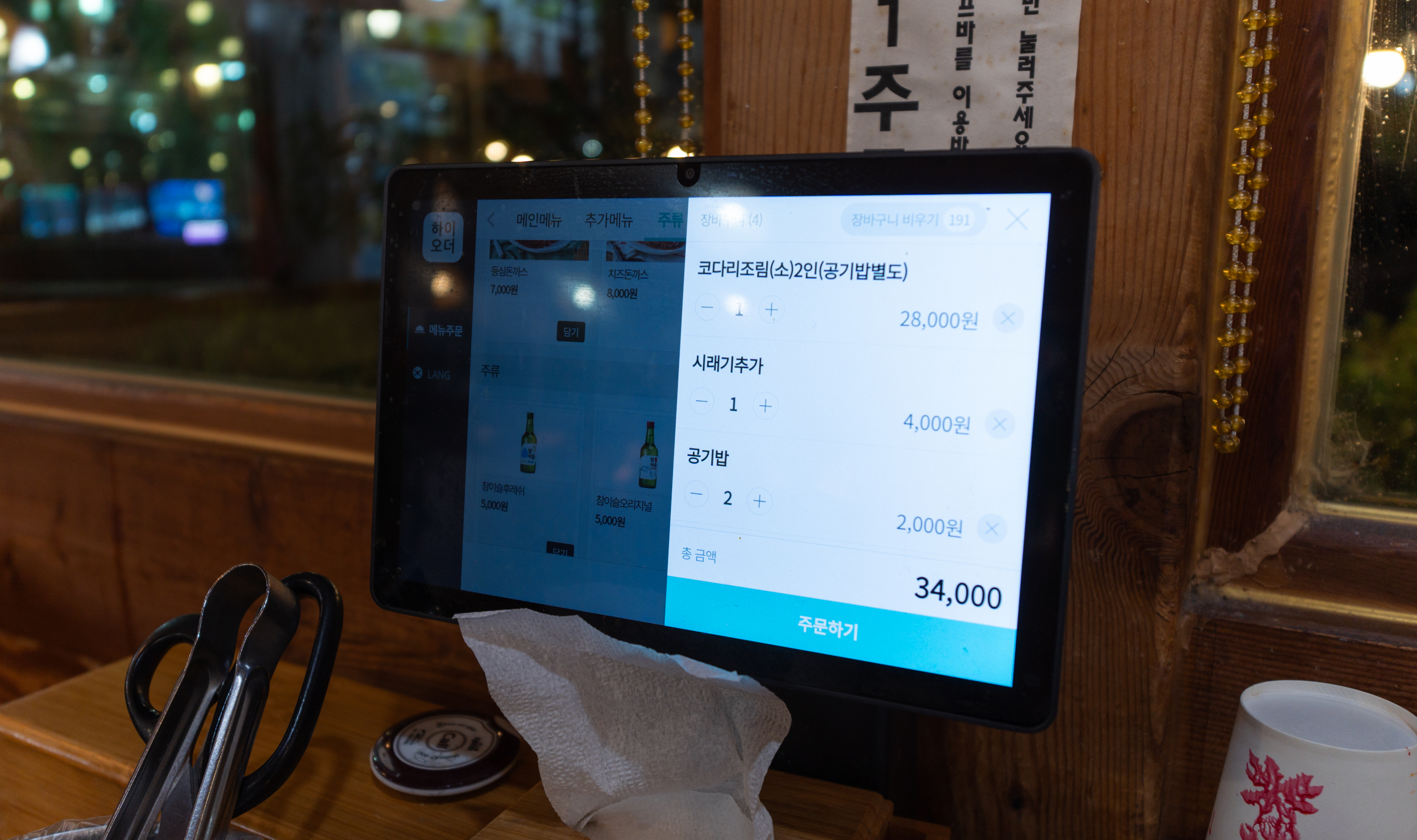 황금코다리의 메뉴는 코다리조림, 코다리&갈비조림, 코다리&시래기조림, 코다리&해물조림, 코다리냉면, 황코물냉면, 등심돈까스, 치즈돈까스, 새우튀김5개, 시래기추가가 있었습니다. 메뉴는 서빙로봇을 통해 자리로 가져다주고 있었습니다.