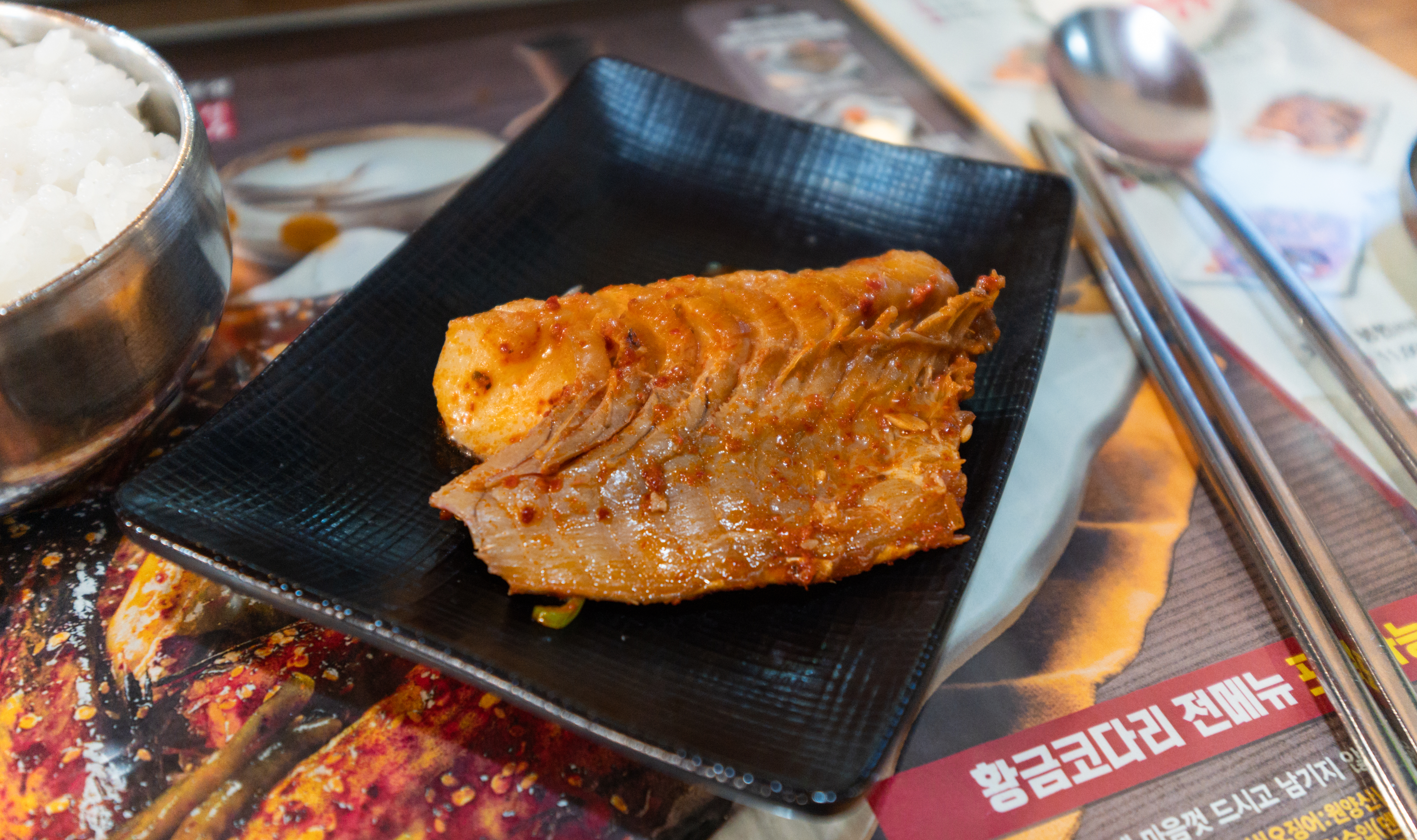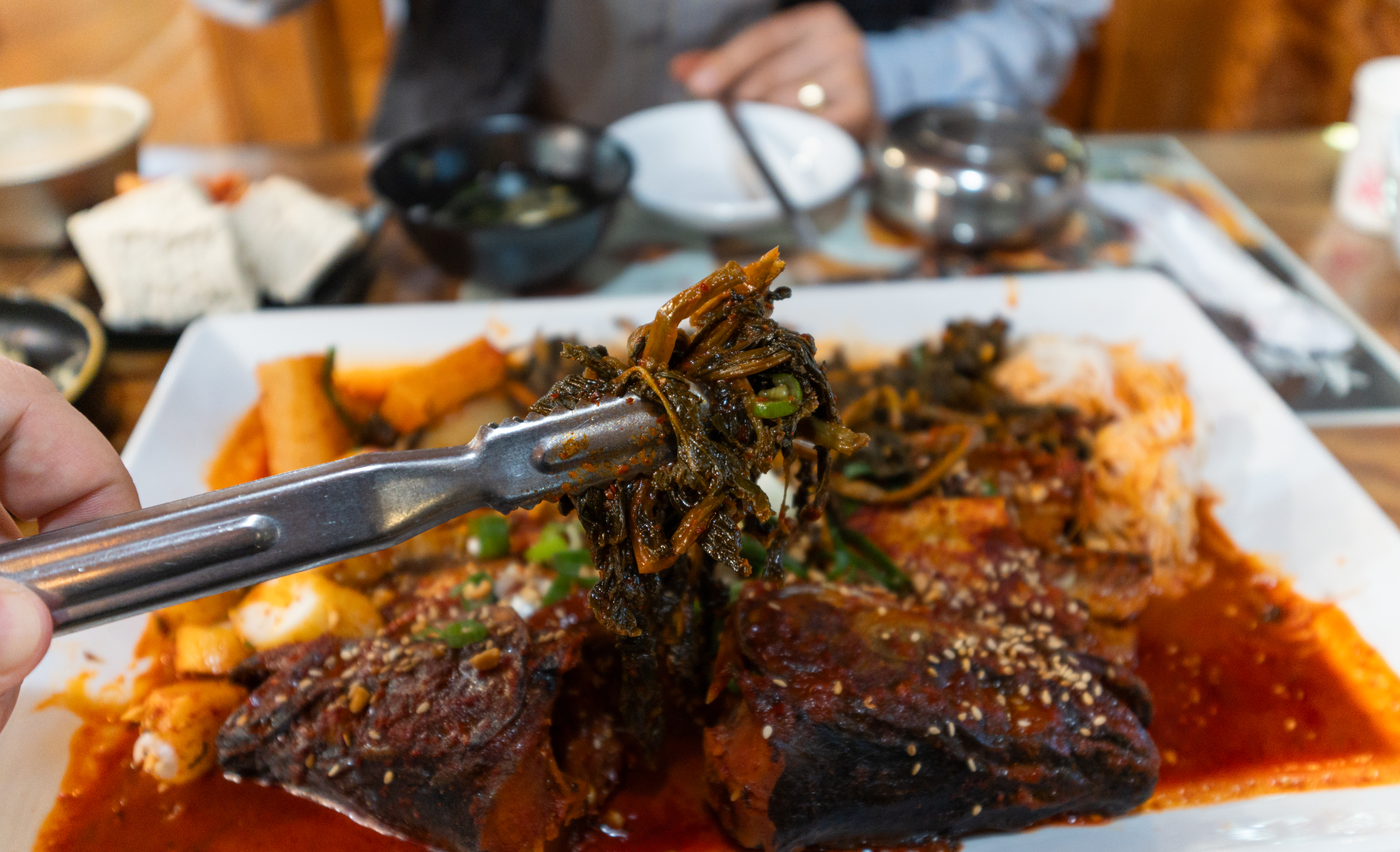 메인 메뉴인 코다리조림에는 떡과 조림무, 시래기가 들어가 고소하면서도 감칠맛이 좋았습니다. 코다리조림 속 명태살은 부드럽고 쫄깃한 식감이 좋았는데요, 양념도 잘 배어있어 계속 손이 가는 메뉴였습니다. 그냥 먹어도 맛있지만, 코다리조림은 김에 싸서 먹으면 더 맛있는 것 같습니다.