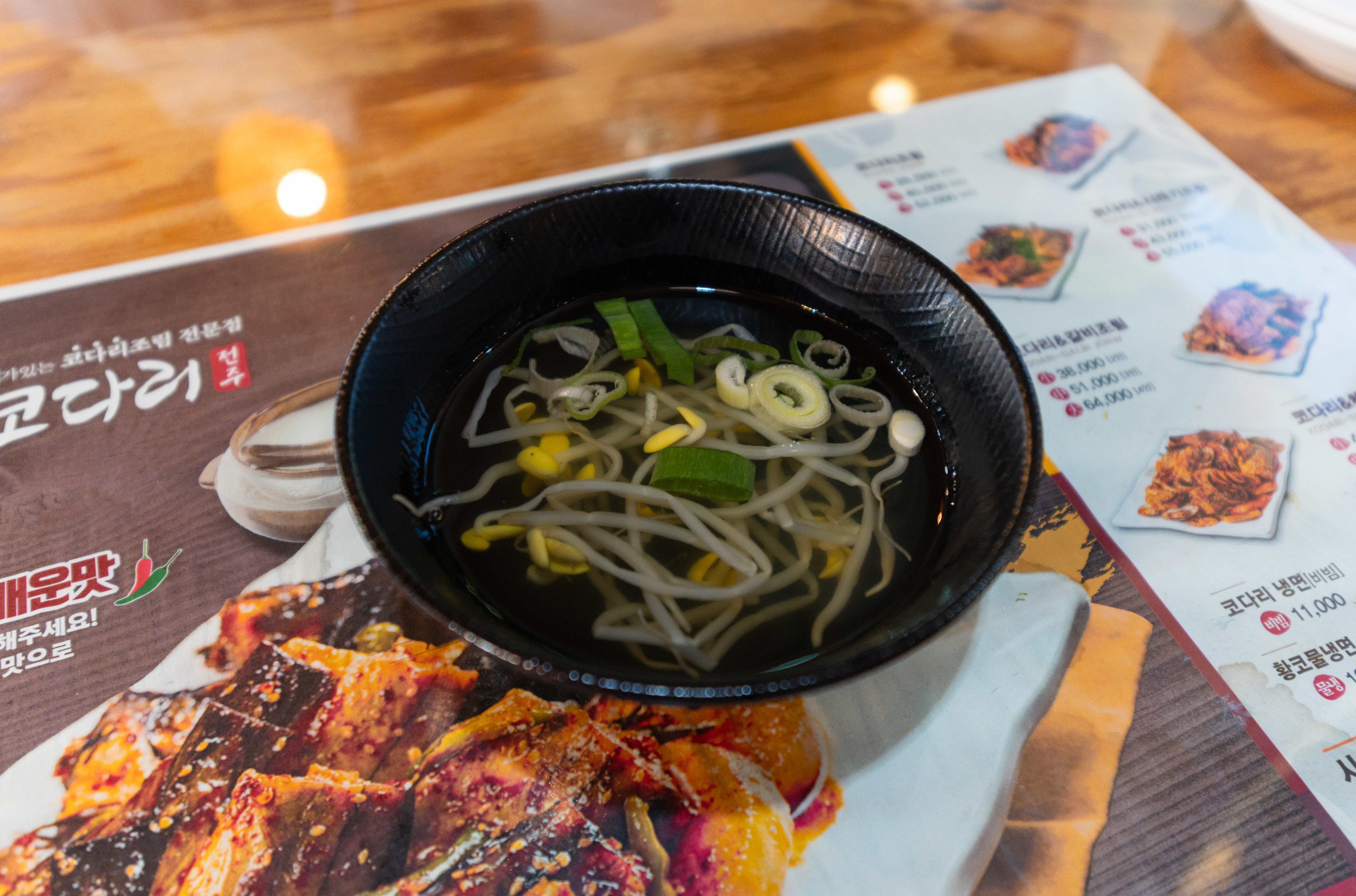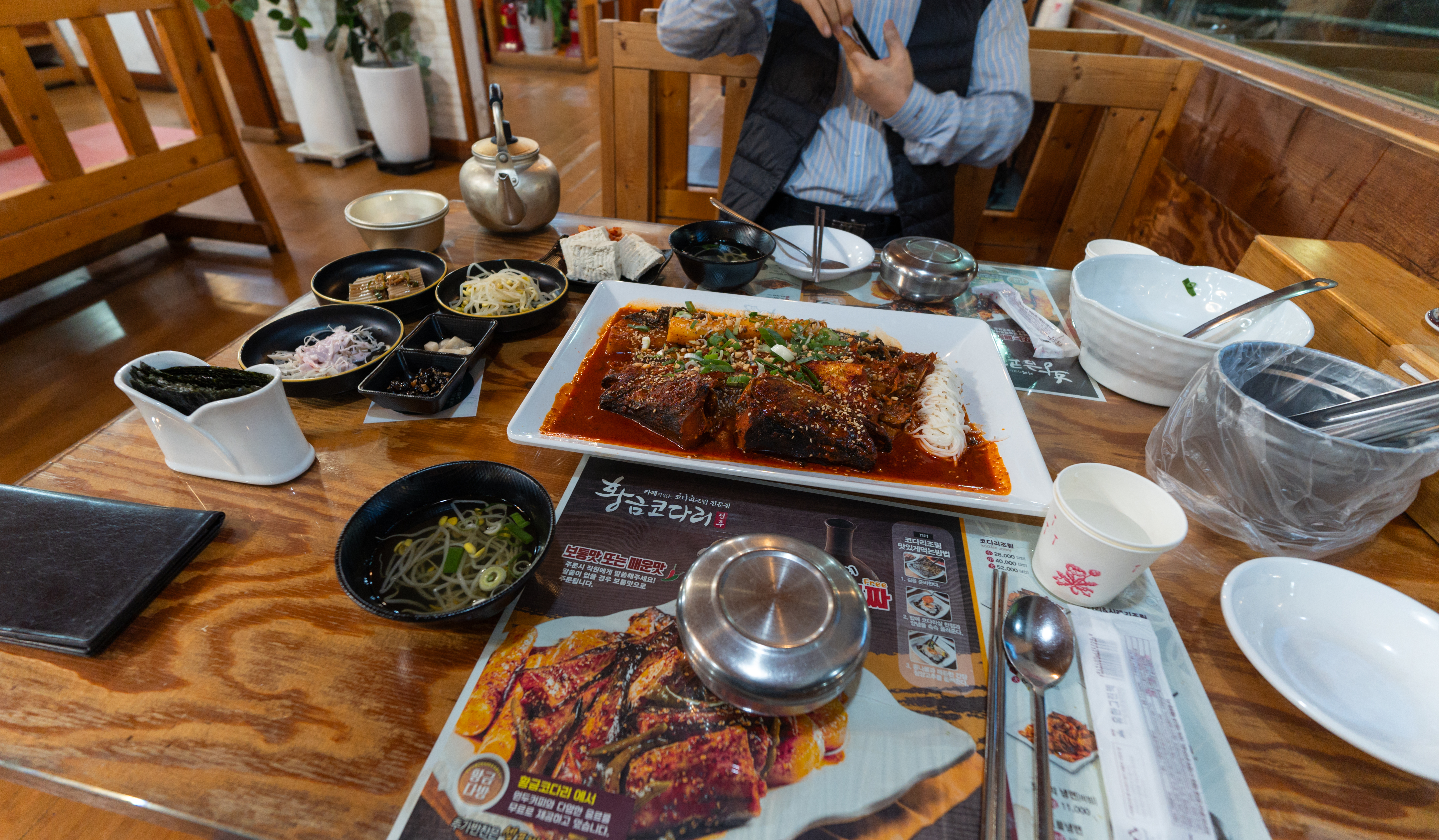 코다리조림의 메뉴는 위와같이 코다리조림에 반찬으로 콩나물, 도토리묵, 콩자반, 샐러드, 김, 두부, 김치 등이 있었습니다. 이곳은 특히 막걸리도 무료로 제공하고 있었는데요,