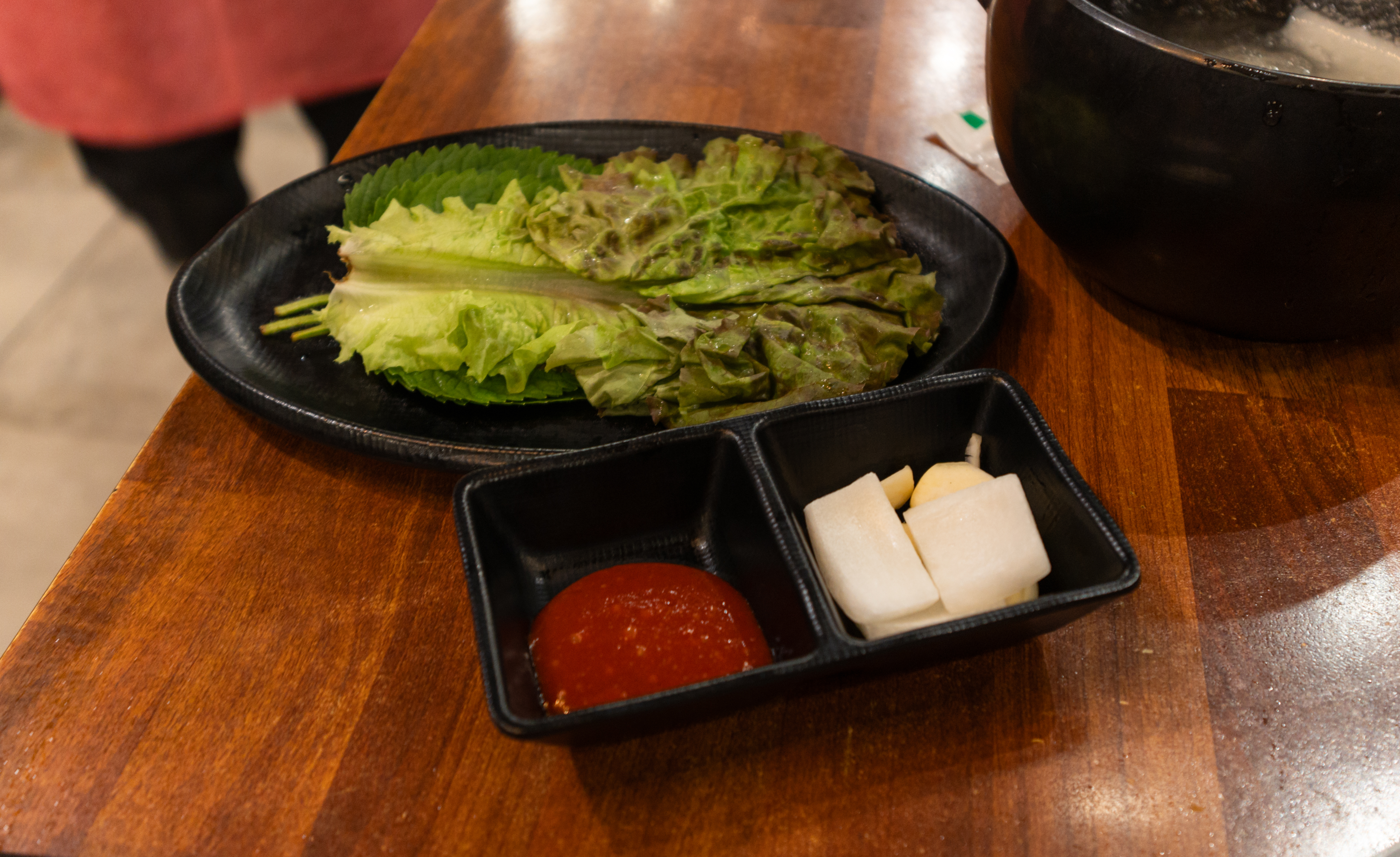 우성닭갈비의 반찬은 상추, 깻잎, 동치미, 마늘, 양파, 초고추장이 있었습니다. 닭갈비를 주문하면 철판에 직접 볶아주시는데요. 고기가 다 익으면 불을 줄이면서 먹어도 된다고 안내를 해주셔서, 그전까지는 닭갈비 볶는 과정에 그냥 기다리면 되었습니다.