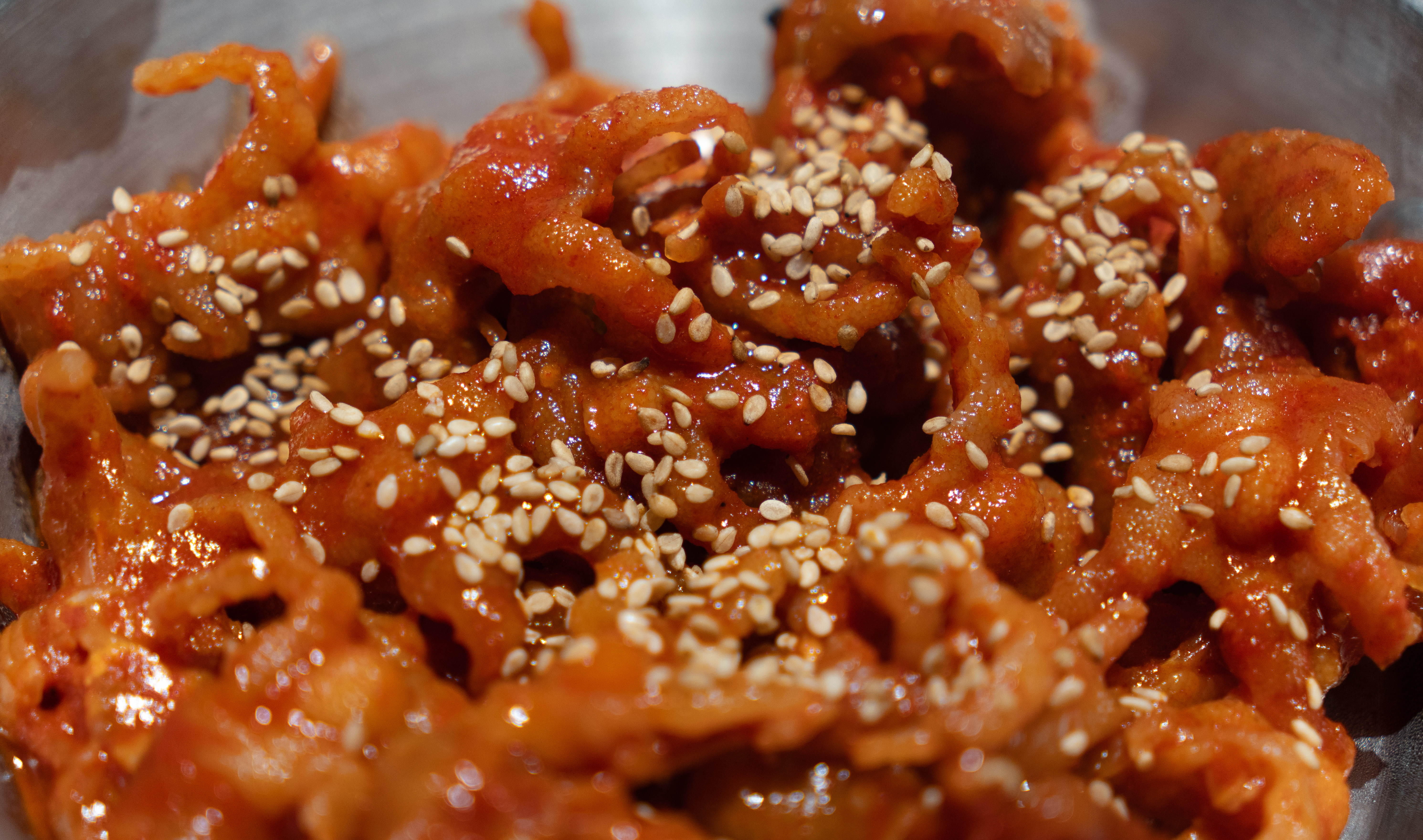바삭한 튀김옷의 치킨에 매콤 달콤한 양념치킨 소스가 시그니쳐죠. 요즘은 홍단치킨이라고 양념치킨 소스의 다양한 조합을 내어놓고 있었는데, 저는 가장 기본이 되는 양념치킨이 가장 맛있더라고요.