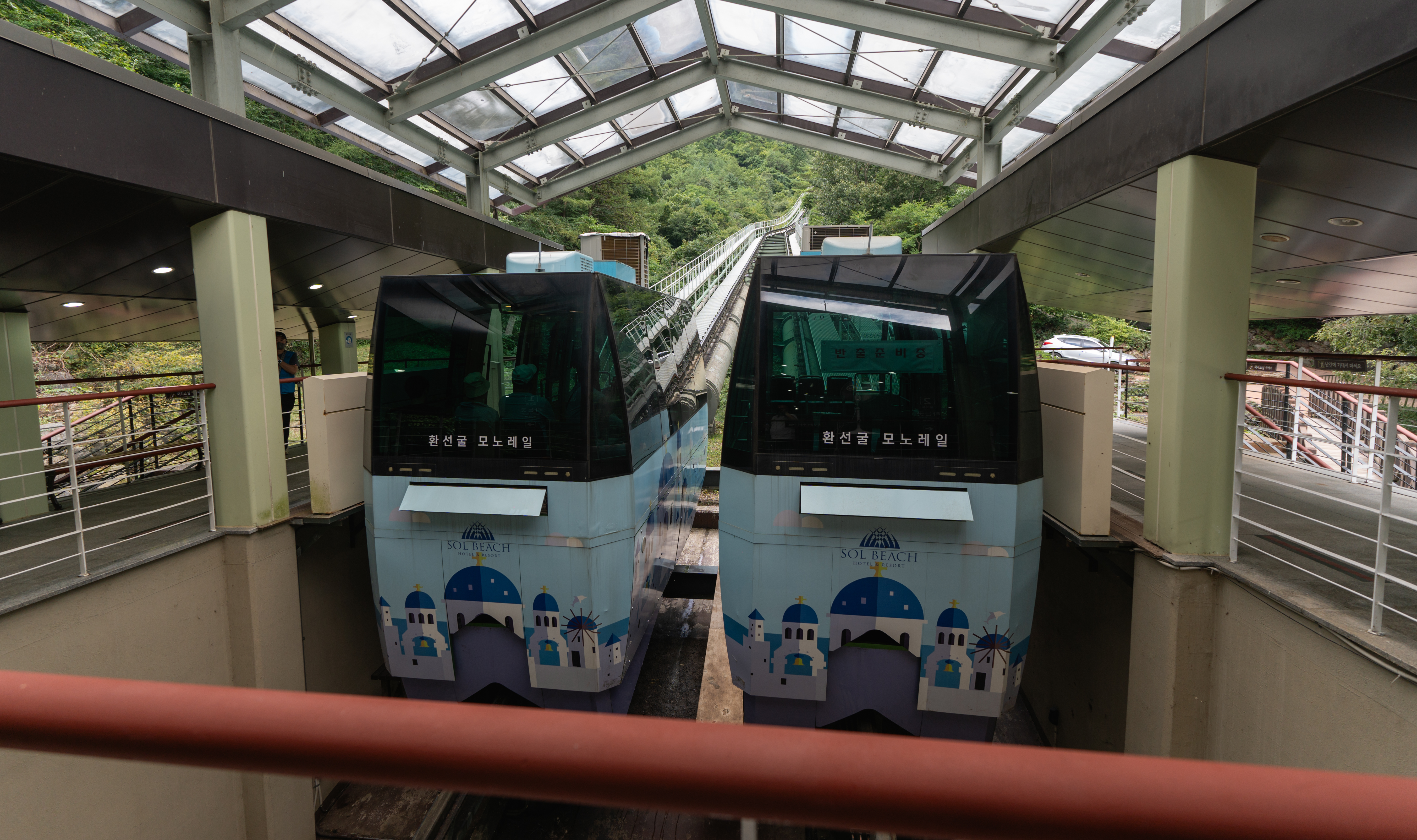 환선굴까지 가는길은 걸어서 굴 입구까지 올라가도 되었지만, 저질 체력인 저는 도무지 걸어서 굴 입구까지 갈 엄두가 안 나더라고요. 바로, 모노레일을 신청했고, 모노레일을 타고 환선굴 입구까지 갔습니다. 환선굴 가는 경사가 가파르다 보니, 모노레일 타길 잘했다 싶더라고요.