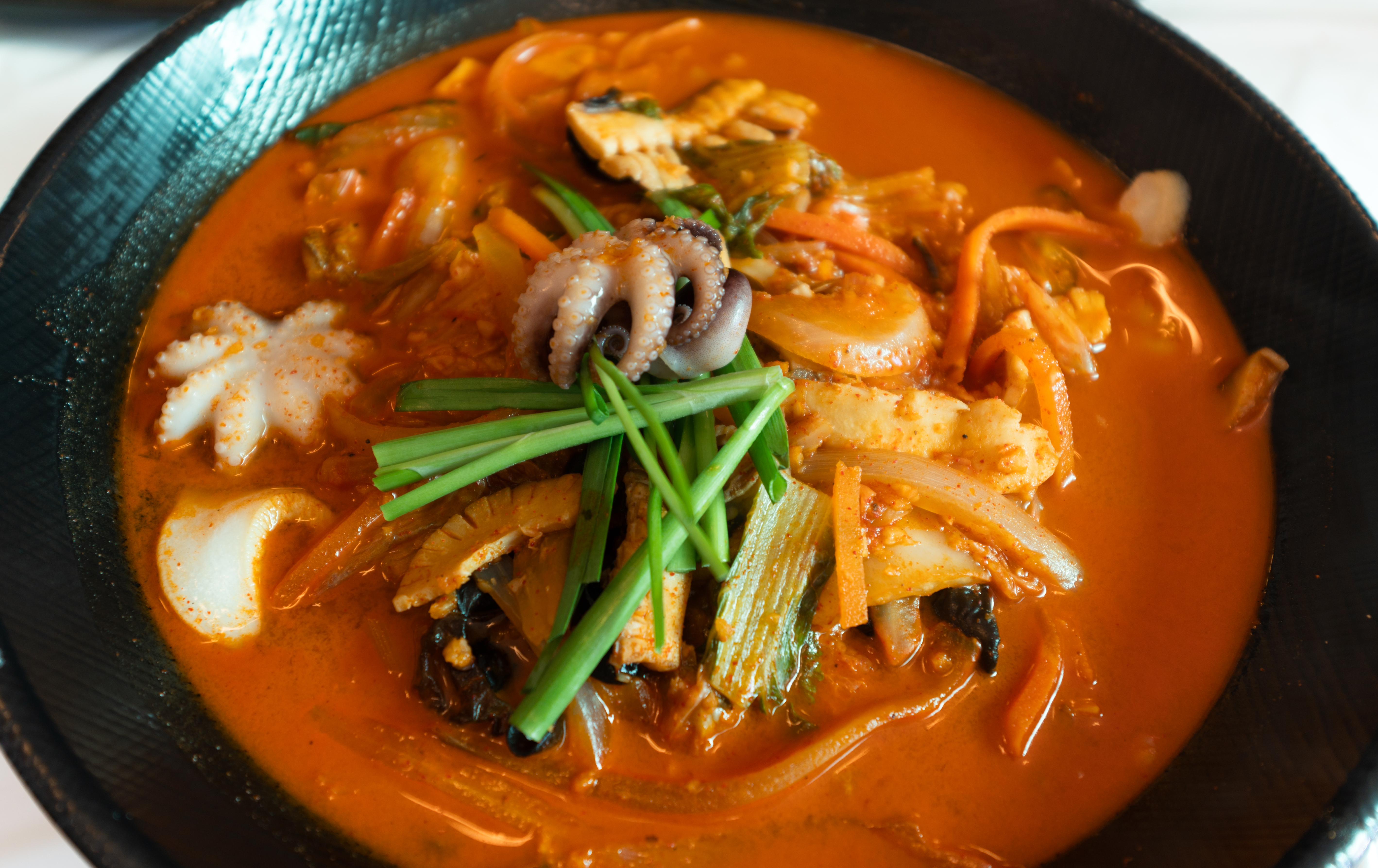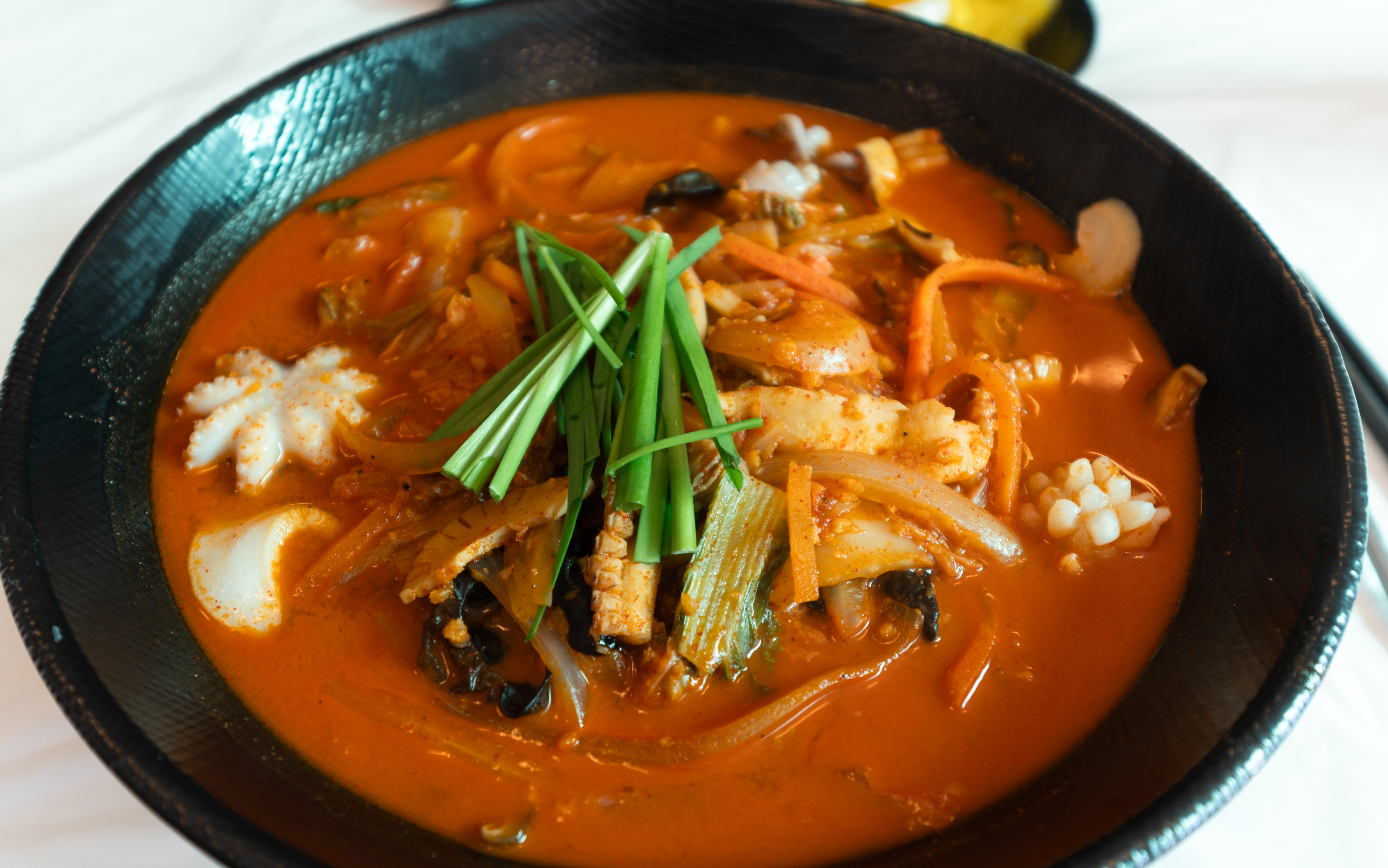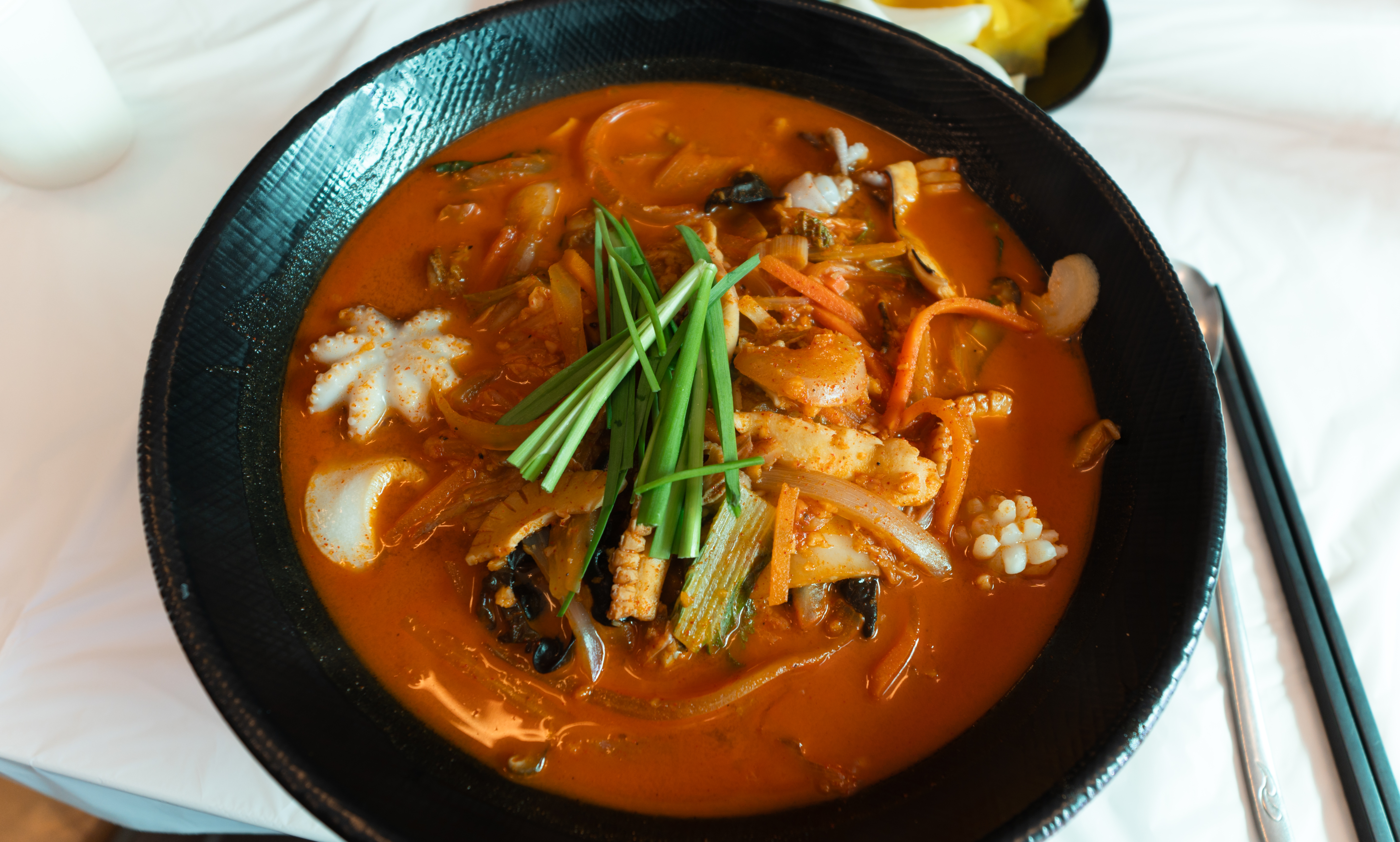 태안 짬뽕마시떼의 삼선짬뽕의 모습은 위와 같습니다. 앞에서 설명드린 것처럼 주꾸미와 새우 등 해산물이 듬뿍 들어있는 짬뽕이었는데요. 면도 탱글하고 국물이 특히 맛있더라고요. 저는 솔직히 짬뽕 국물은 짬뽕마시떼가 참 맛있더라고요.